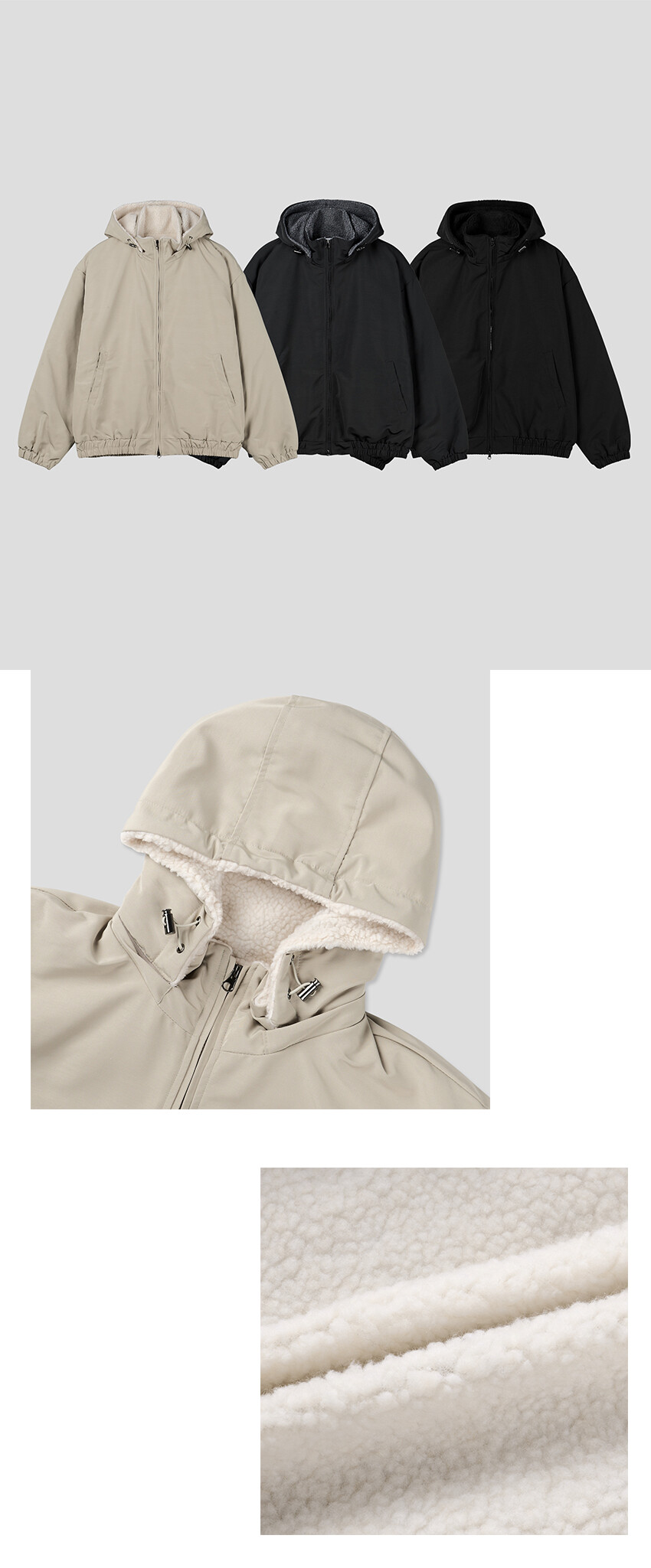 또한 탈부착 가능한 후드를 더해 필요에 따라 캐주얼하게, 혹은 깔끔하게 다양한 분위기로 스타일링할 수 있는 실용적인 아이템입니다.