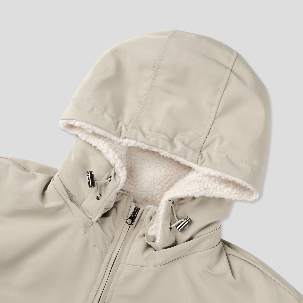 몸판에는 포근한 양털 안감을 사용하고, 소매에는 퀼팅을 더해 전체적인 보온성을 높인 자켓입니다.