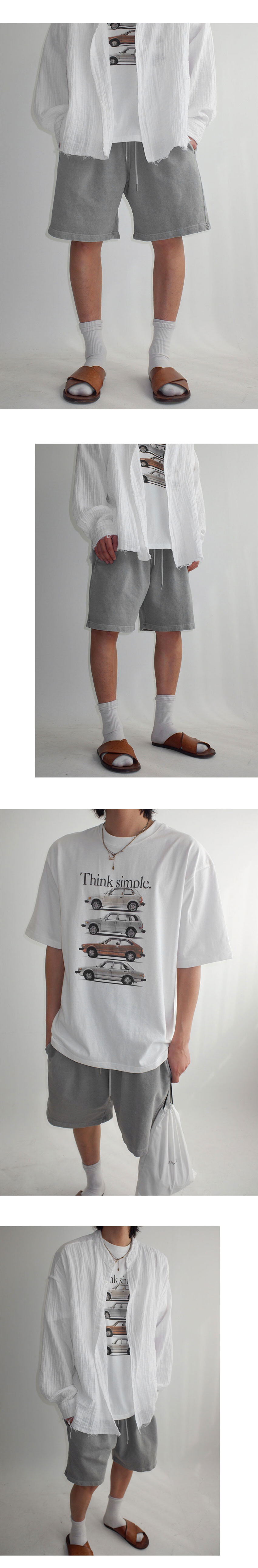 전체적으로 여유있고 스탠다드한 루즈핏으로 기장감은 4-5부