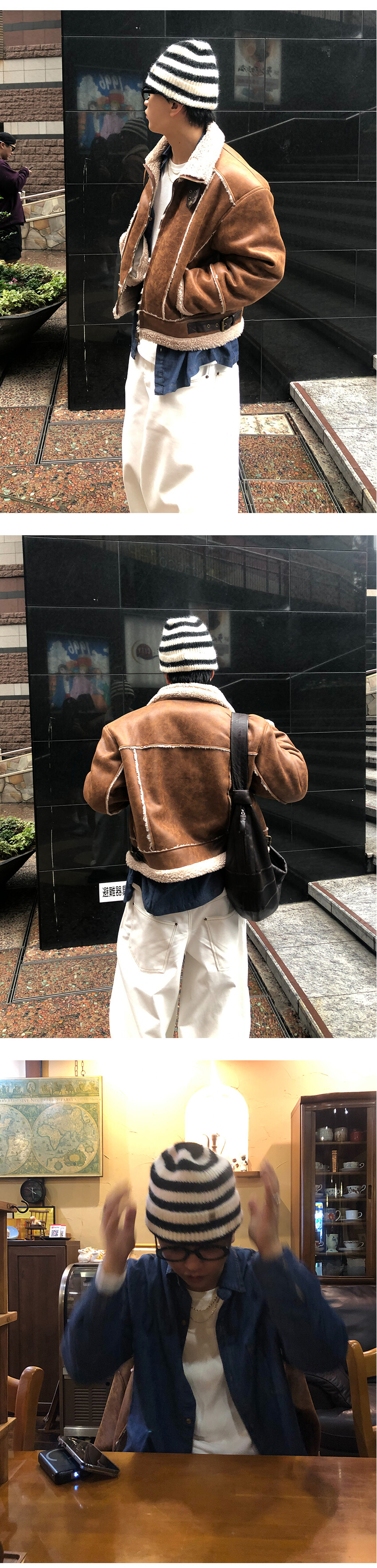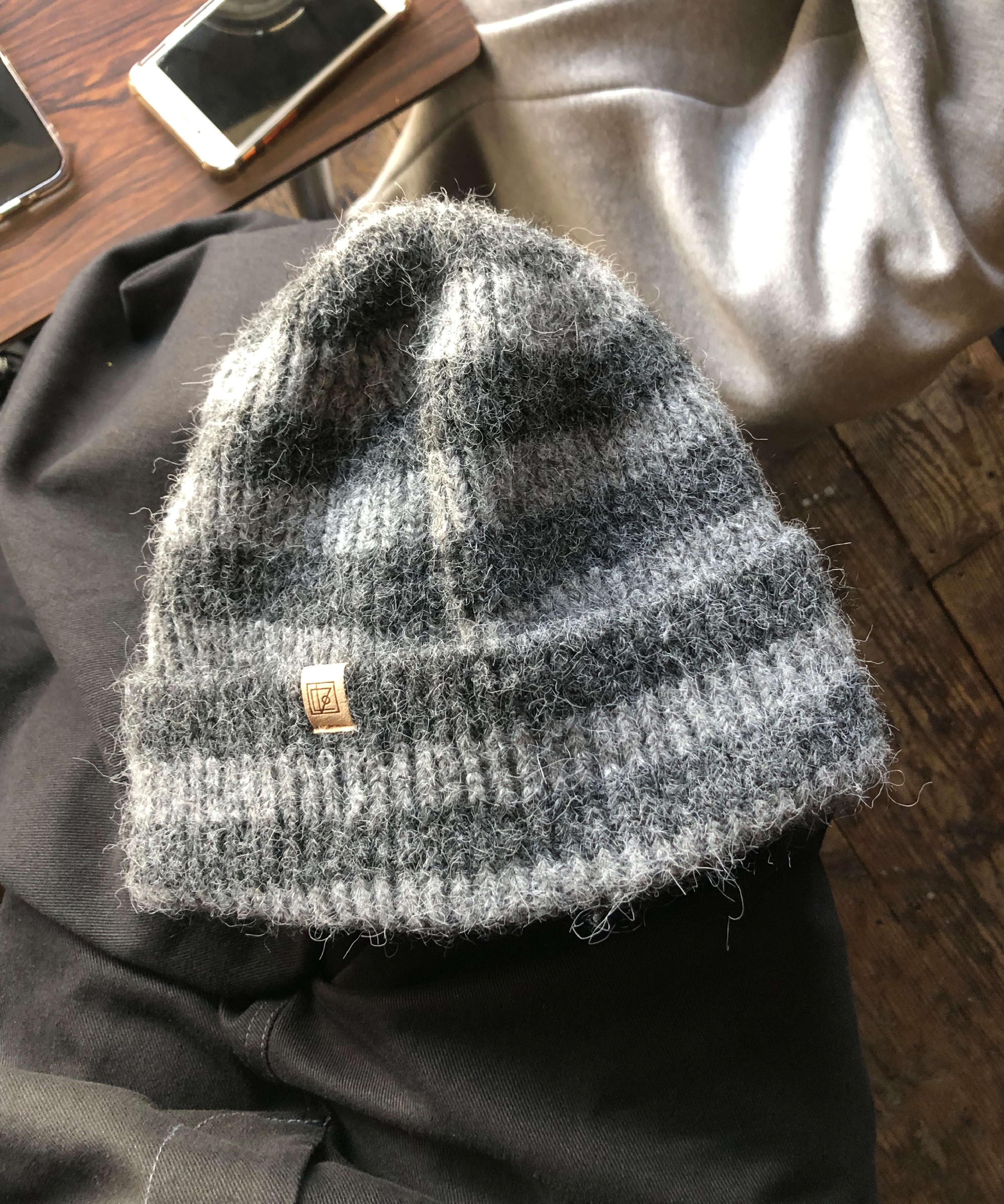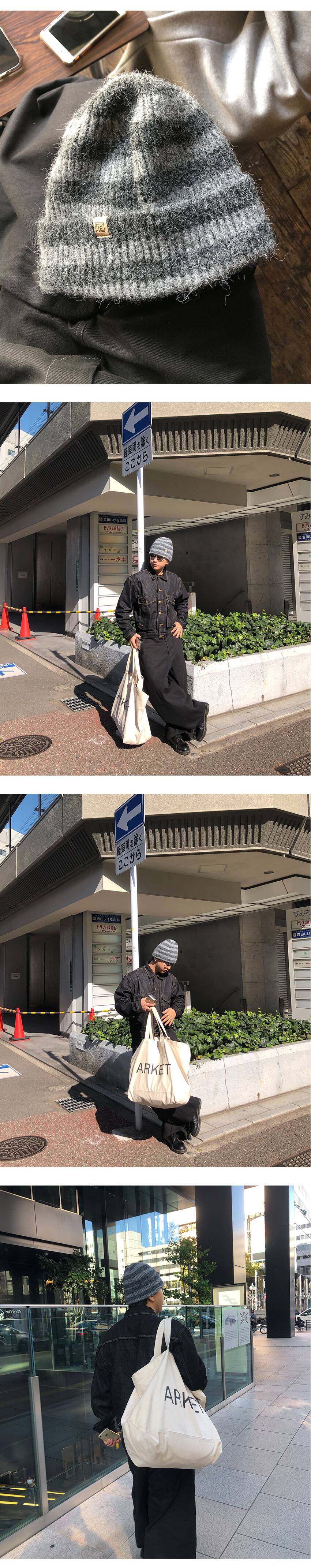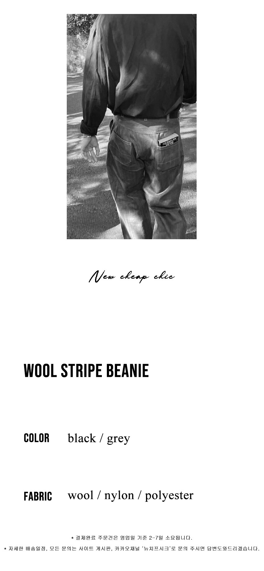 겨울 시즌 포인트 아이템으로 활용하기 좋은 울 스트라이프 비니입니다.