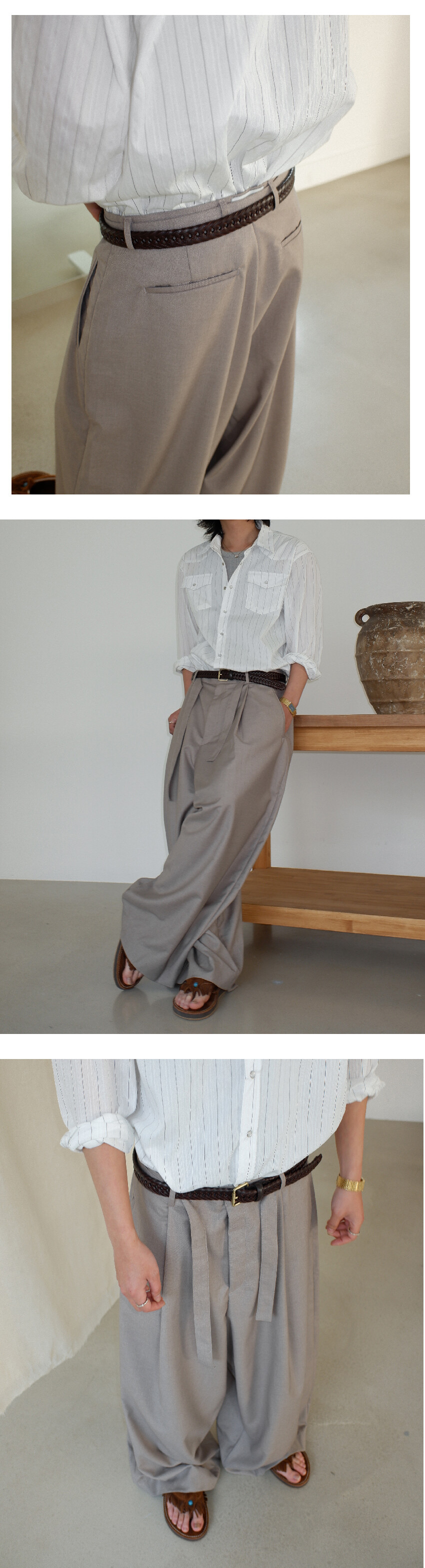슬랙스는 전면 원턱 디자인으로 와이드한 실루엣이며