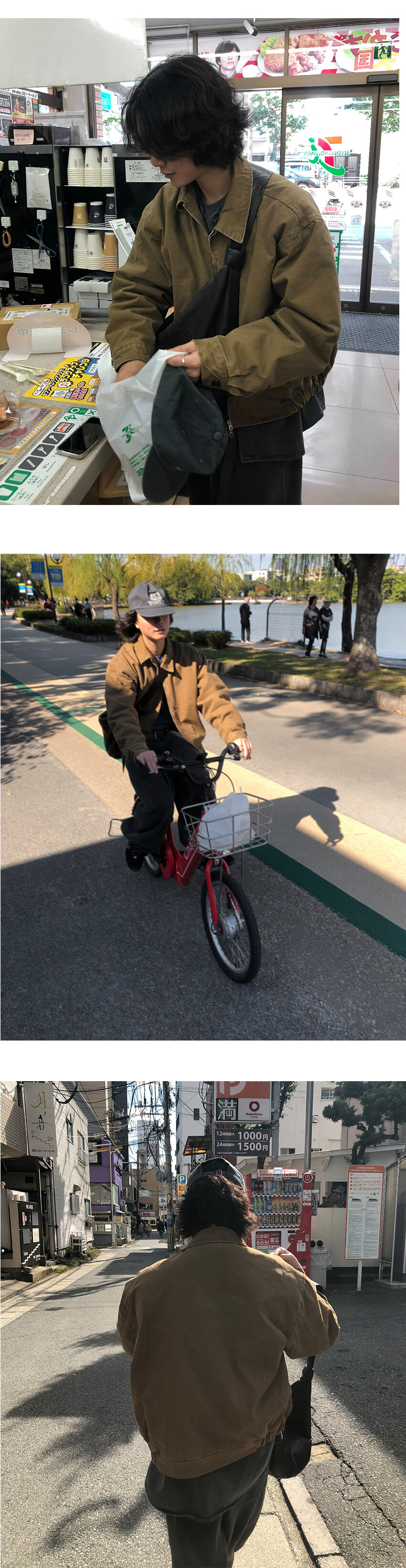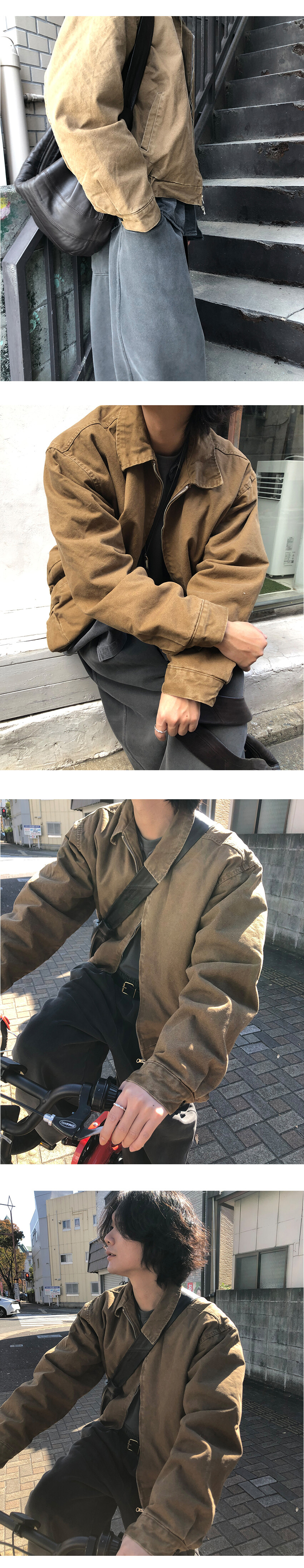 클래식한 워크웨어 실루엣을 기반으로 한 박시한 세미 오버핏이며 셔츠, 니트, 후디 등 다양한 스타일과 매칭 가능한 미니멀 디자인의 자켓입니다.