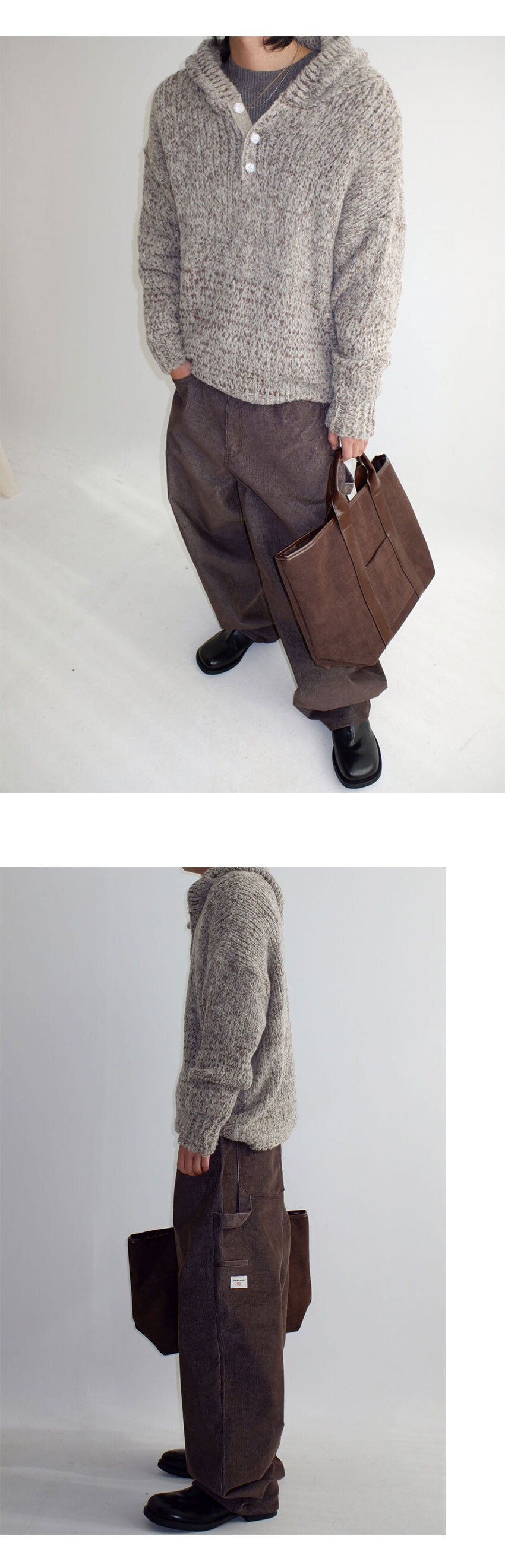 alpaca button hood knit