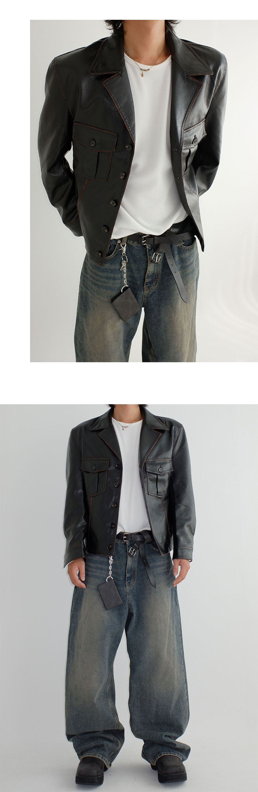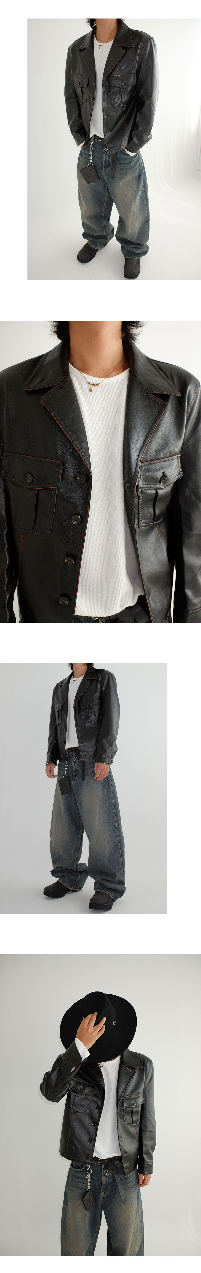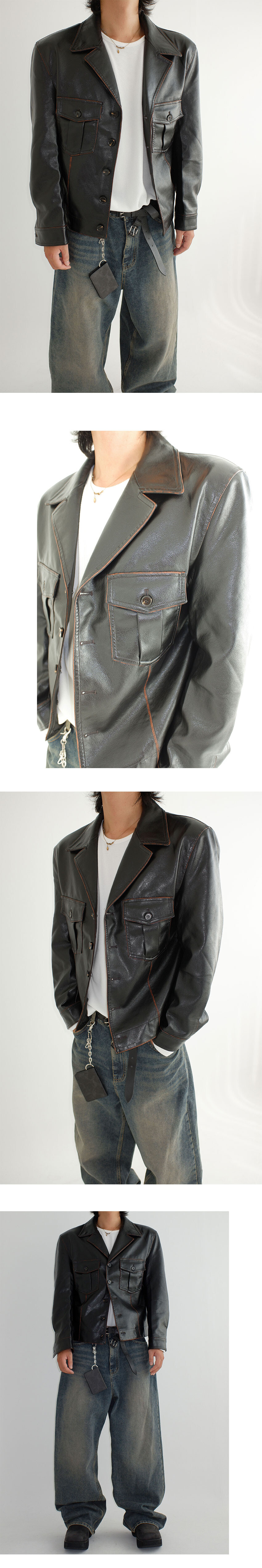 피그먼트 워싱과 테일러드 자켓 실루엣의 가죽자켓