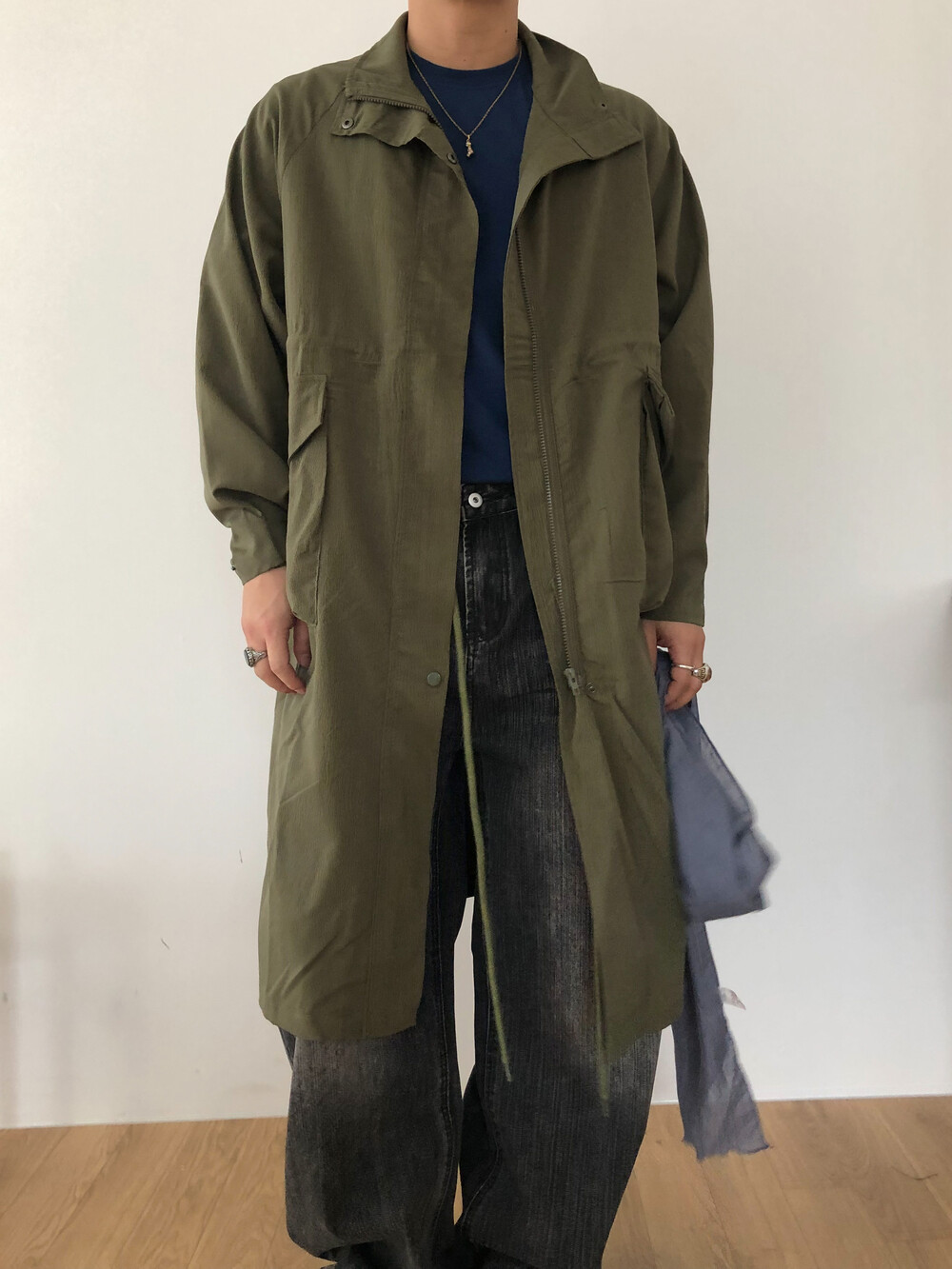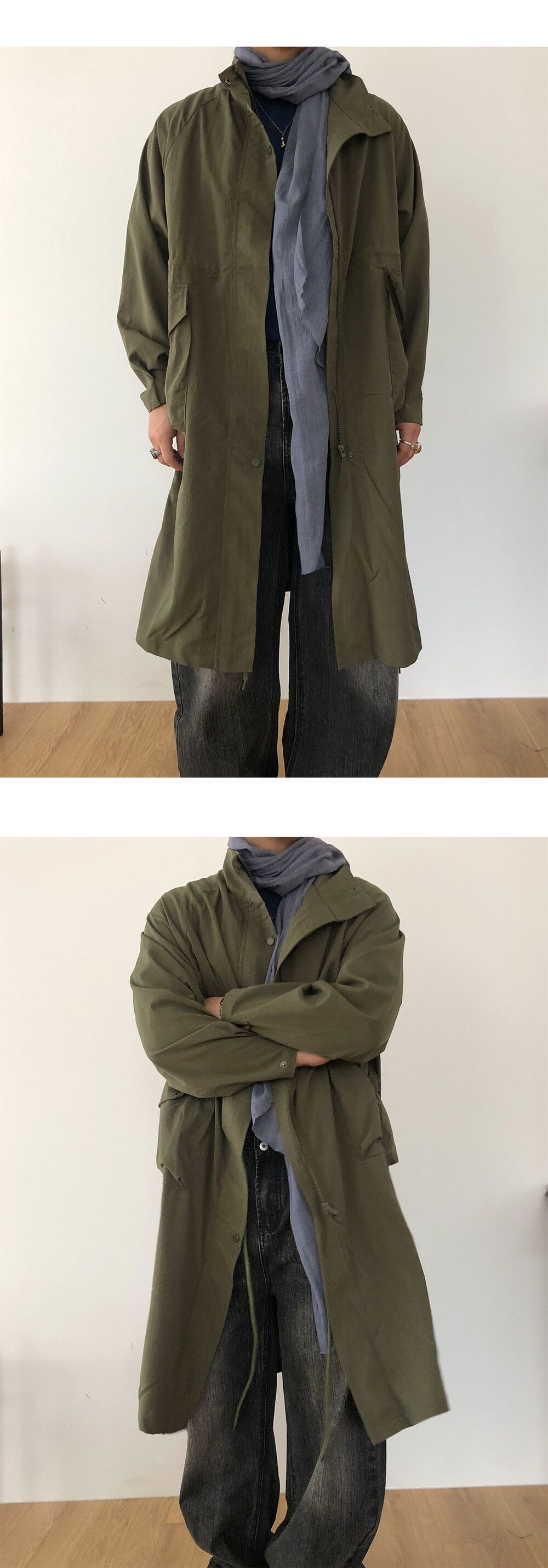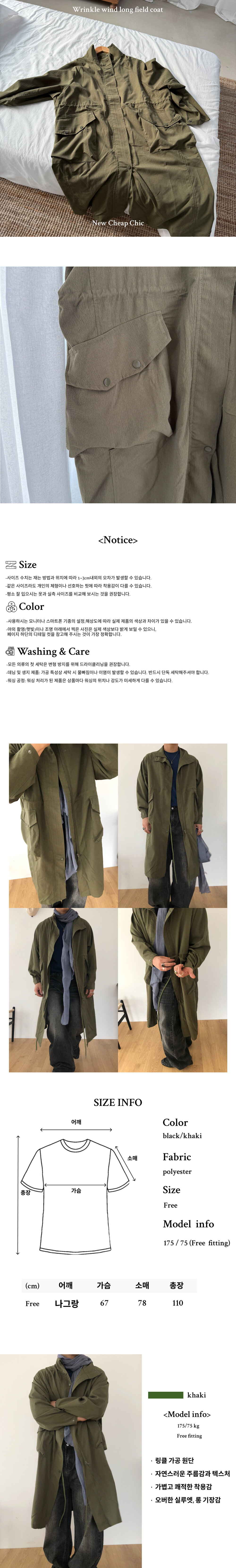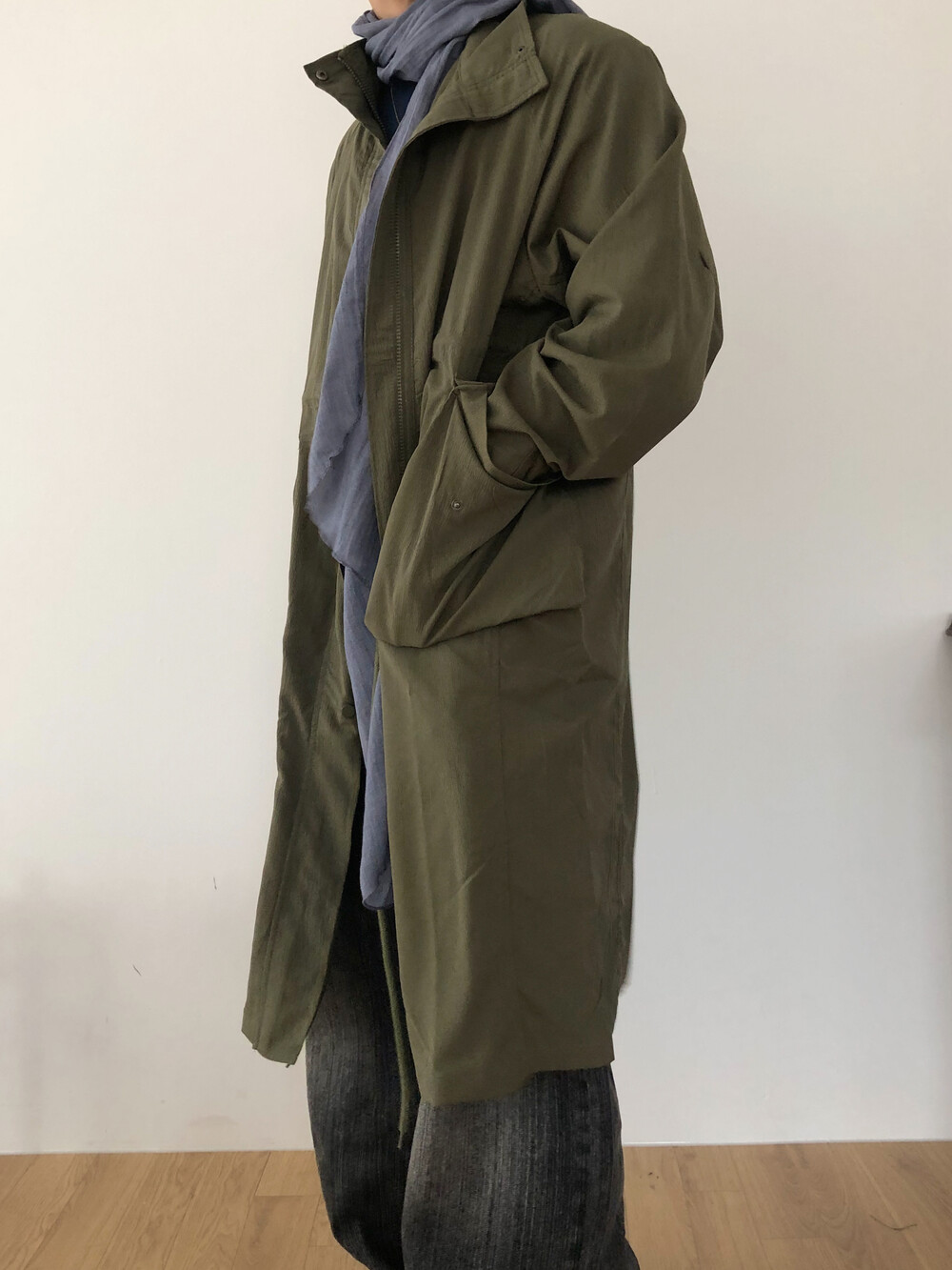 Wrinkle wind long field coat