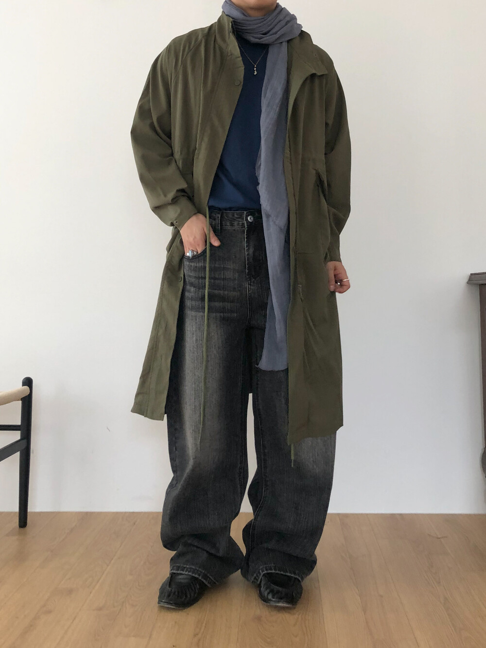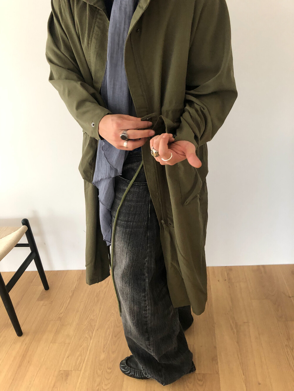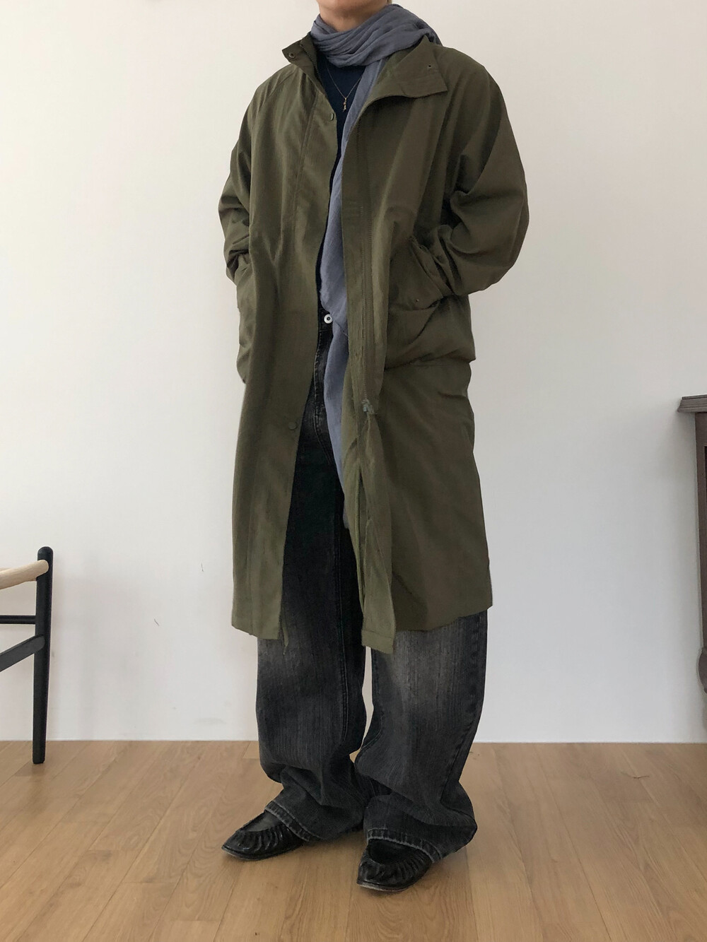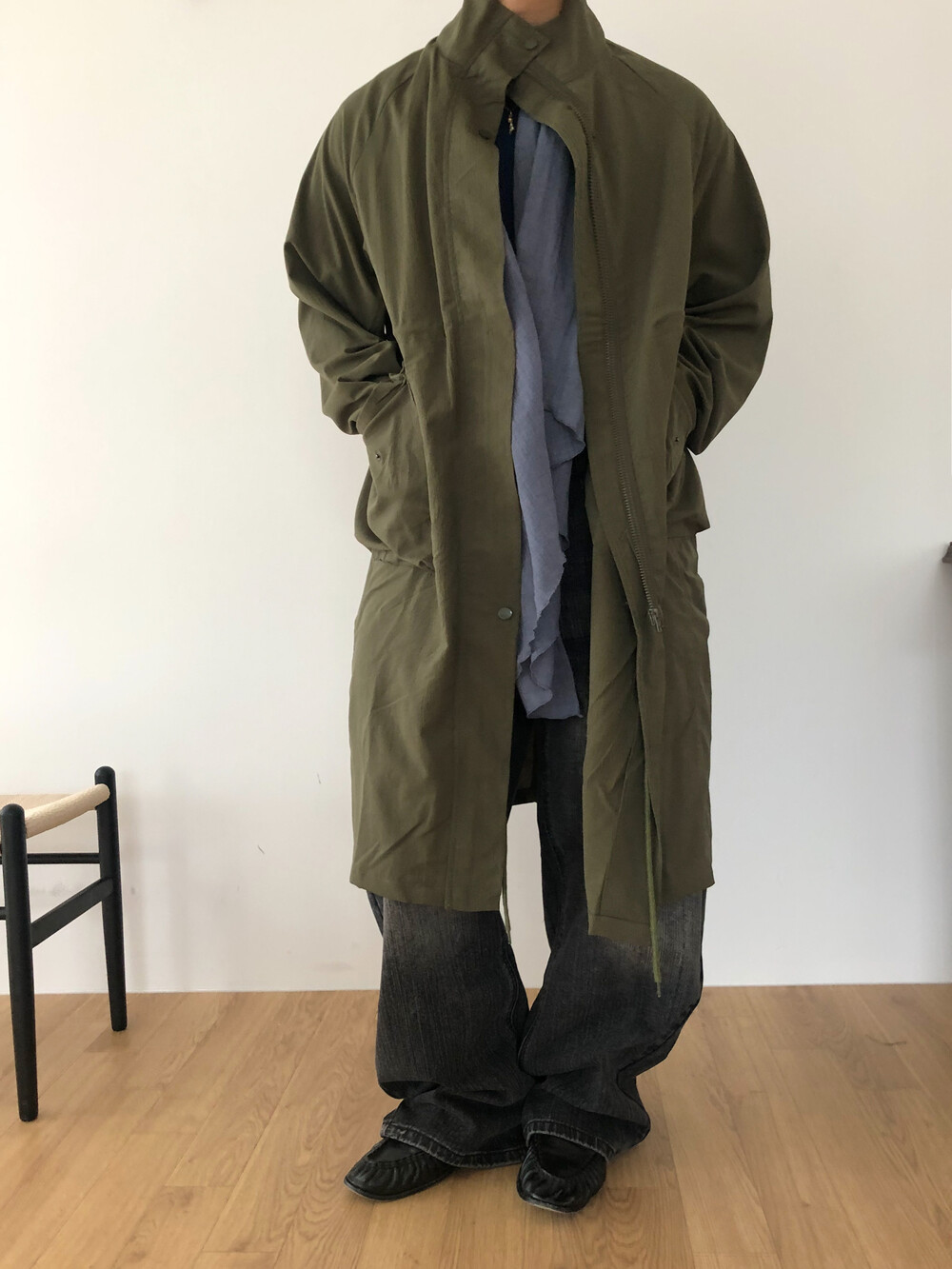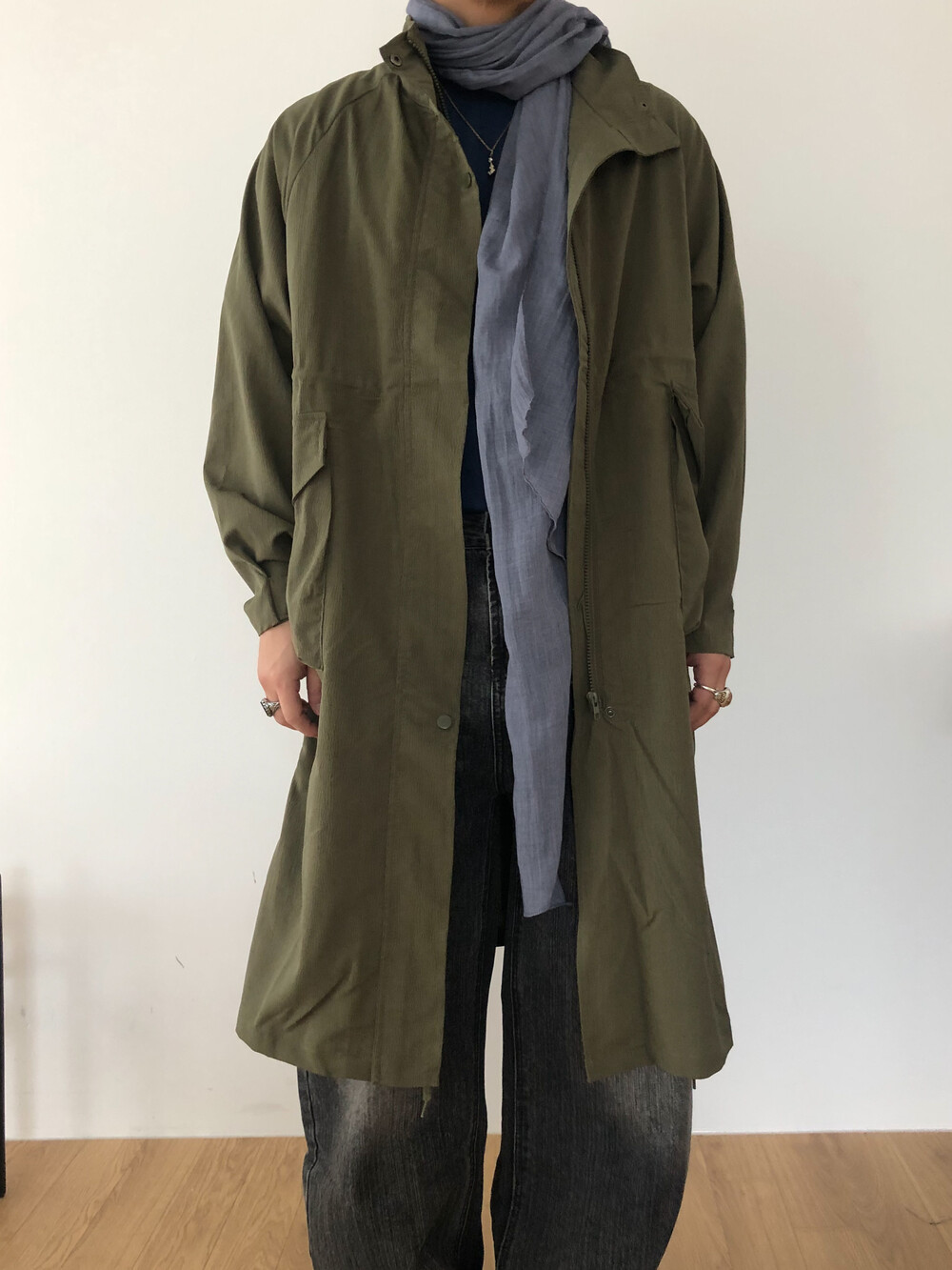 Wrinkle wind long field coat