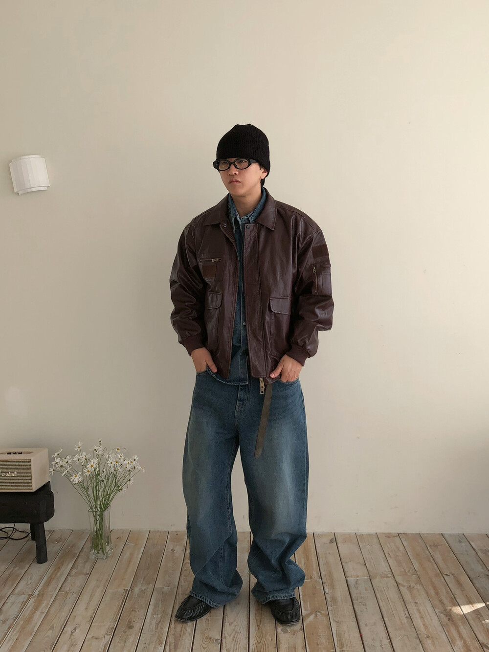 빈티지한 무드를 기반으로 제작된 레더 봄버 자켓입니다.