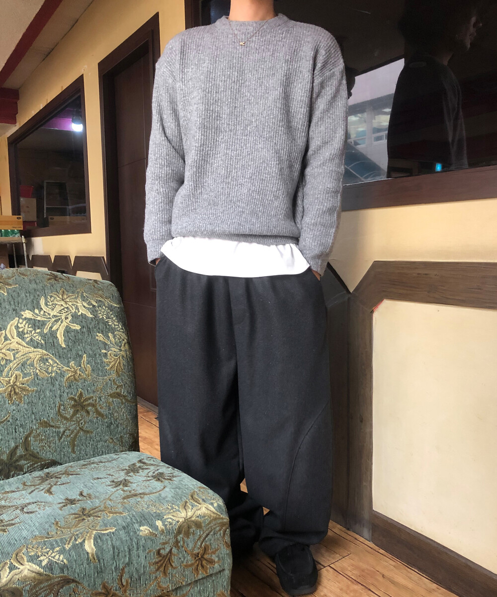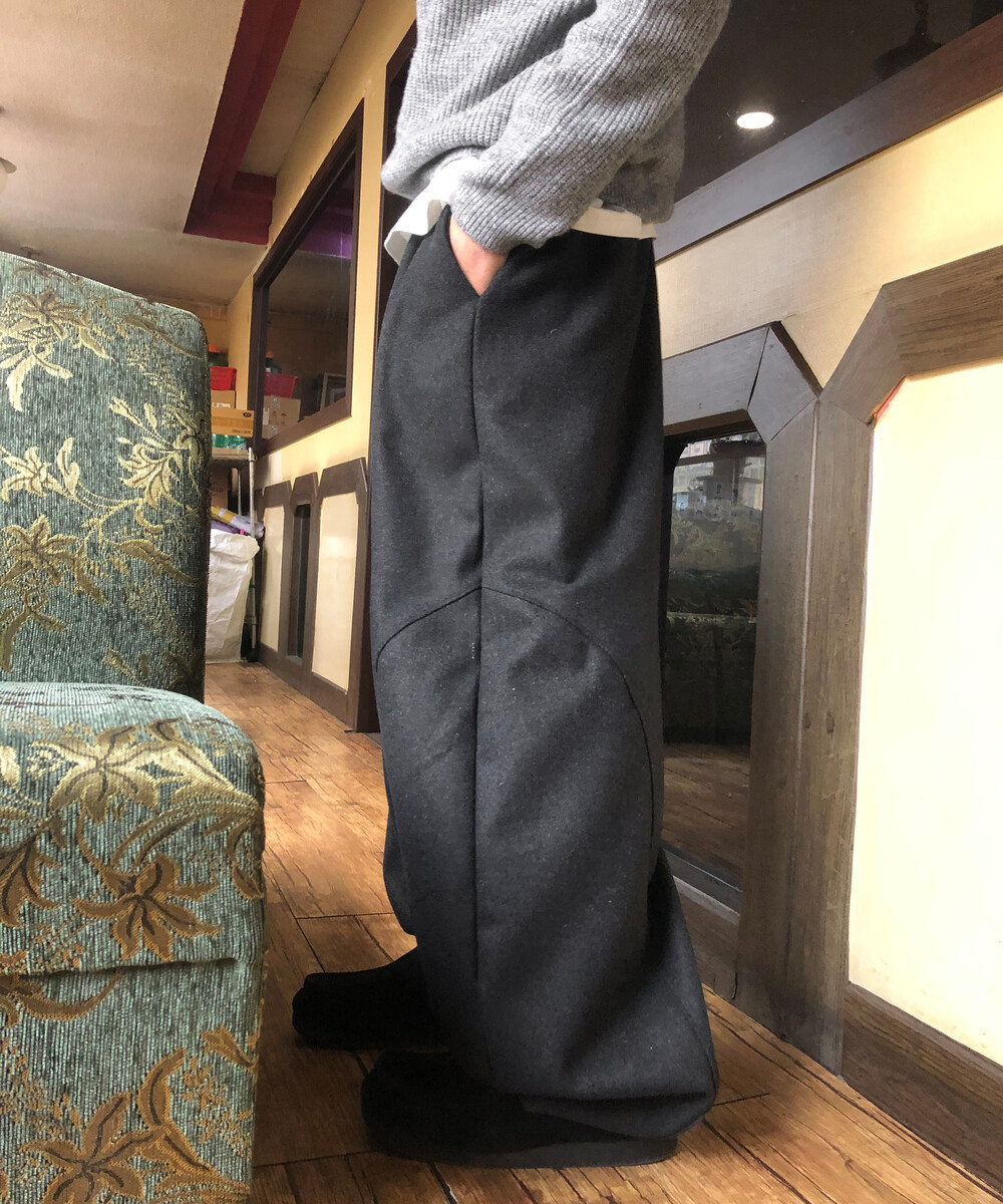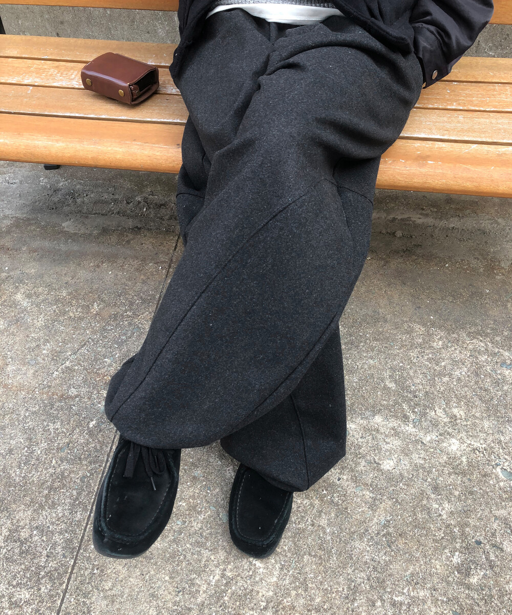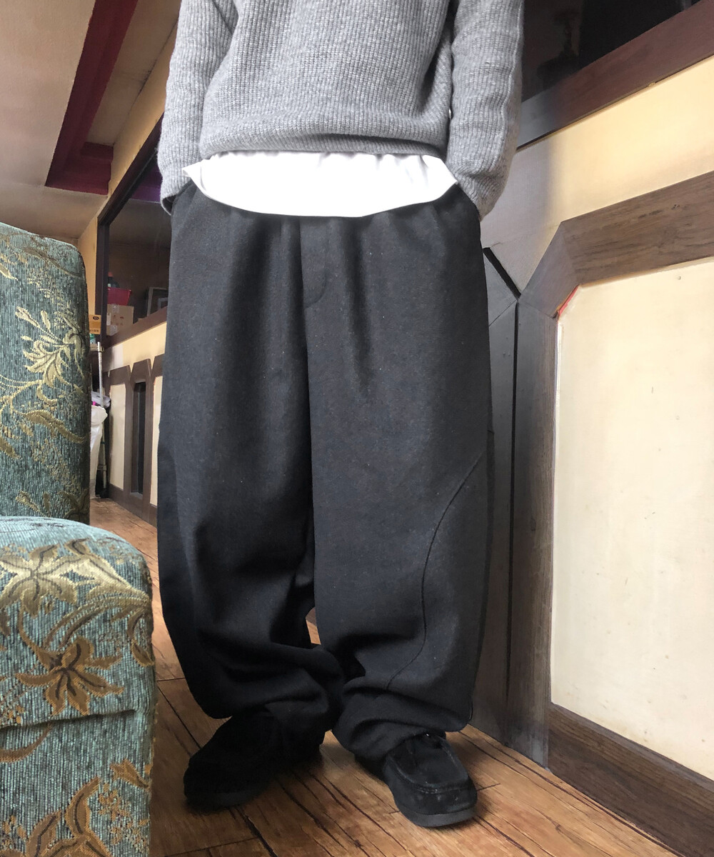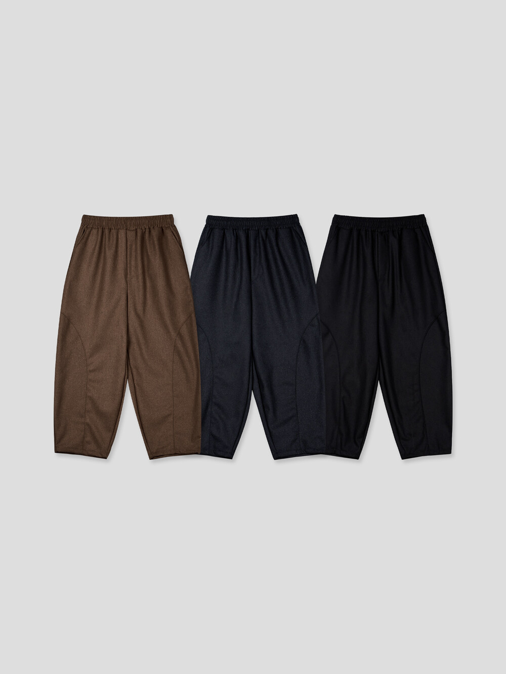 트렌디한 커브드 라인이 돋보이는 울 벌룬 팬츠입니다.