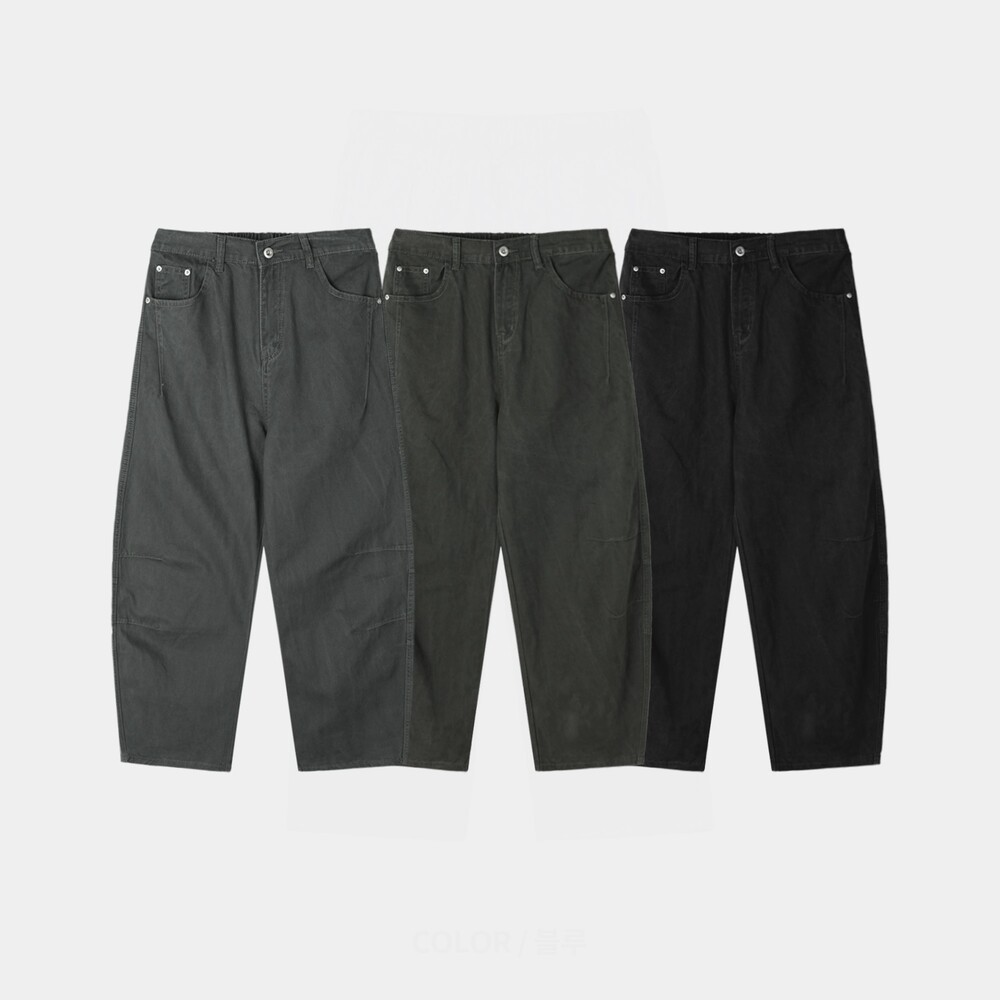 자연스럽게 떨어지는 곡선 실루엣이 매력적인 커브드 핏 피그먼트 팬츠입니다.