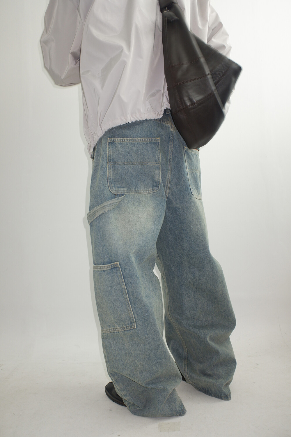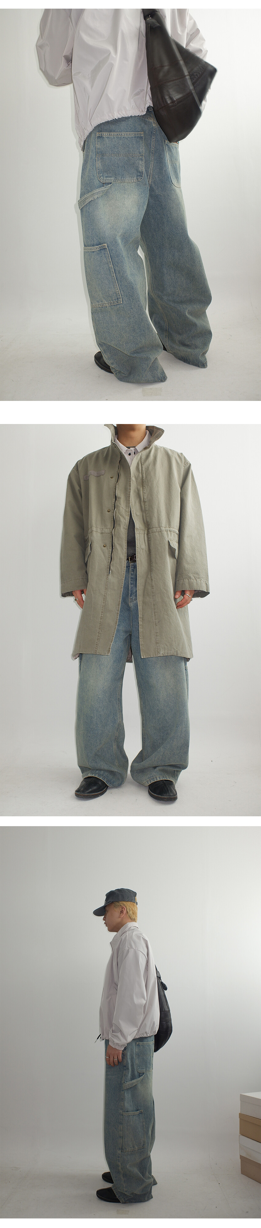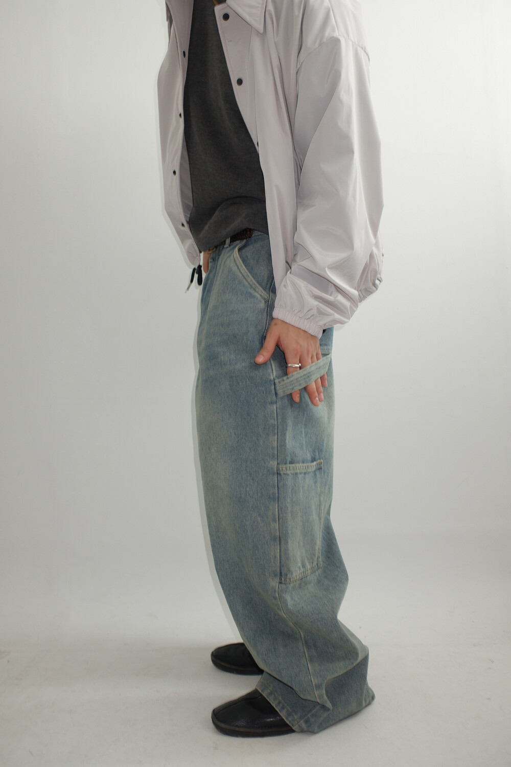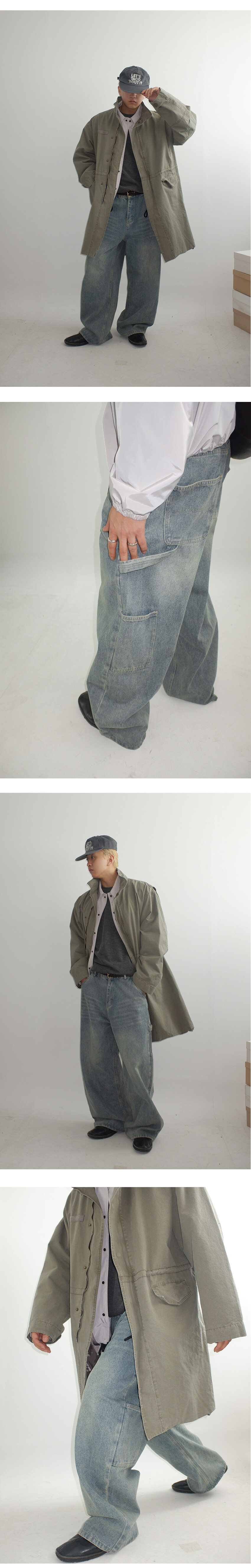 망치 걸이와 멀티 포켓 디테일을 더해 실용적인 카펜터 디자인을 완성했으며,탄탄한 데님 원단을 사용해 착용 시 안정적인 실루엣을 유지합니다.
