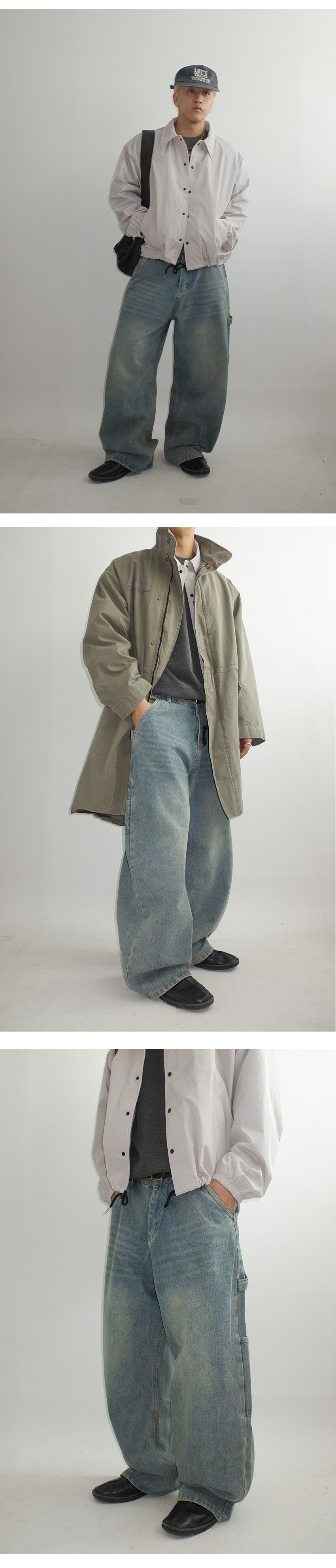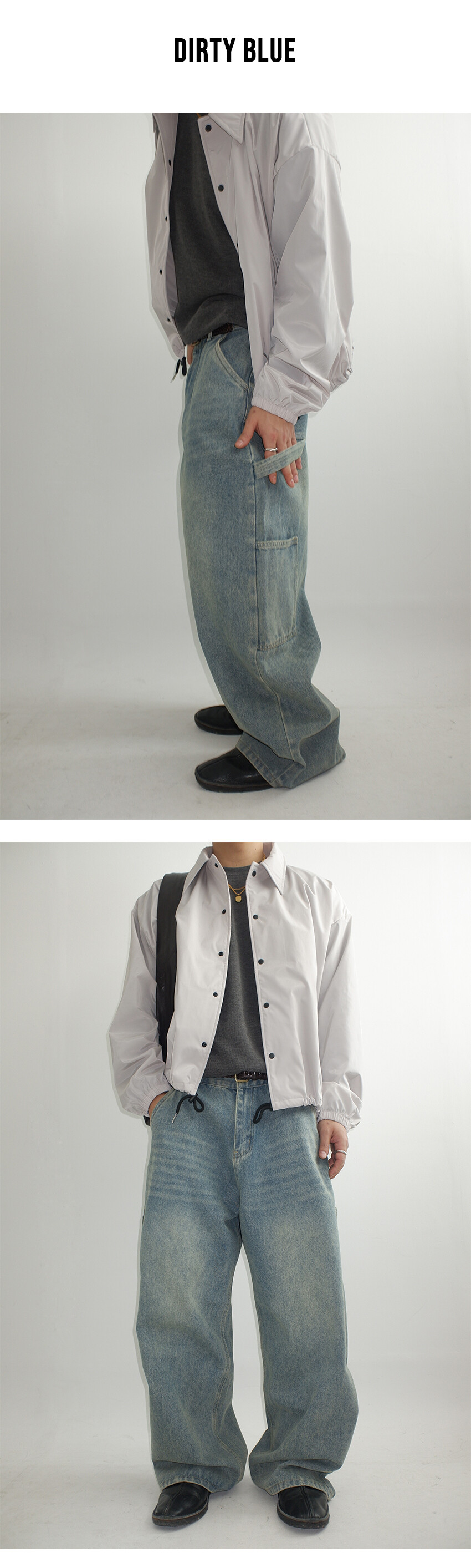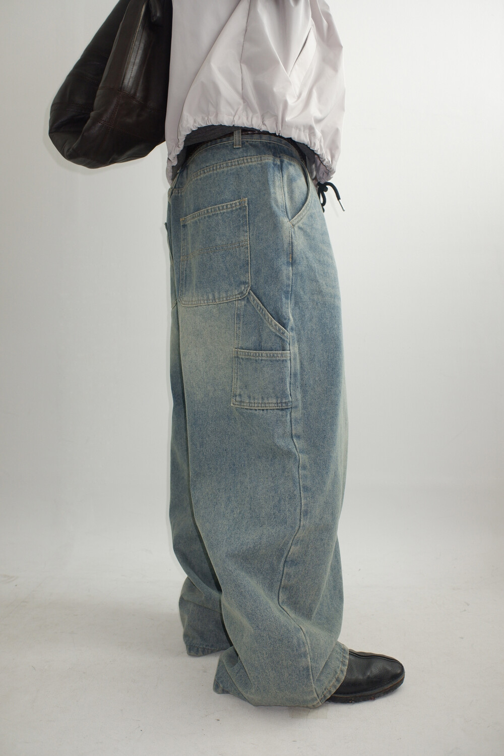 망치 걸이와 멀티 포켓 디테일을 더해 실용적인 카펜터 디자인을 완성했으며,탄탄한 데님 원단을 사용해 착용 시 안정적인 실루엣을 유지합니다.