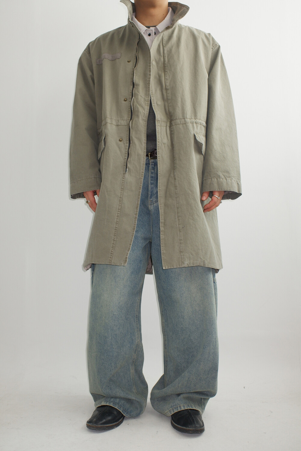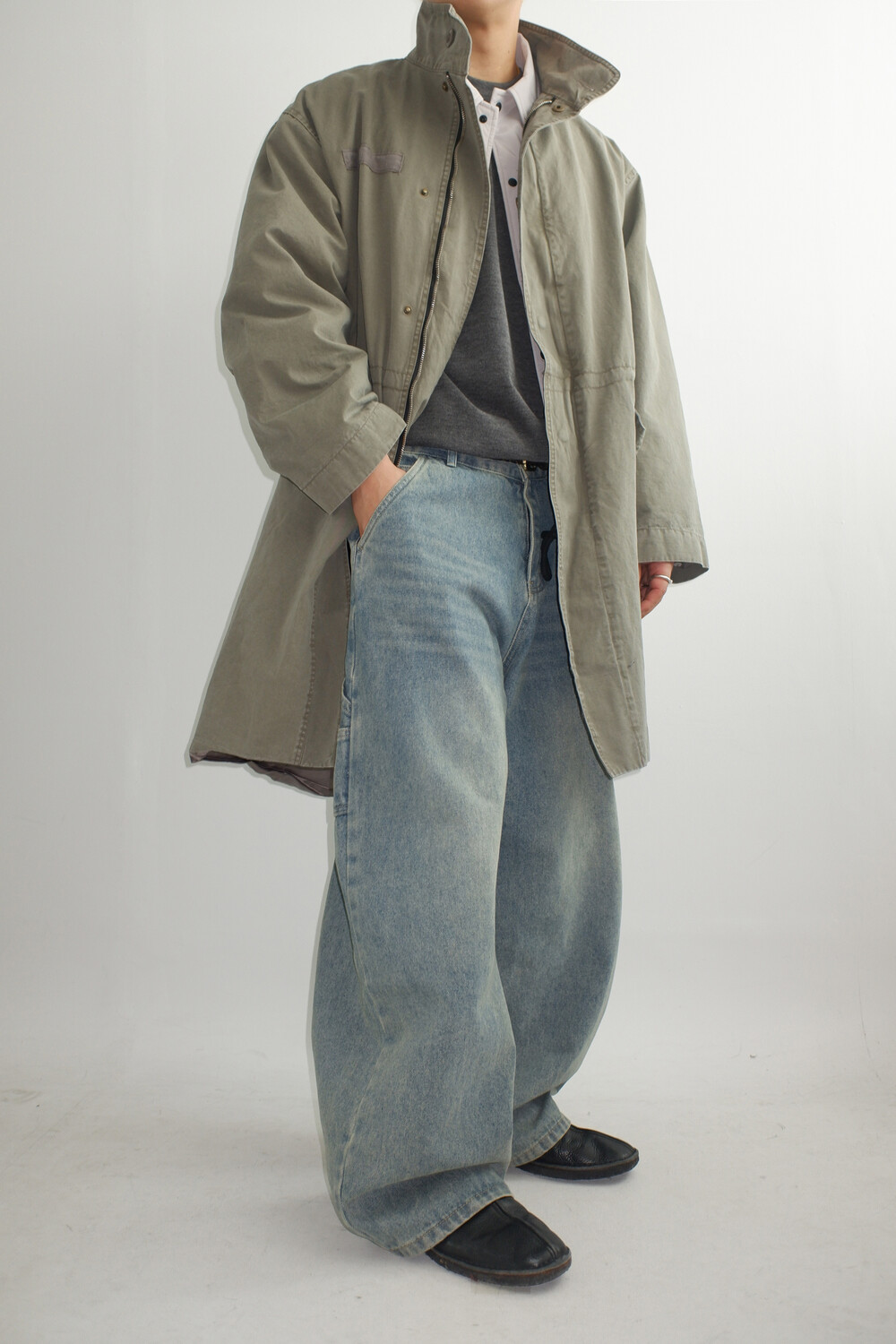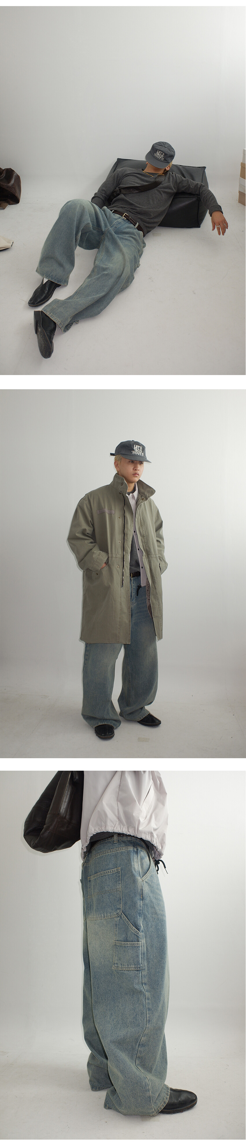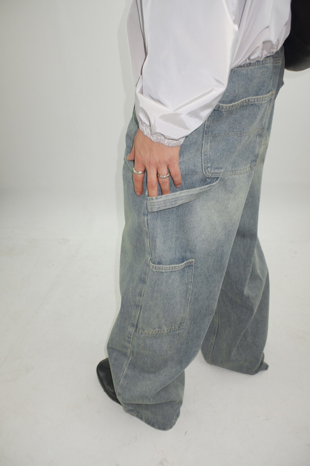 망치 걸이와 멀티 포켓 디테일을 더해 실용적인 카펜터 디자인을 완성했으며,탄탄한 데님 원단을 사용해 착용 시 안정적인 실루엣을 유지합니다.