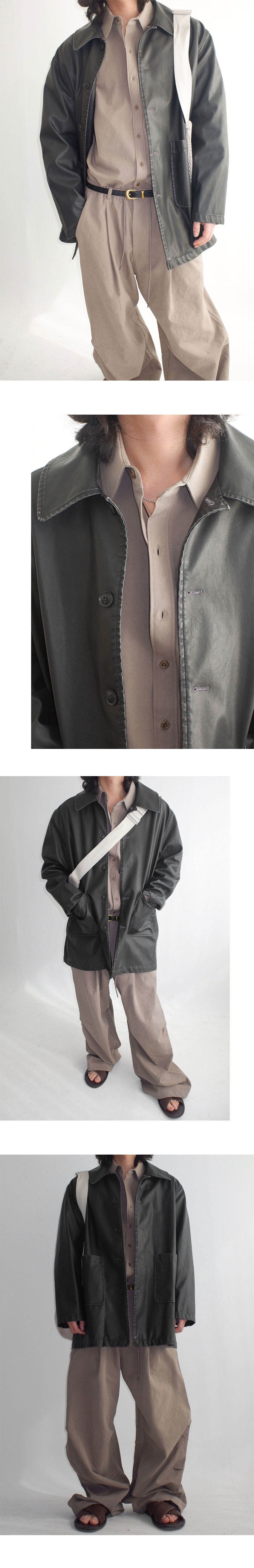 fade leather half coat