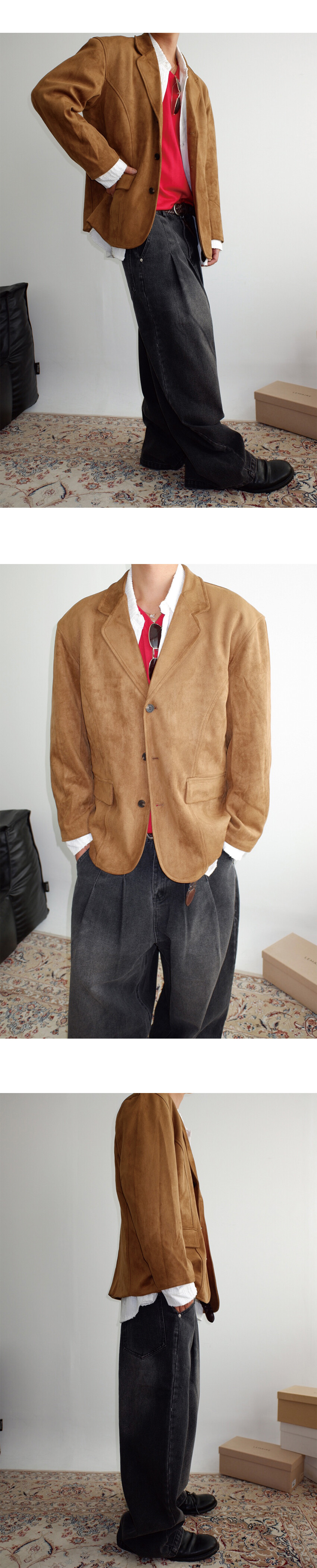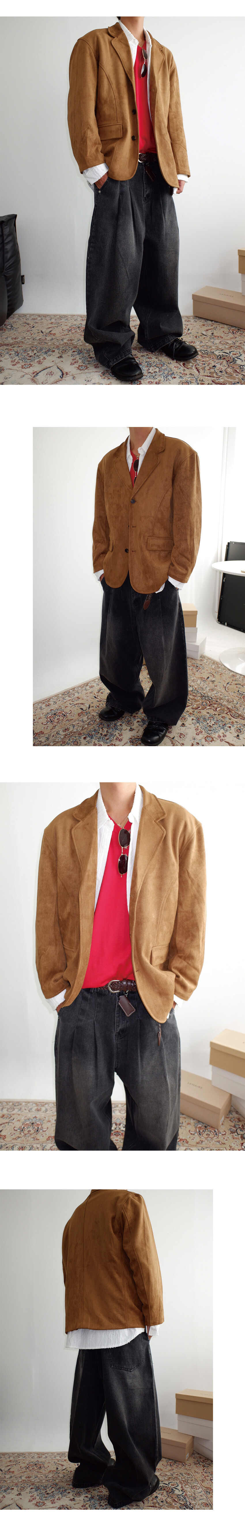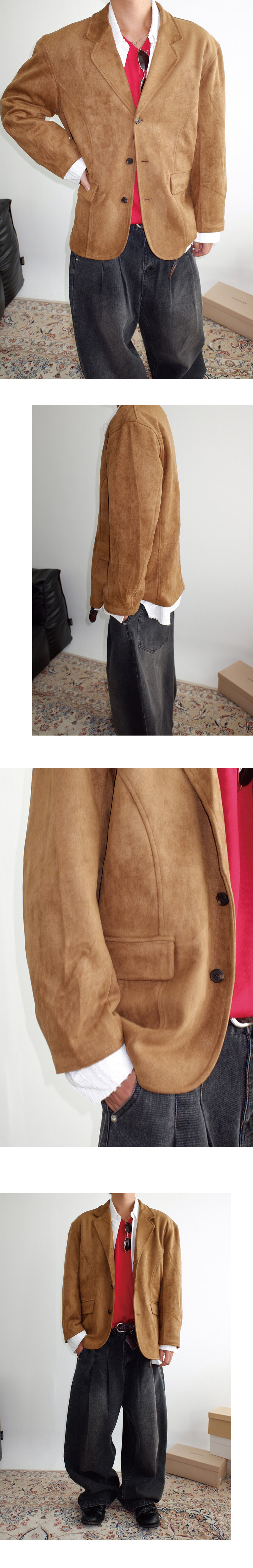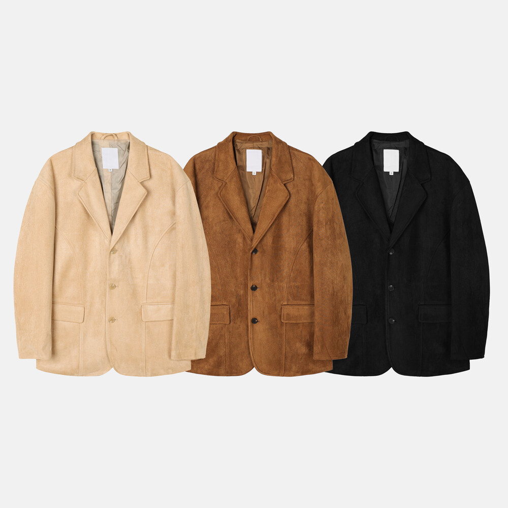 부드러운 터치감의 스웨이드 소재로 제작된 블레이저.