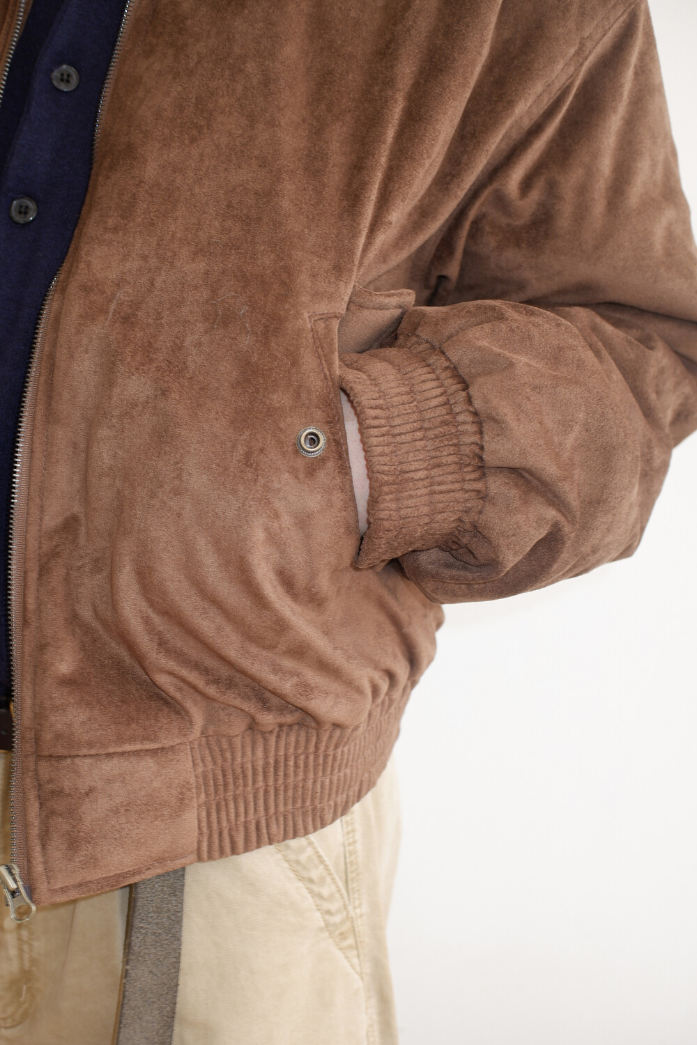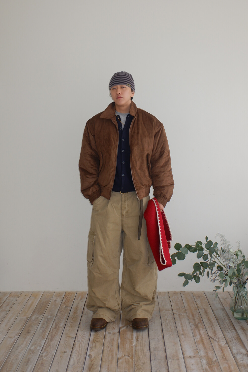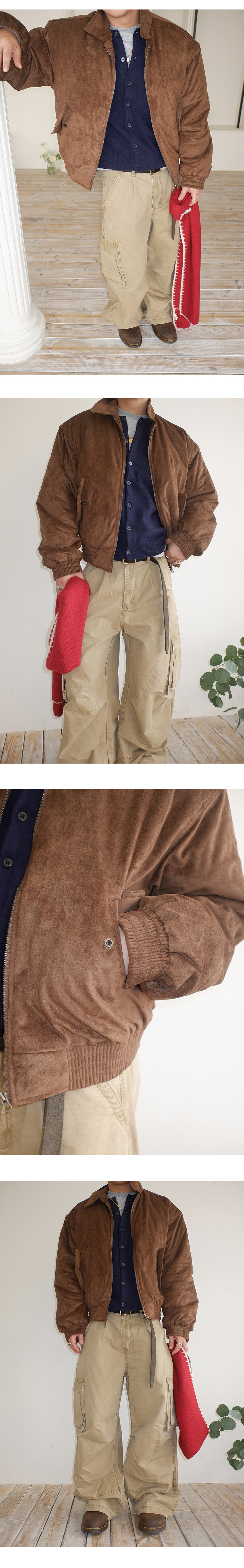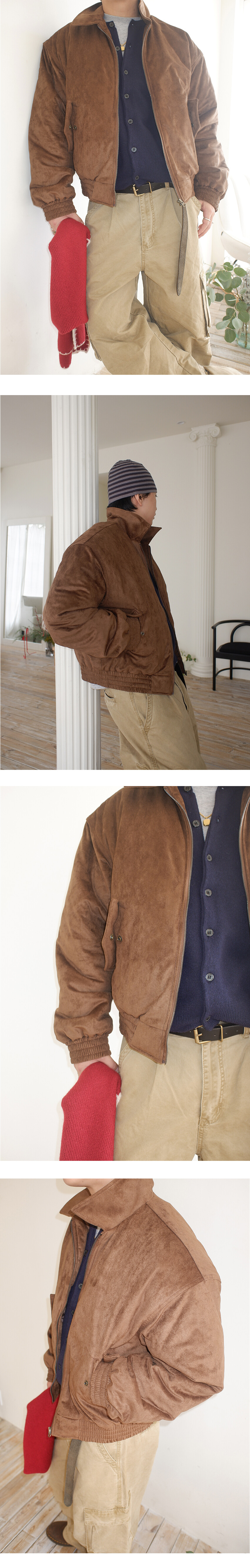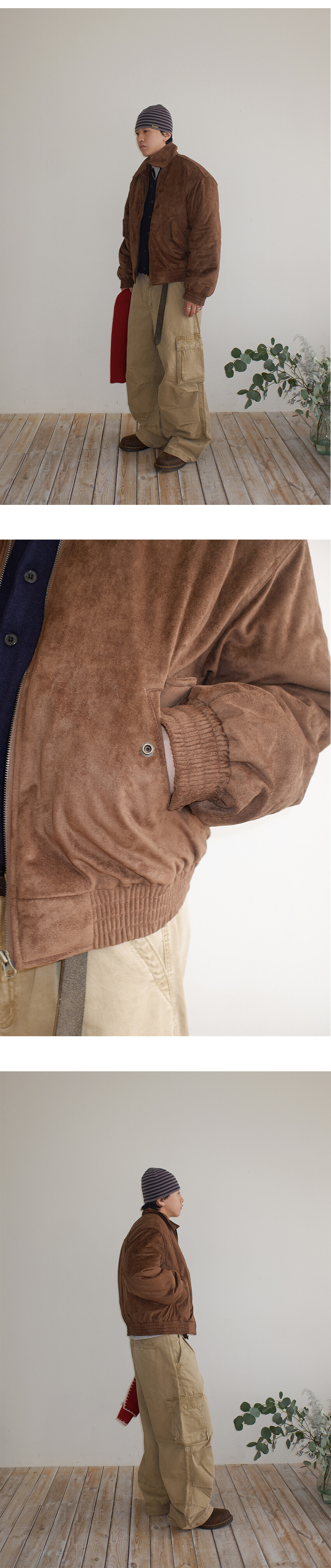 오버한 실루엣의 스웨이드 점퍼입니다.