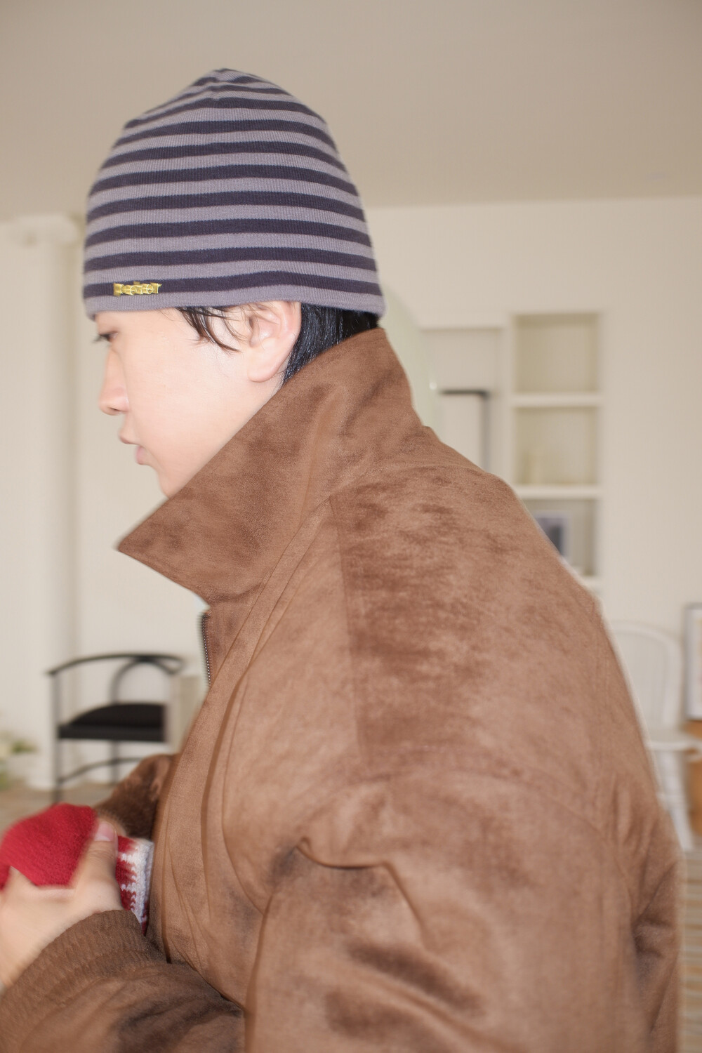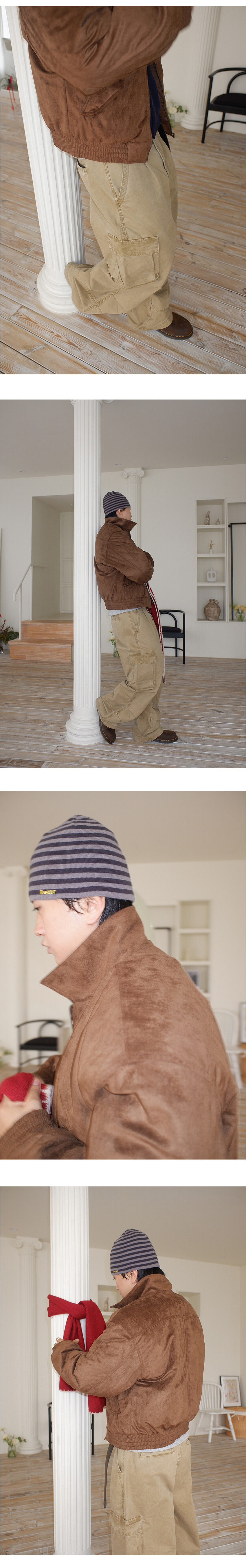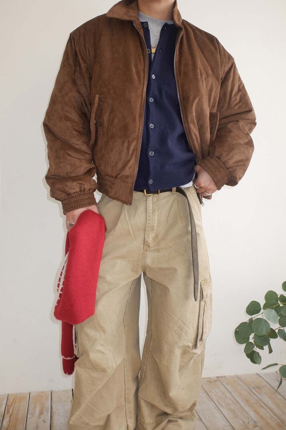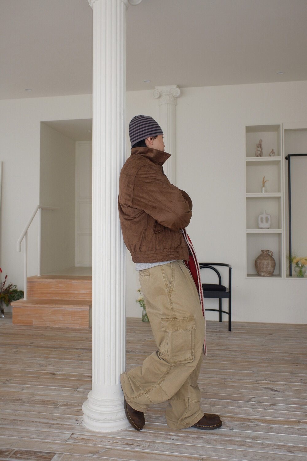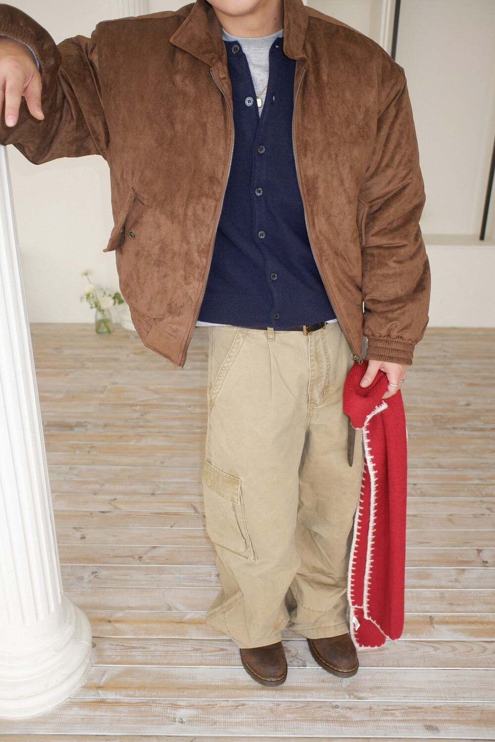 오버한 실루엣의 스웨이드 점퍼입니다.