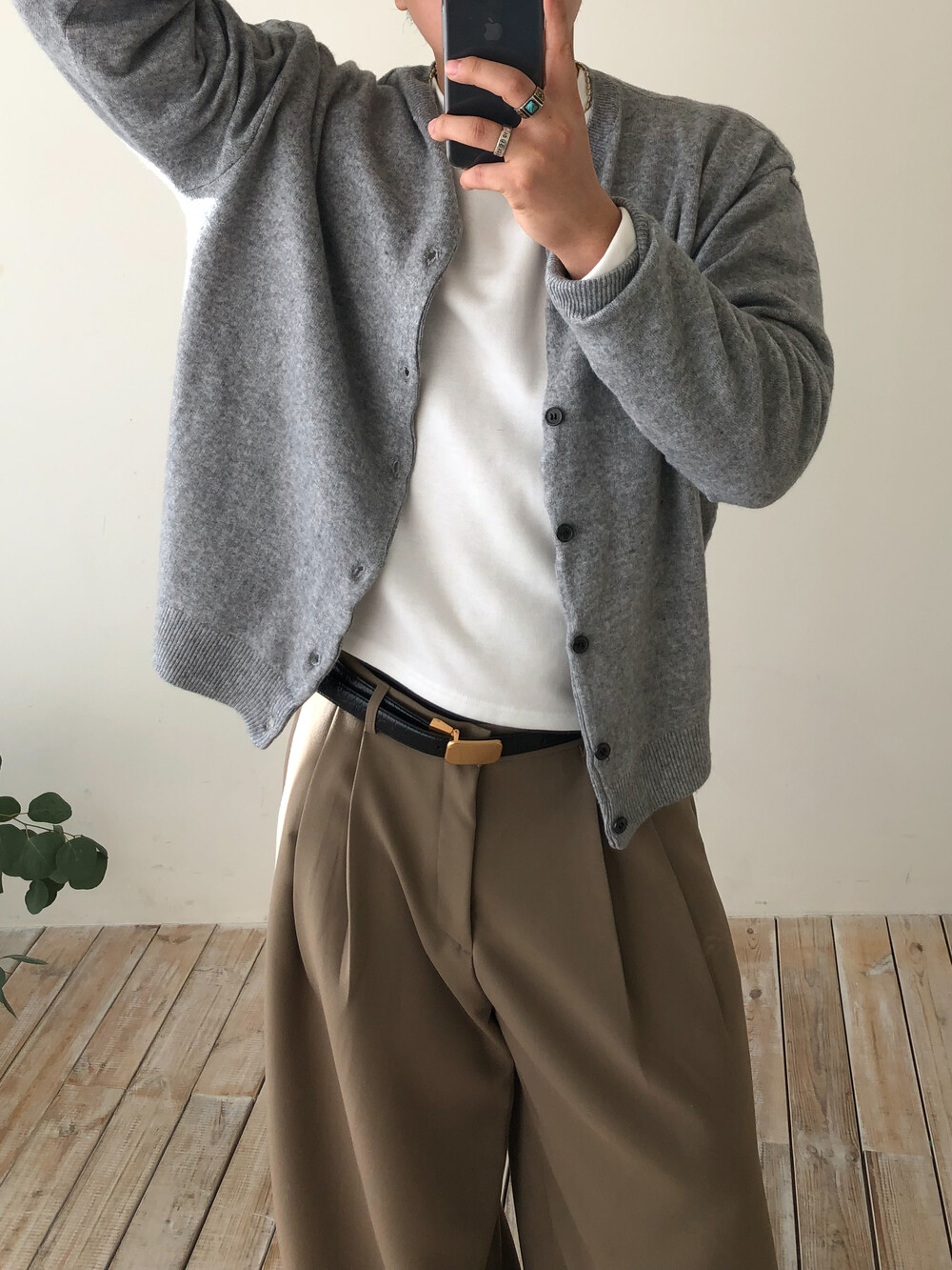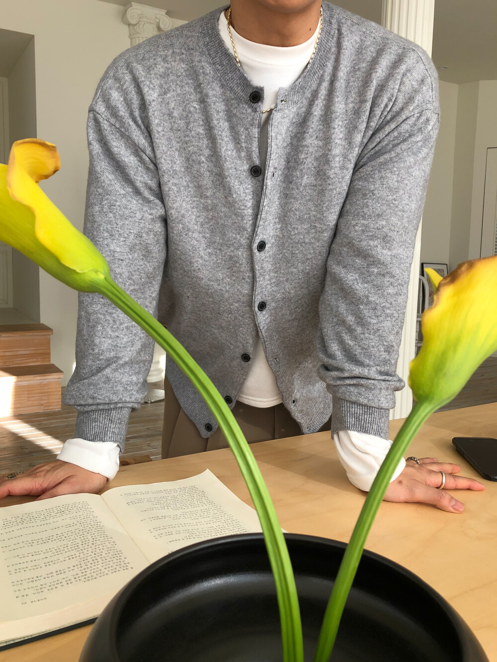울 혼방 소재를 사용해 포근한 터치감의 라운드 니트 가디건입니다.