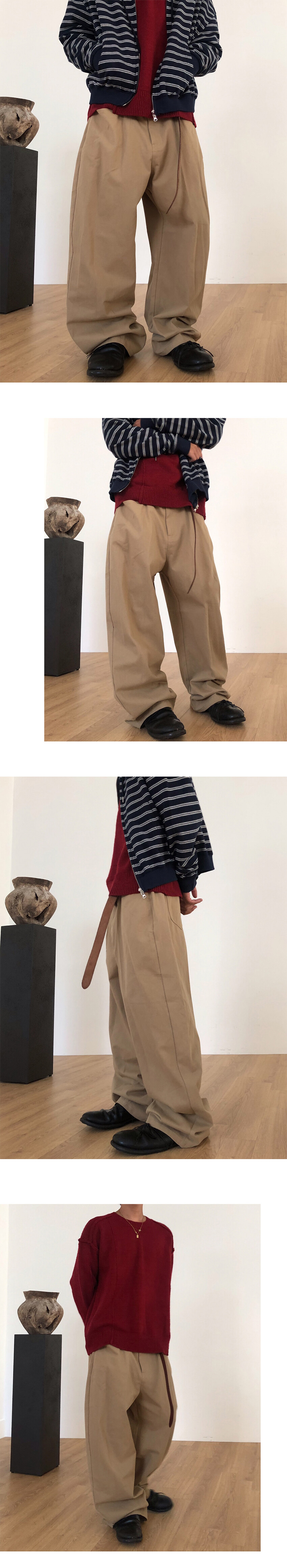 커브드 와이드 실루엣의 코튼팬츠