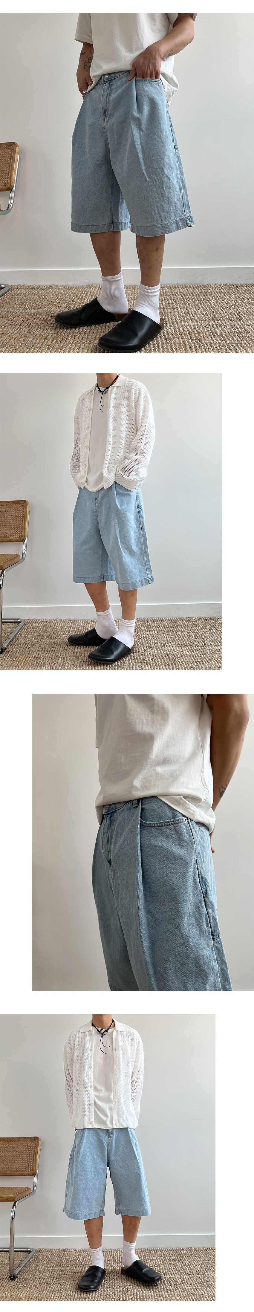 deep tuck bermuda denim