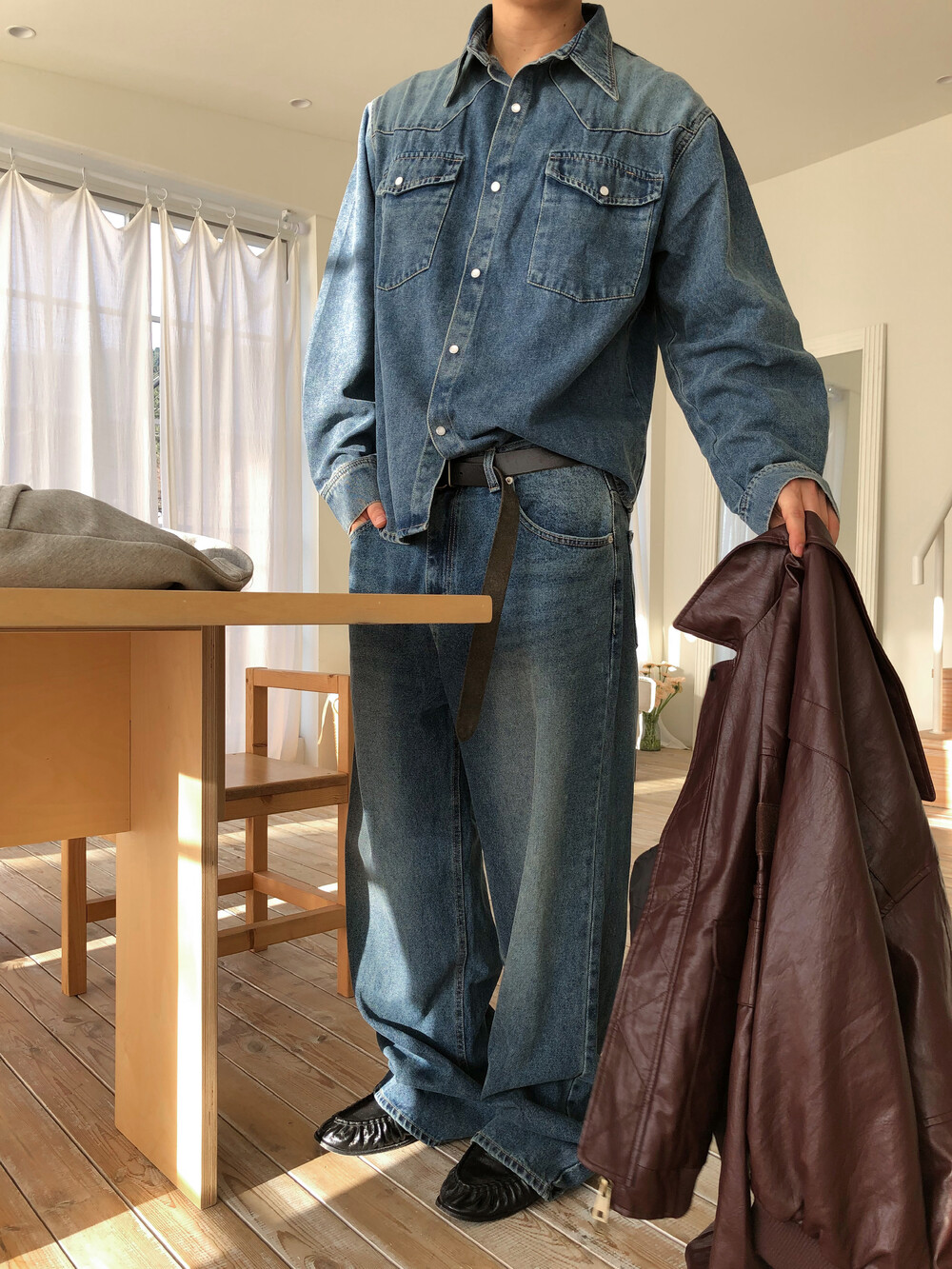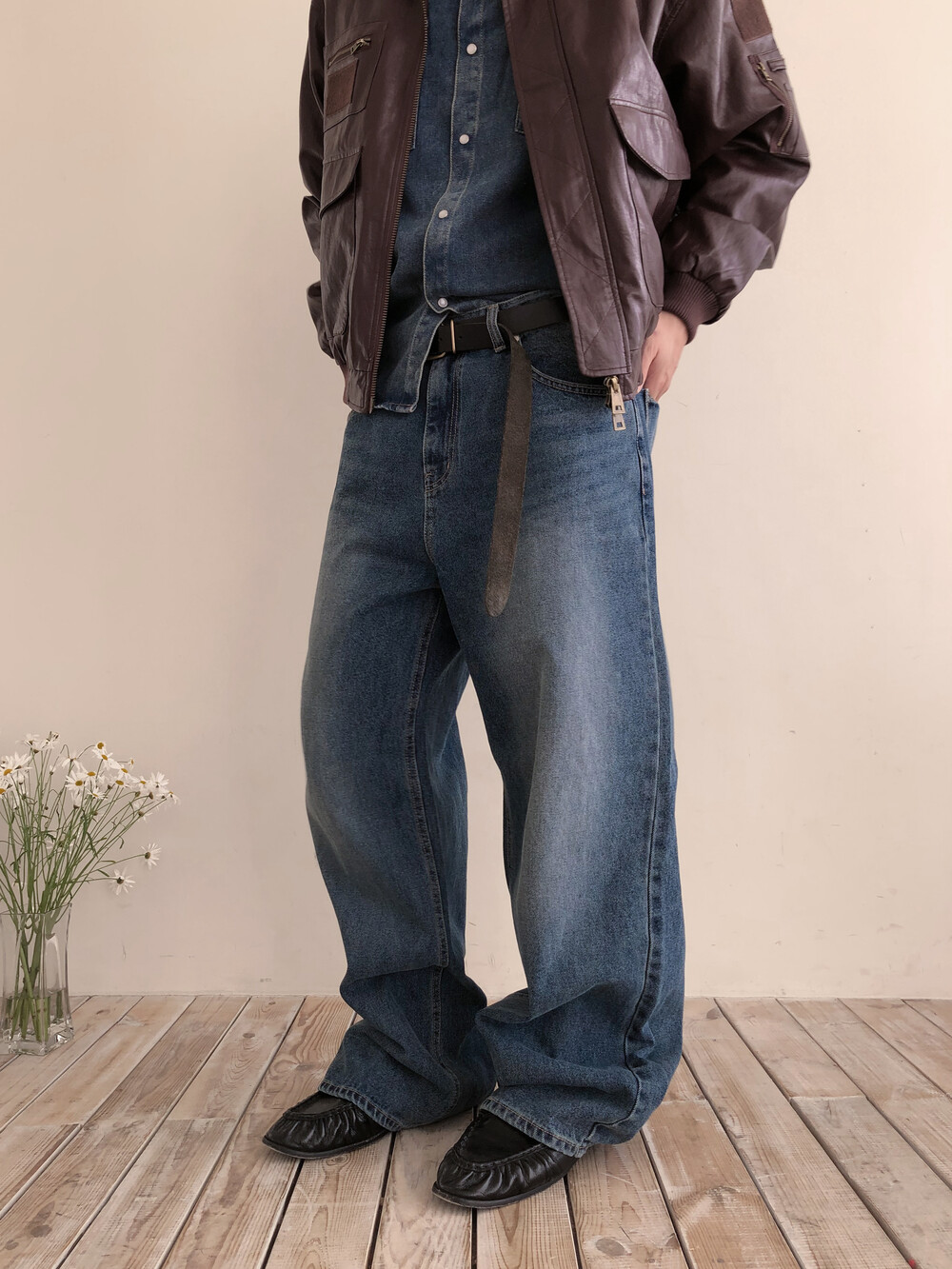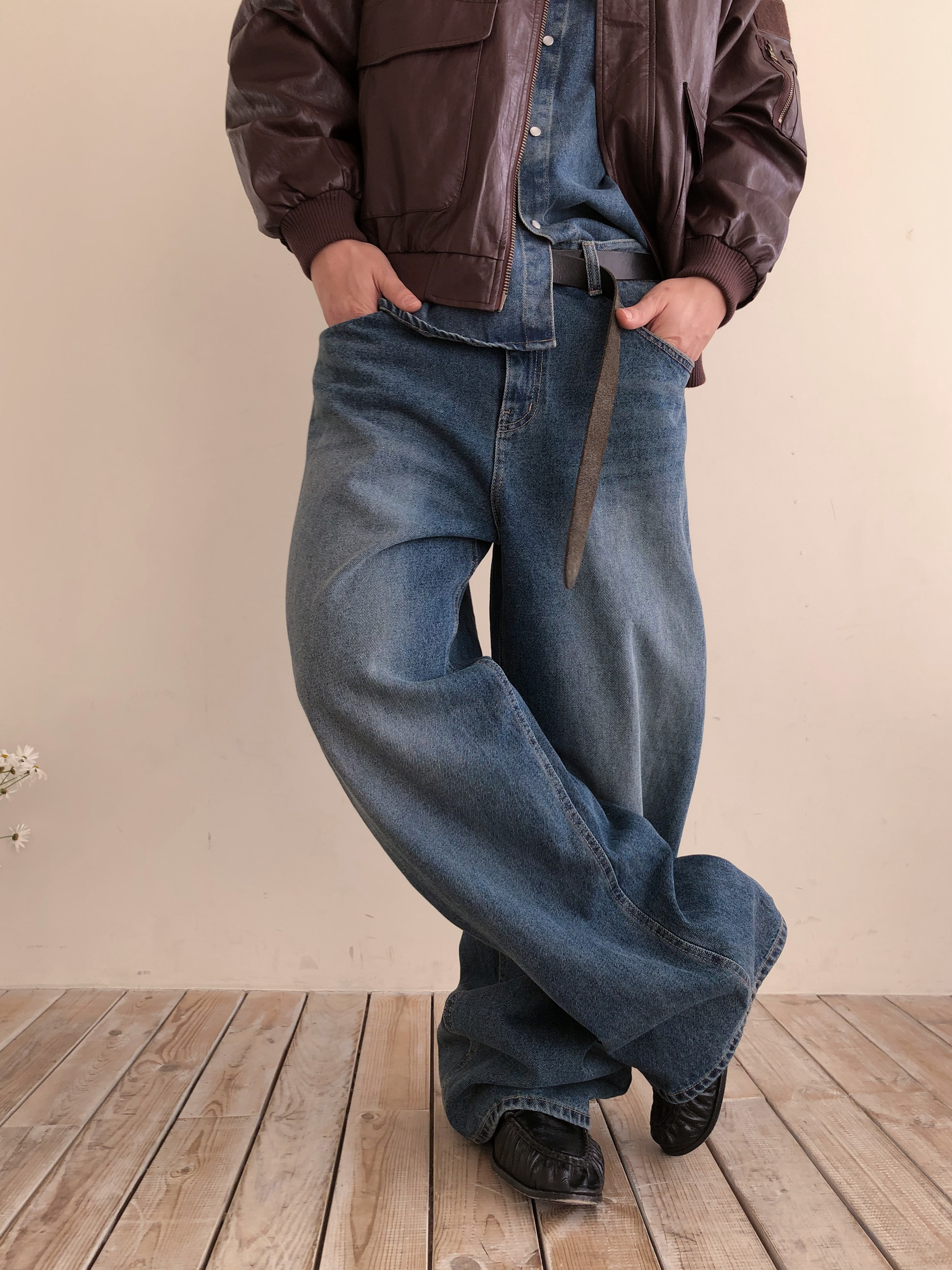 클래식한 와이드 실루엣으로 제작된 데님 팬츠입니다.
