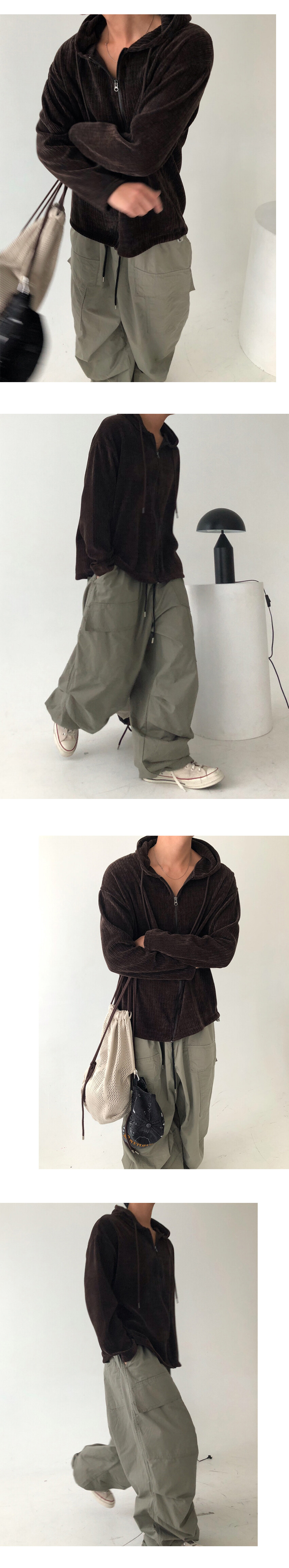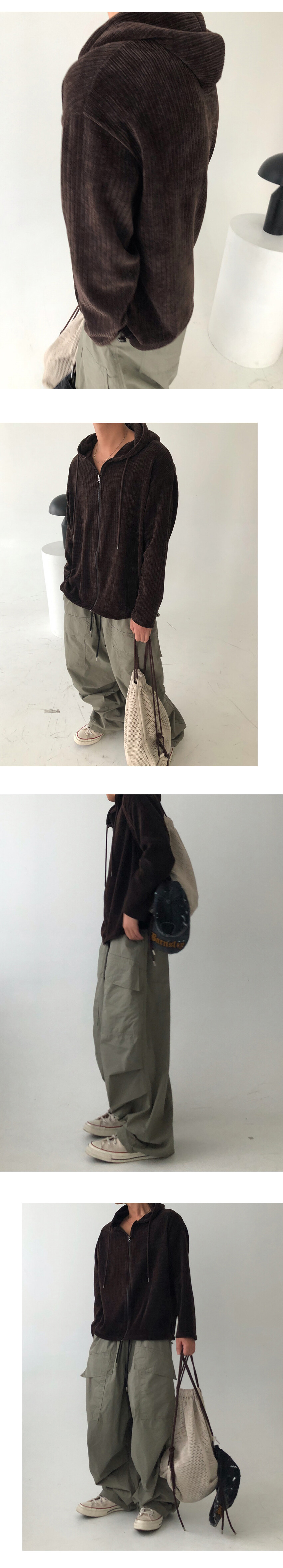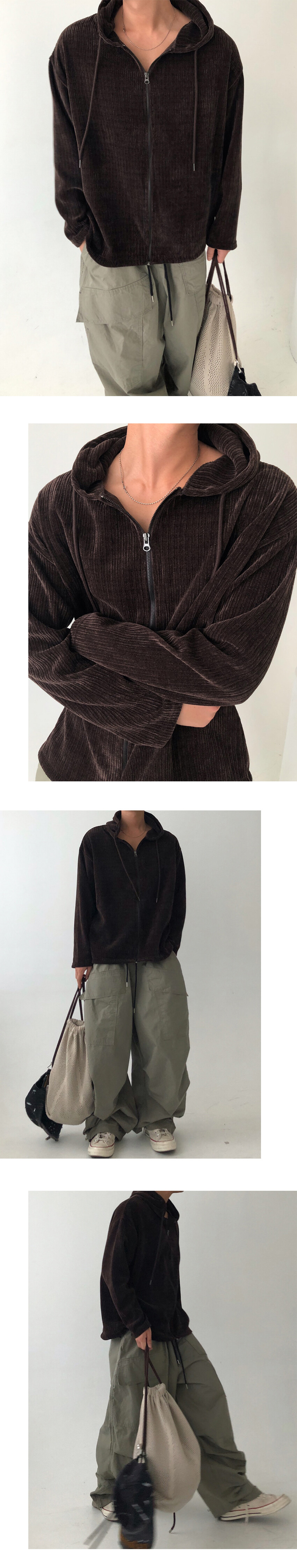 골덴 소재의 후드 집업