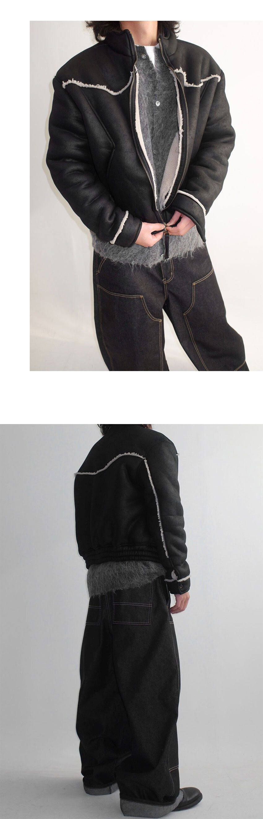 스톤바이오 워싱 (합포 무스탕원단 특성상 털날림이 있는데, 이 점을 최소화 하기위해 워싱)