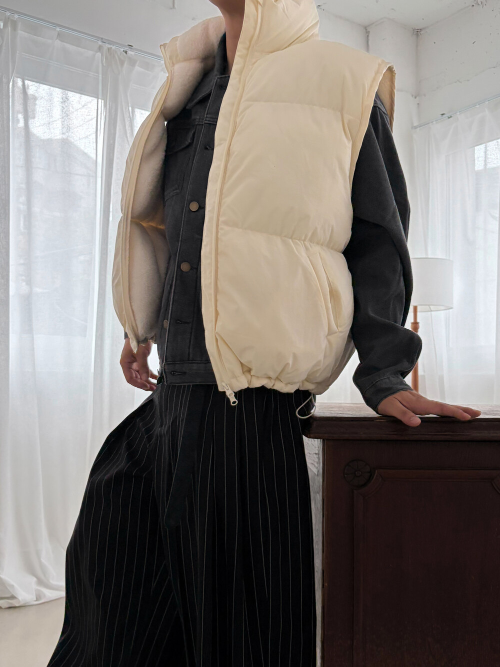 sherpa puffer vest (cream)