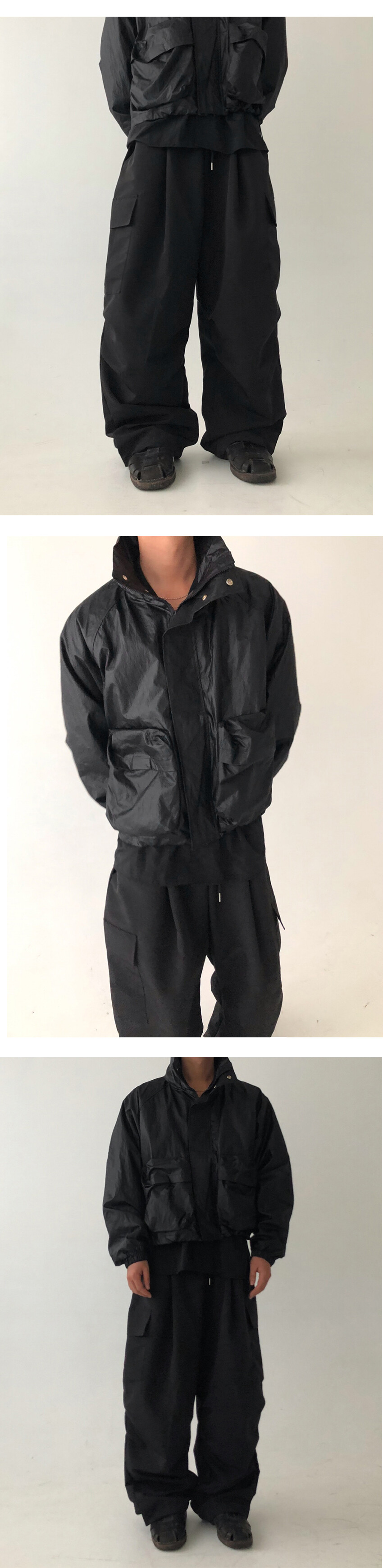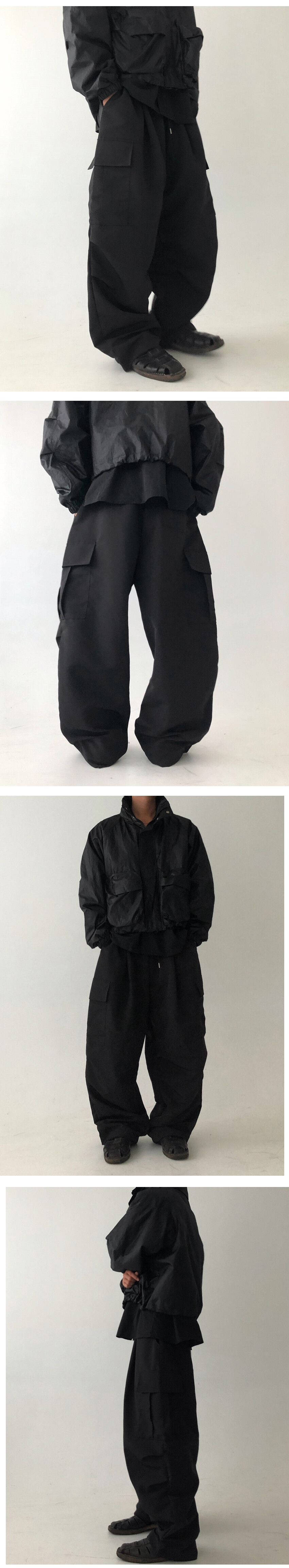 카고 포켓 ,무릎 턱, 밑단 스트링