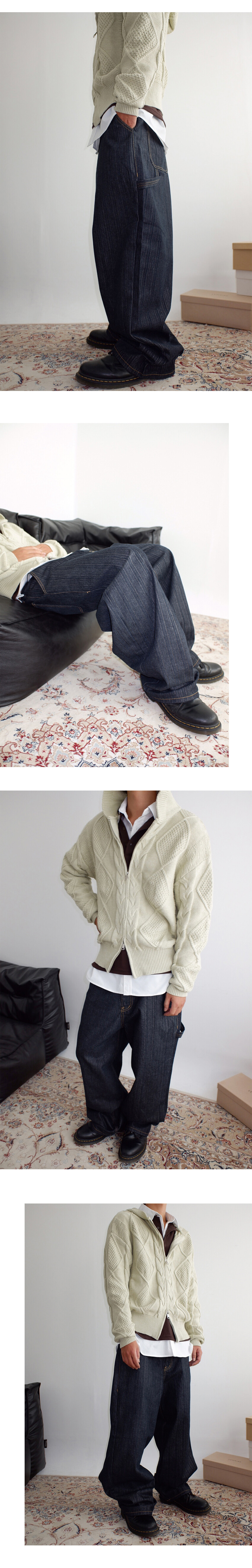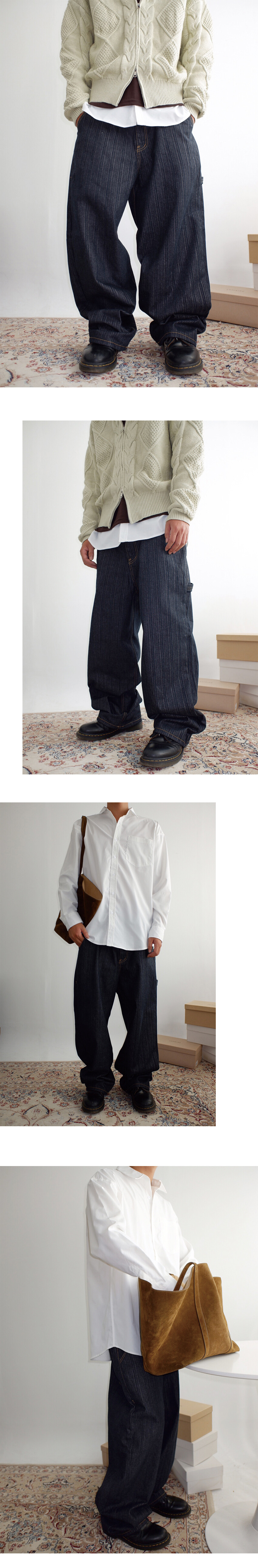 스트라이프 원단에 카펜터 디테일 데님 팬츠