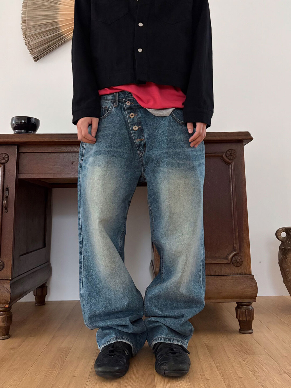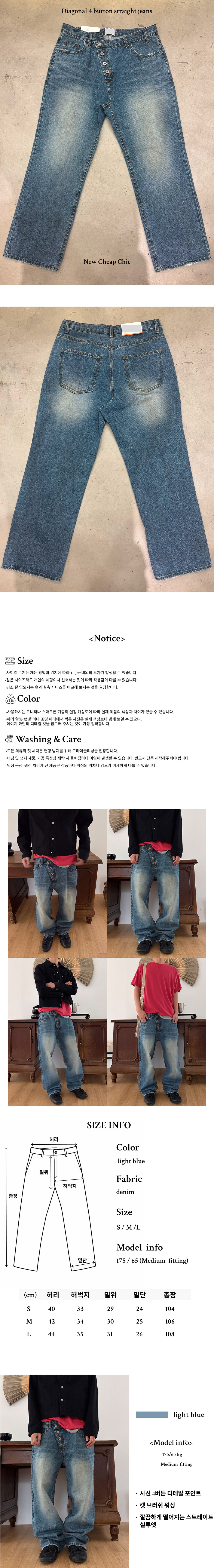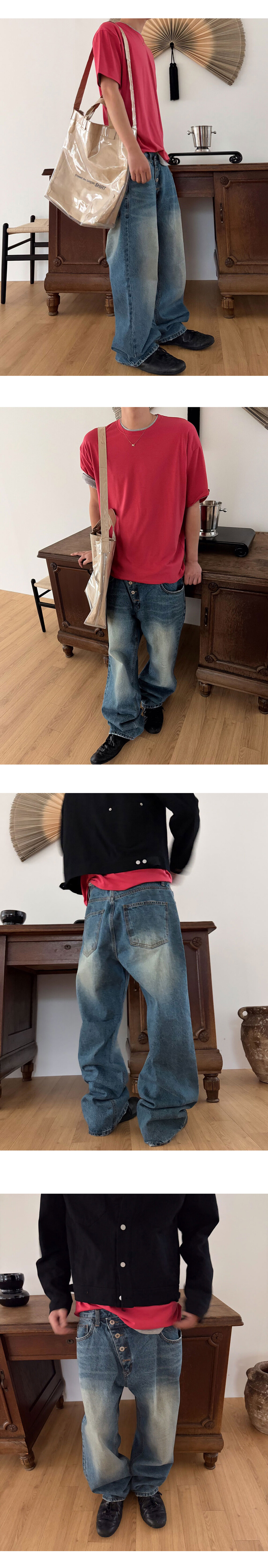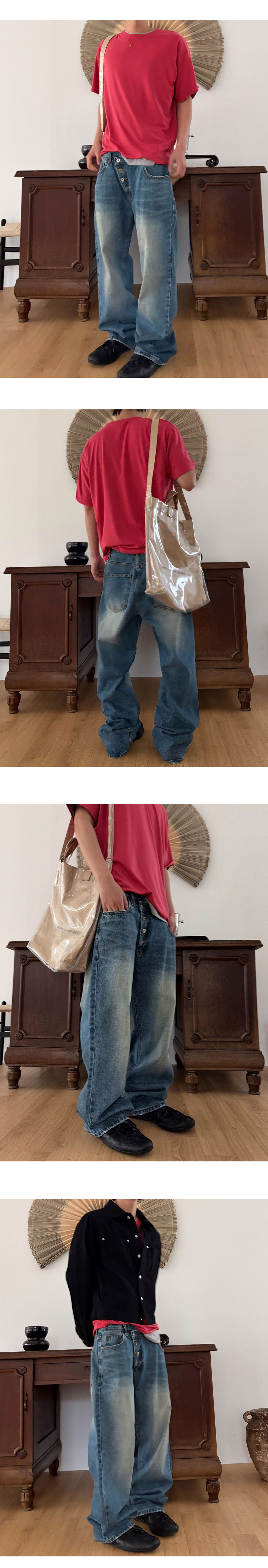 Diagonal 4 button straight jeans