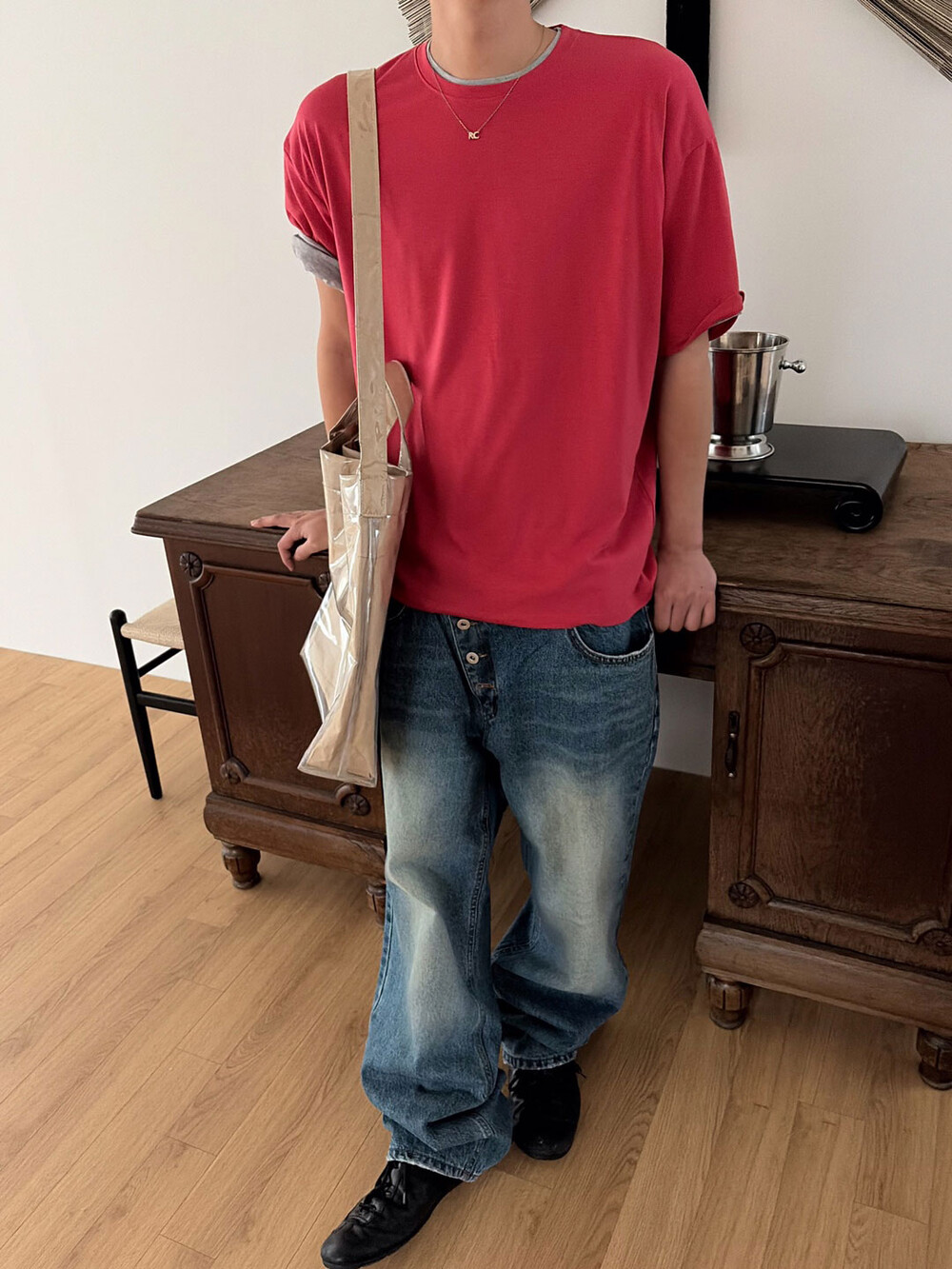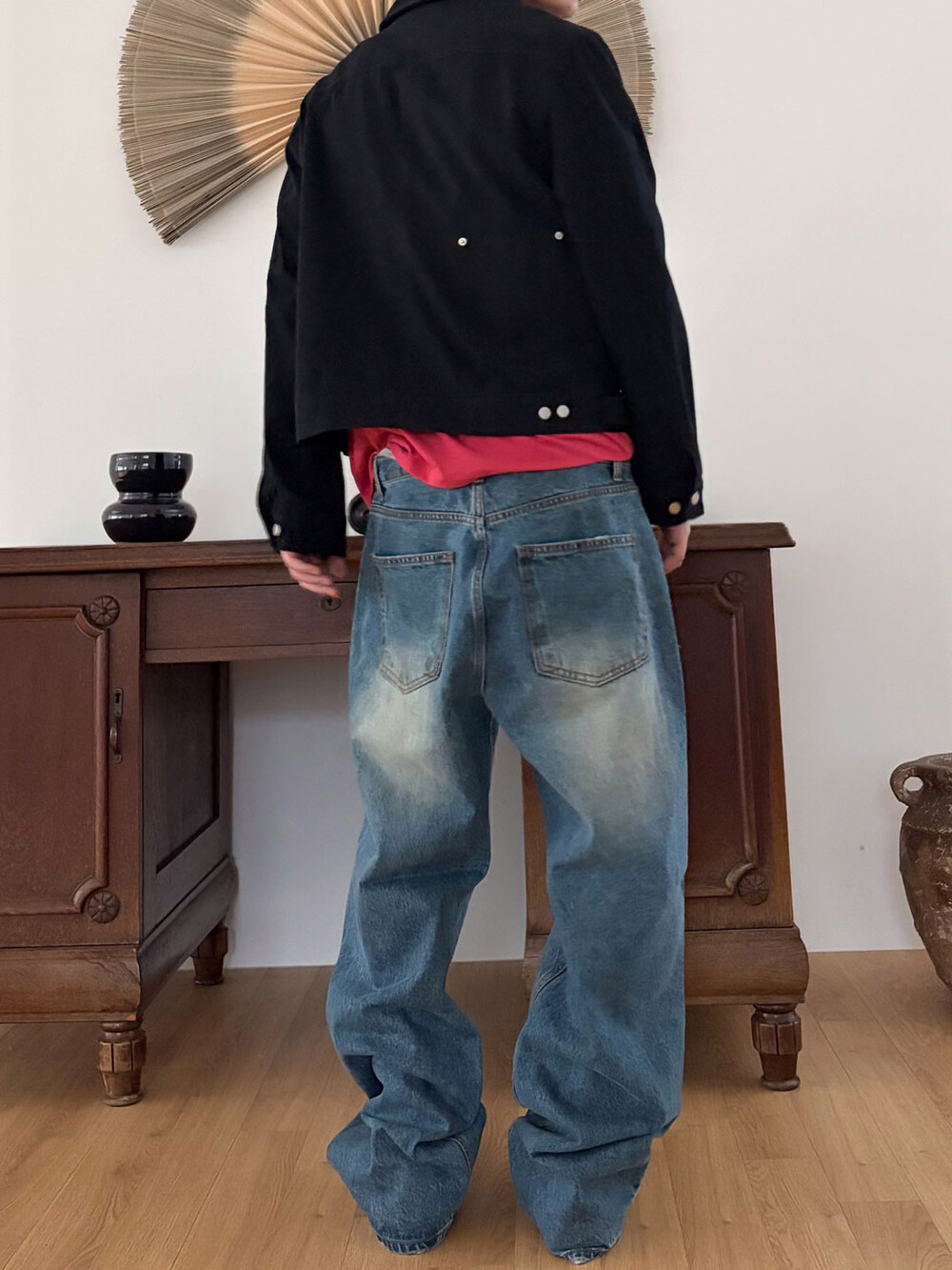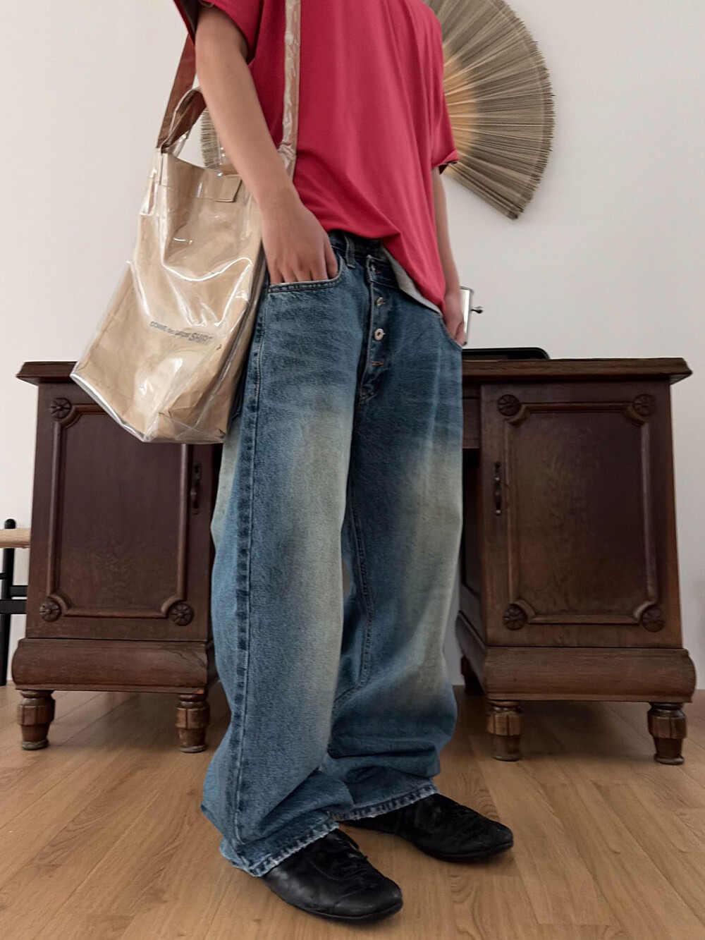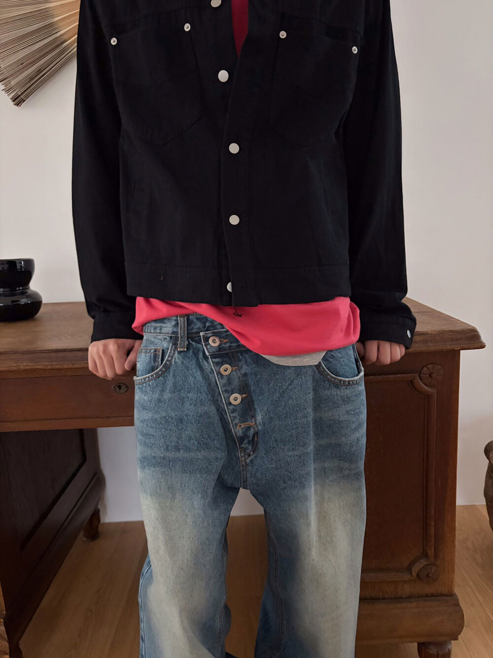 Diagonal 4 button straight jeans