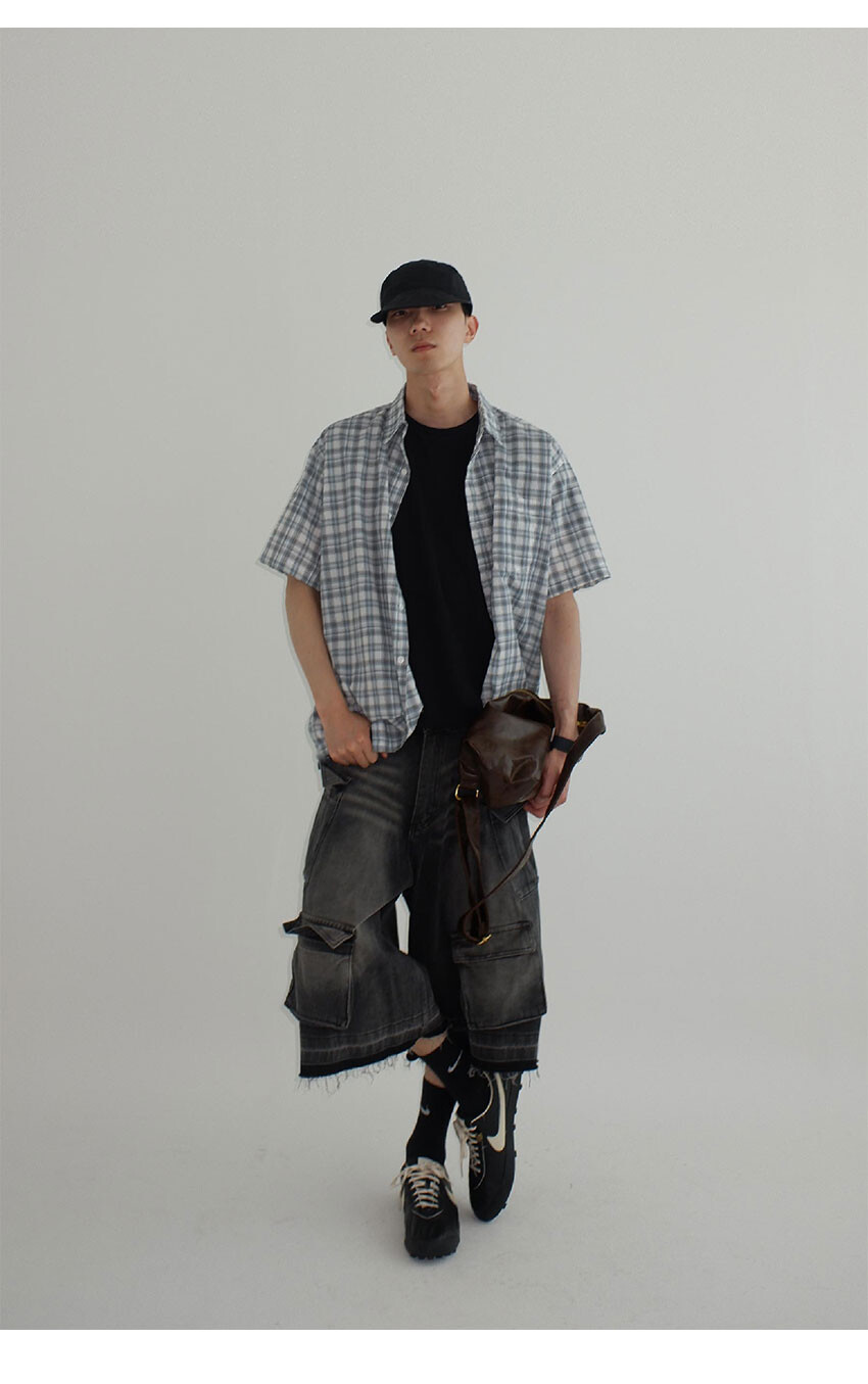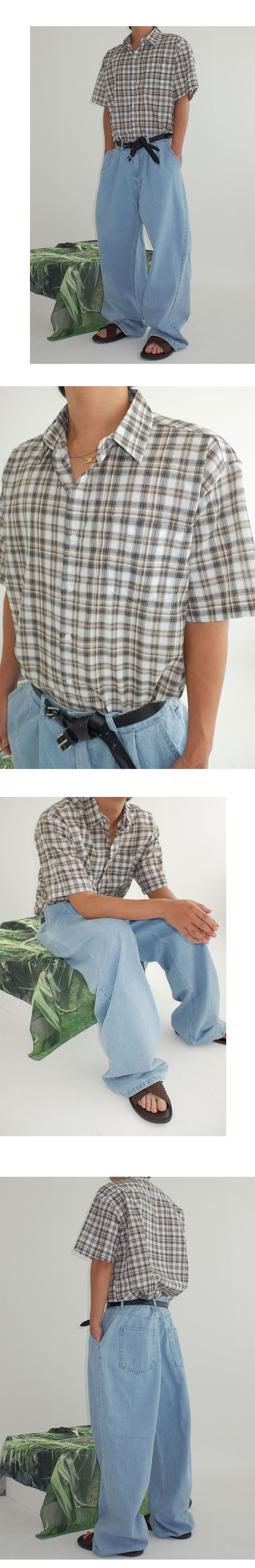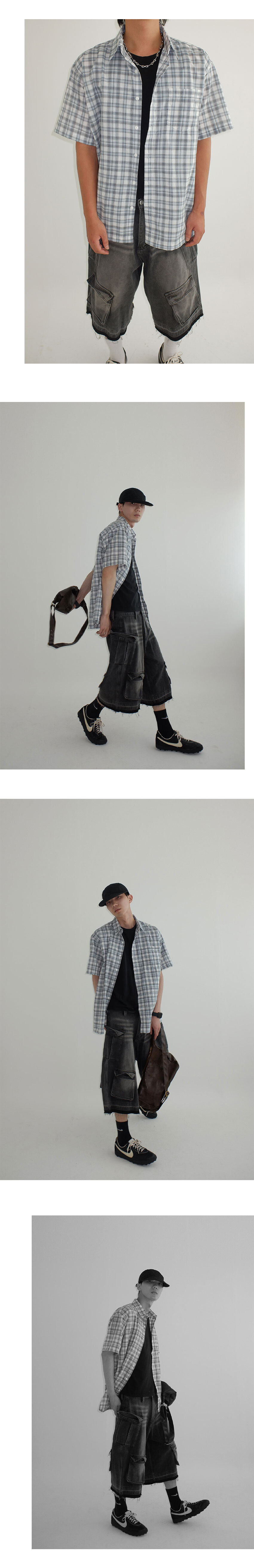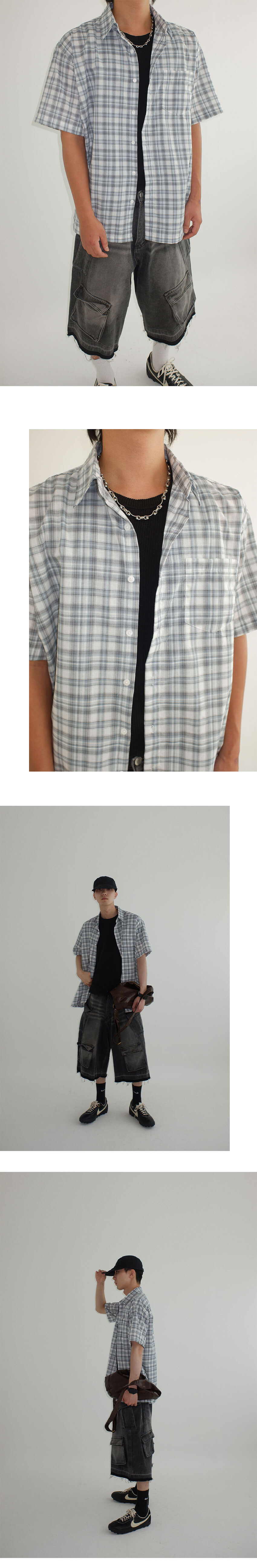 시원한 컬러감 짜임의 체크 반팔 셔츠