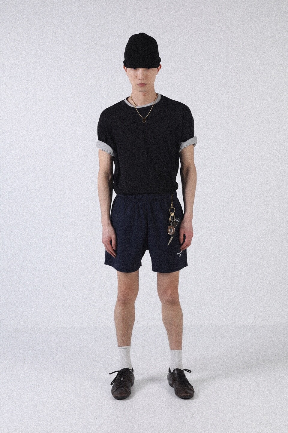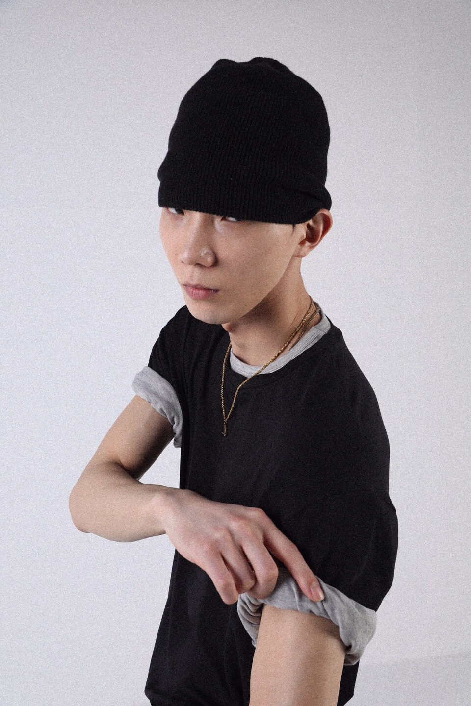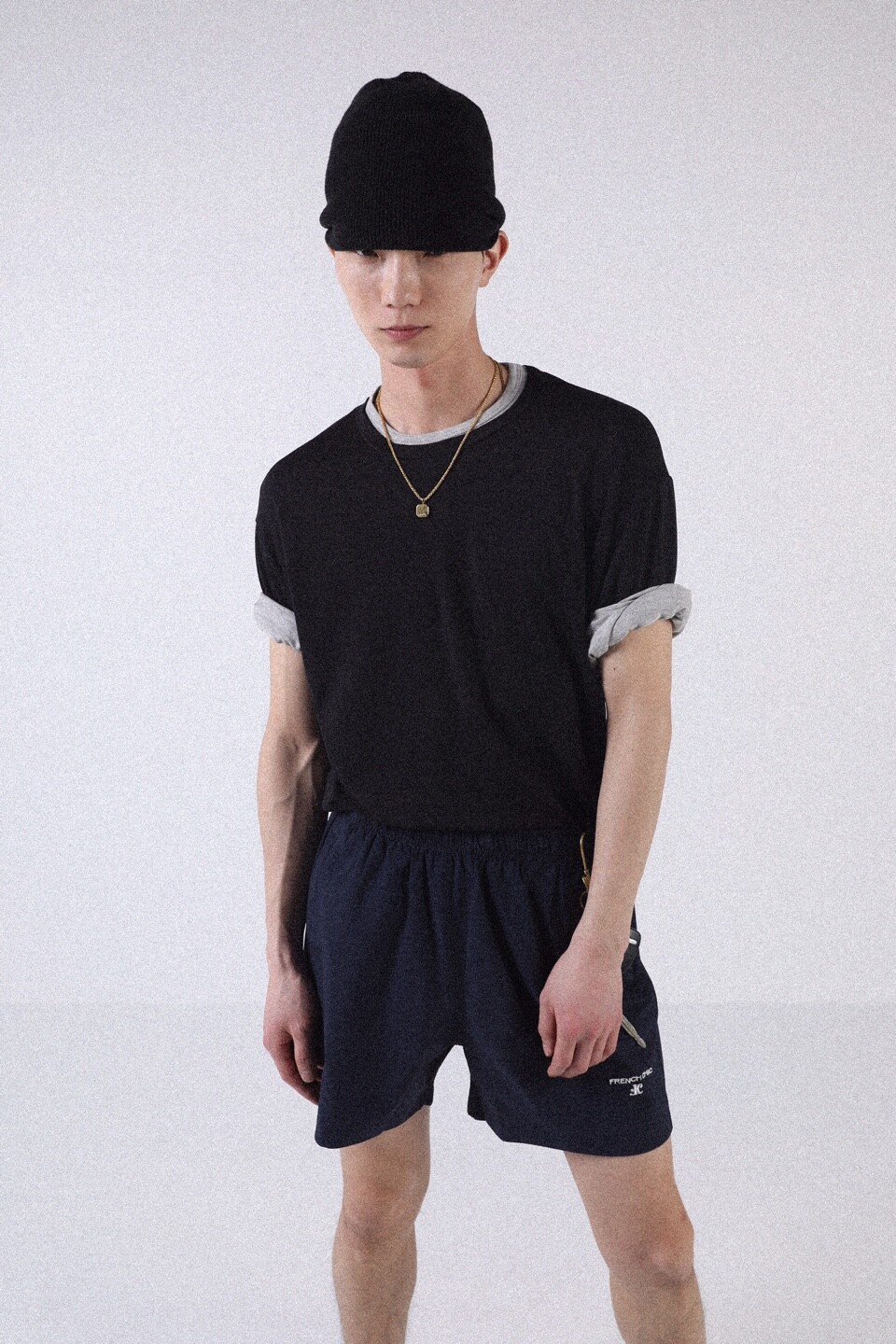 넥과 소매 부분을 이중으로 제작하여 티셔츠 두장을 겹쳐 입은 듯한 디자인으로 레이어드한 모습을 연출했습니다.