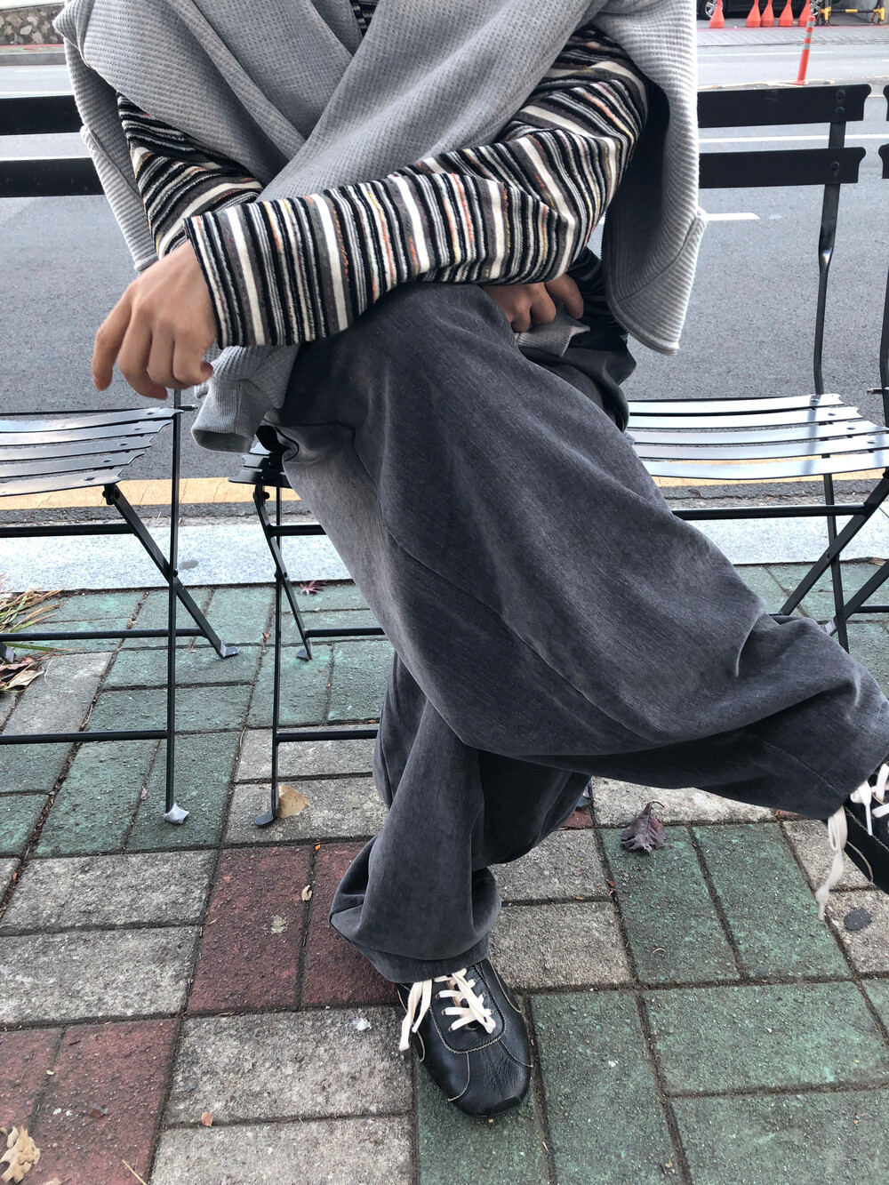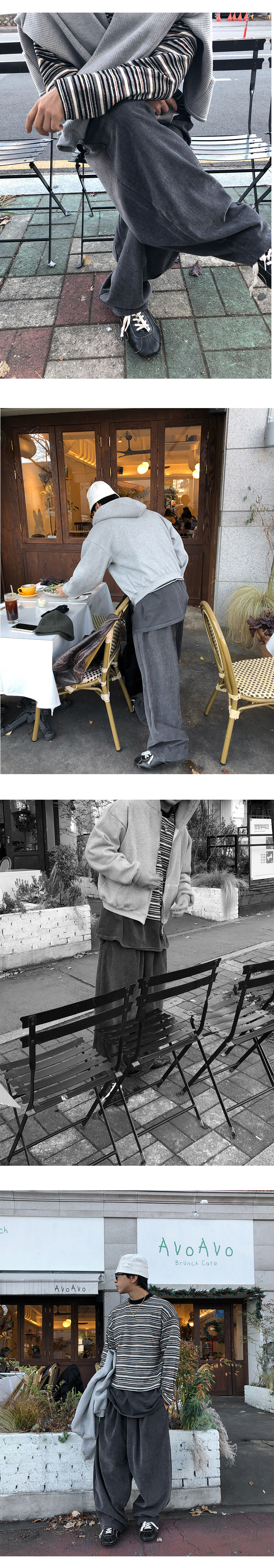 부드러운 촉감과 깊이감 있는 컬러 표현이 특징인 와이드 벨루아팬츠입니다.