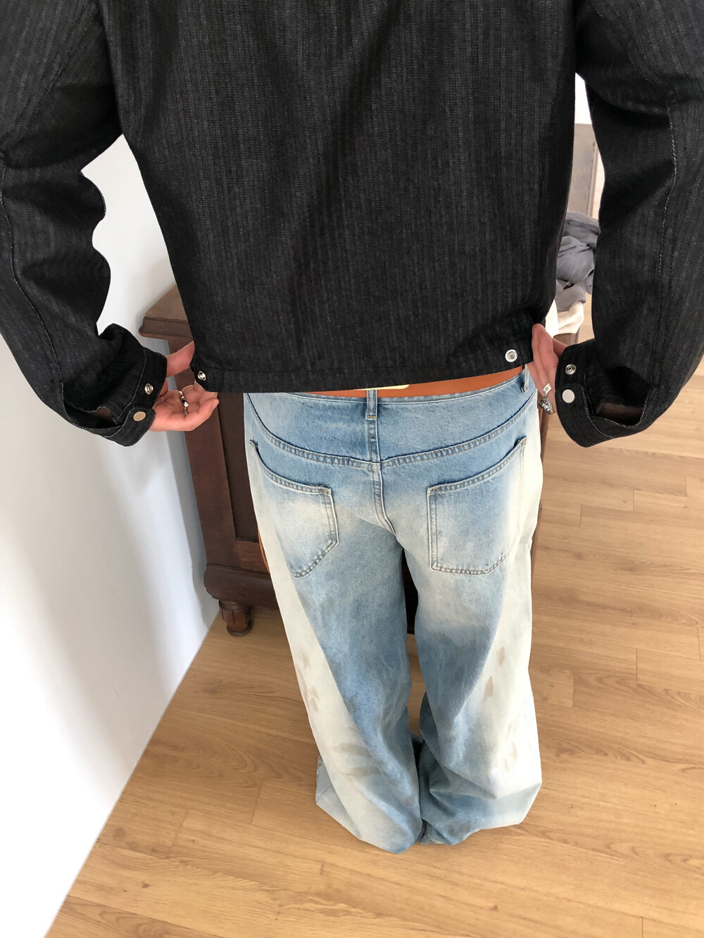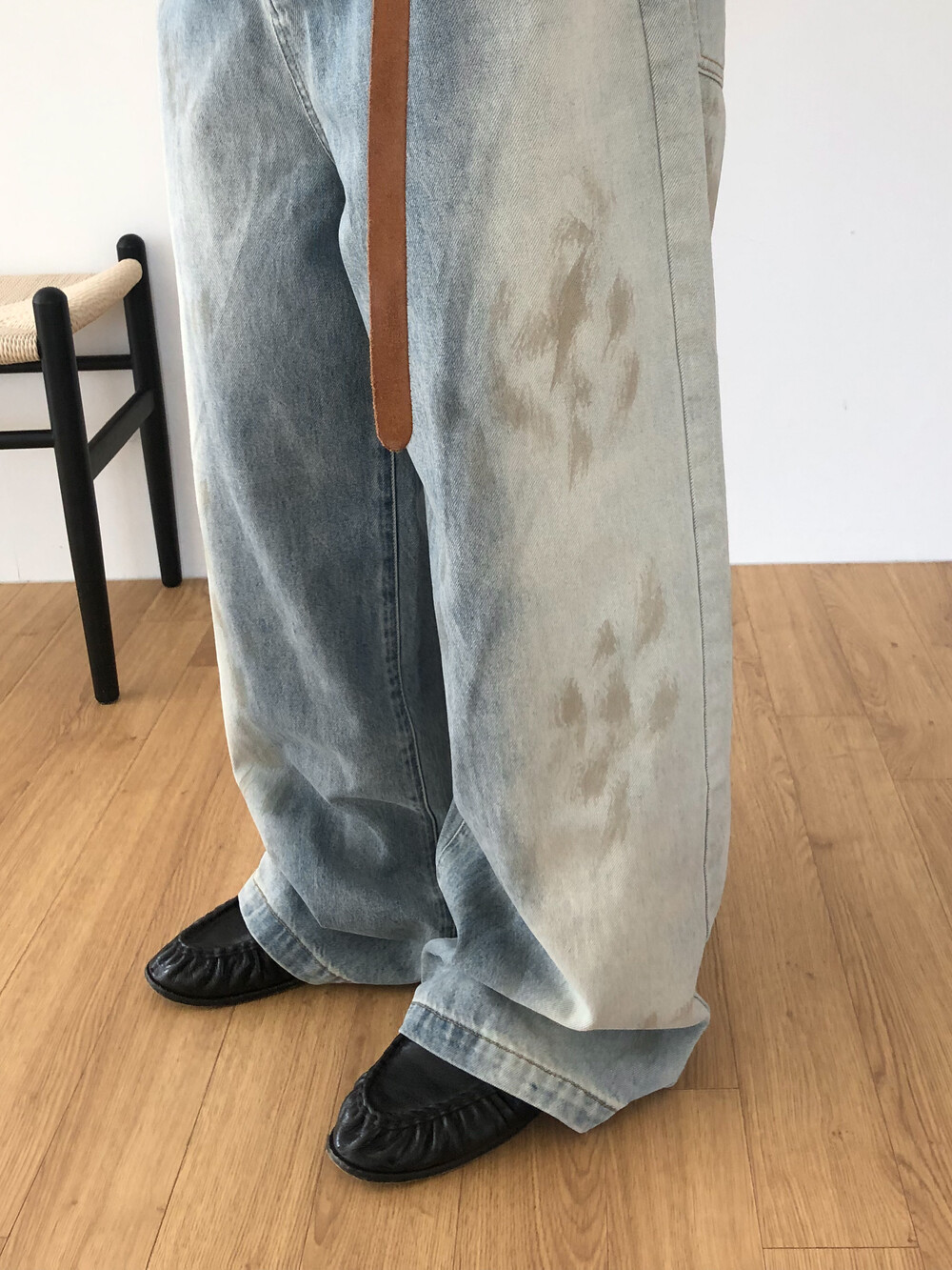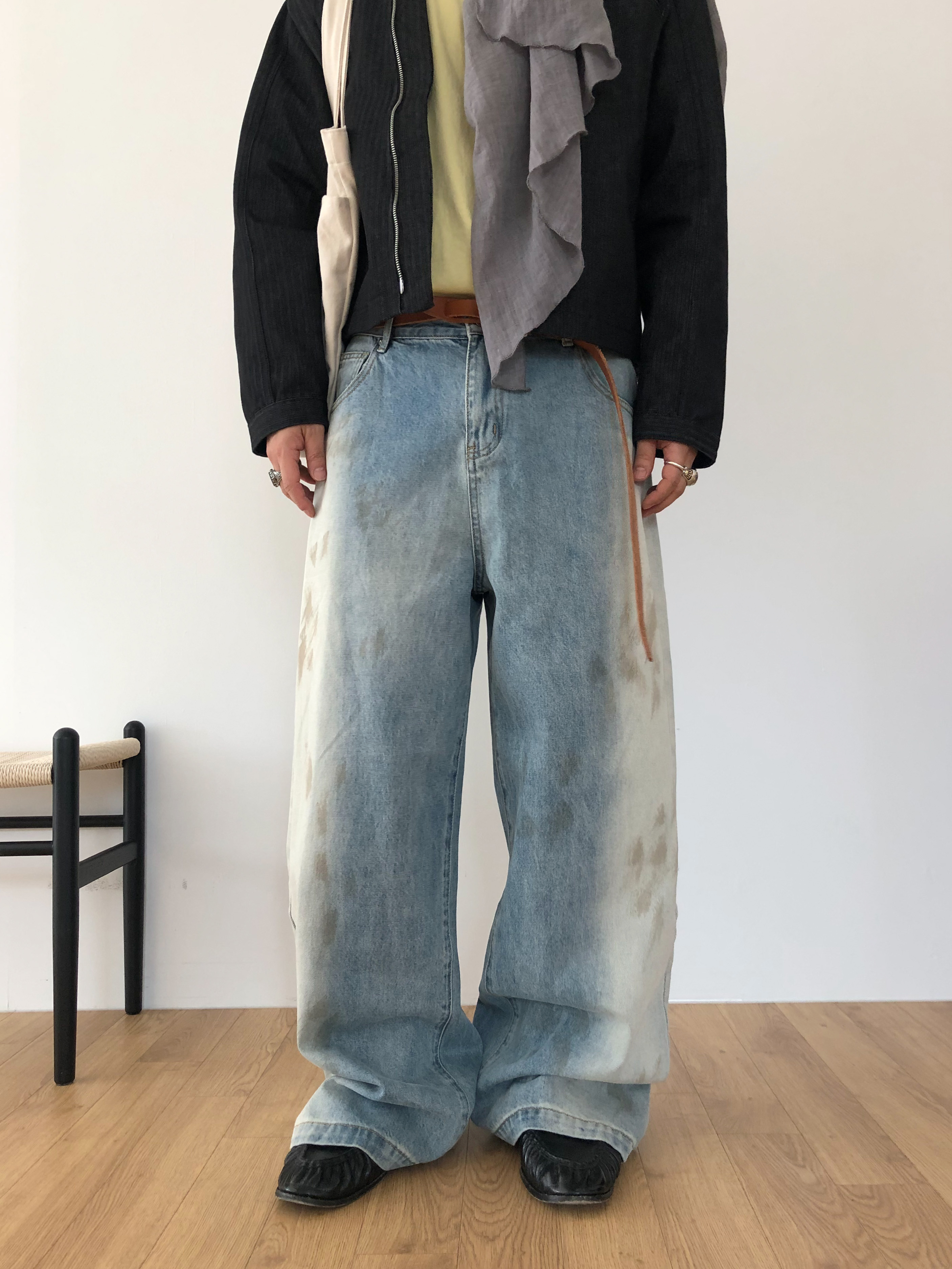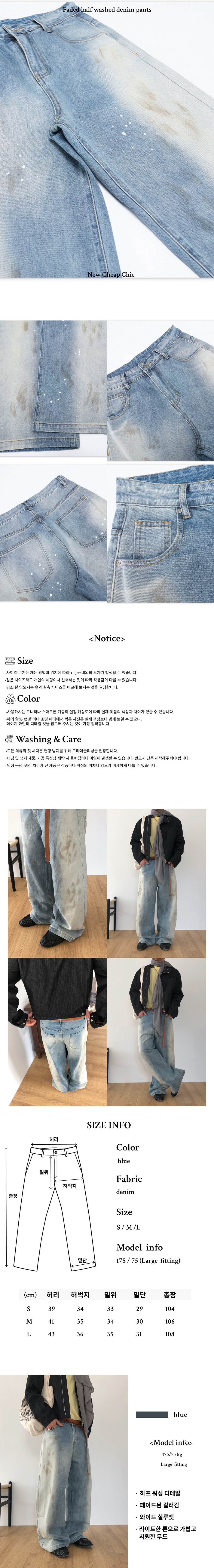 Faded half washed denim pants