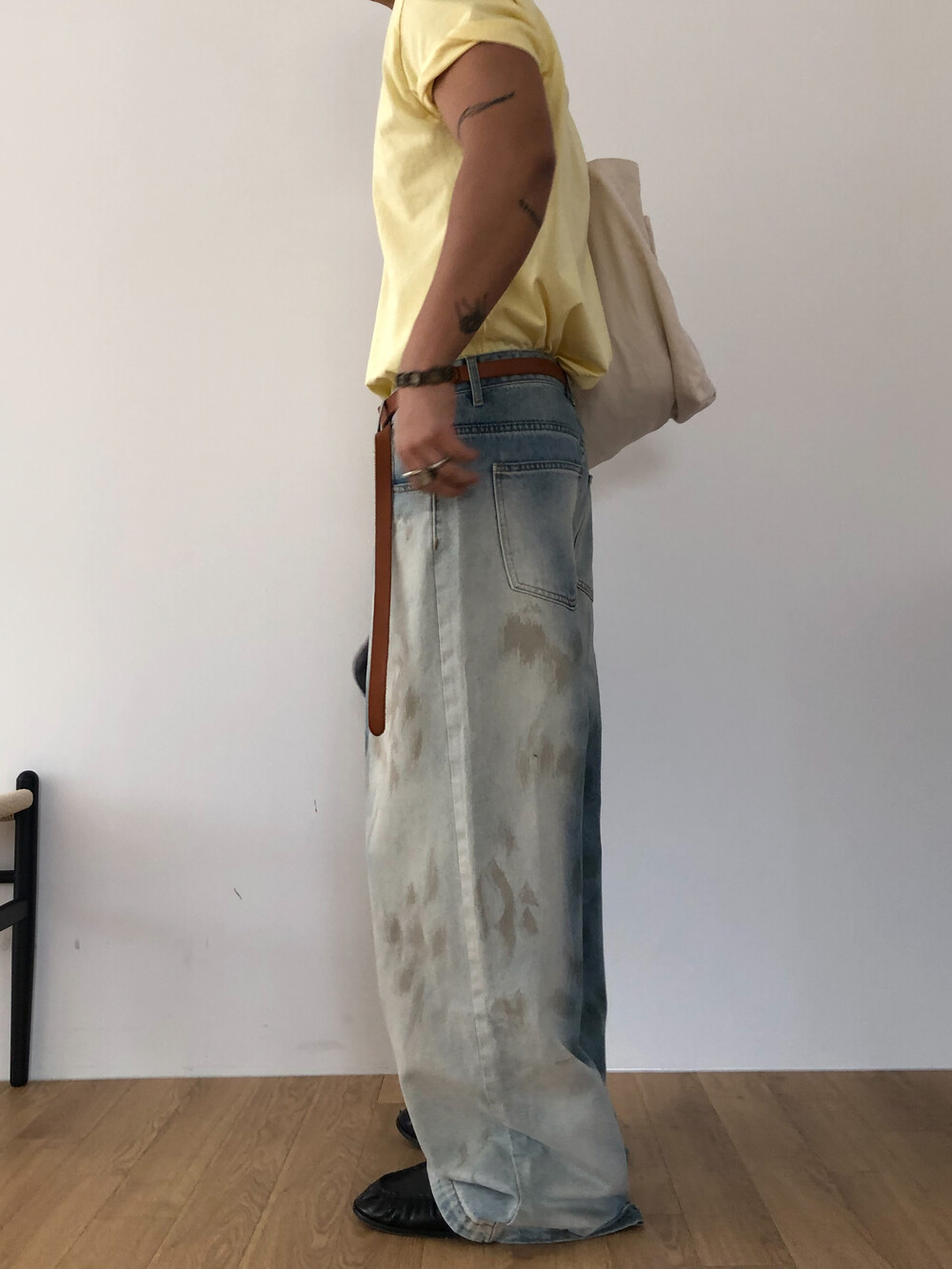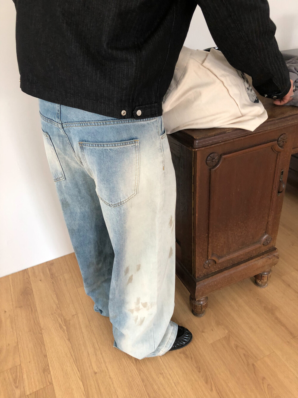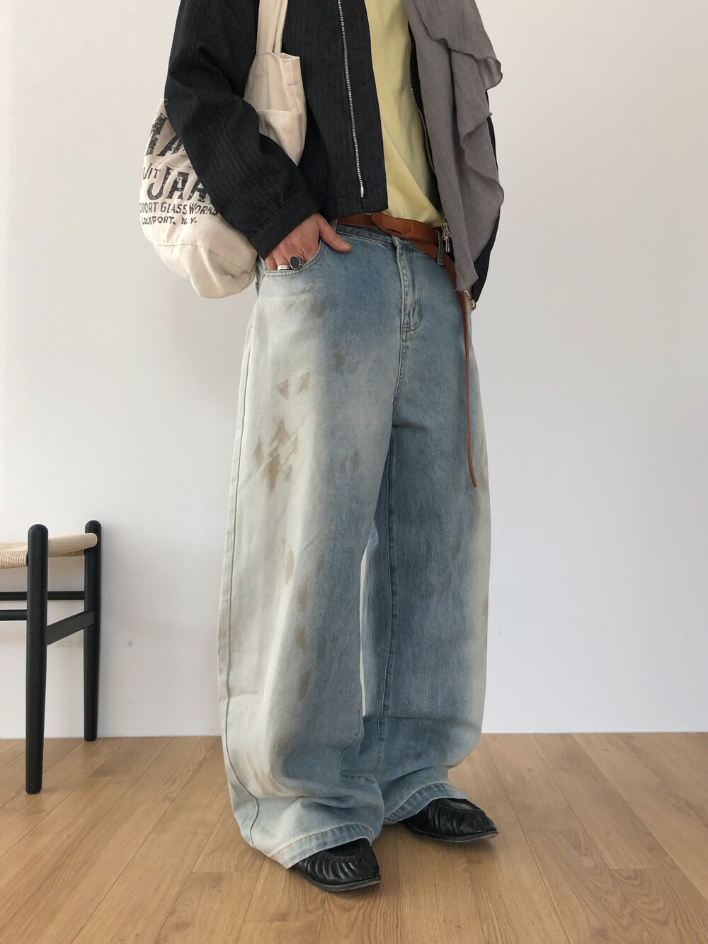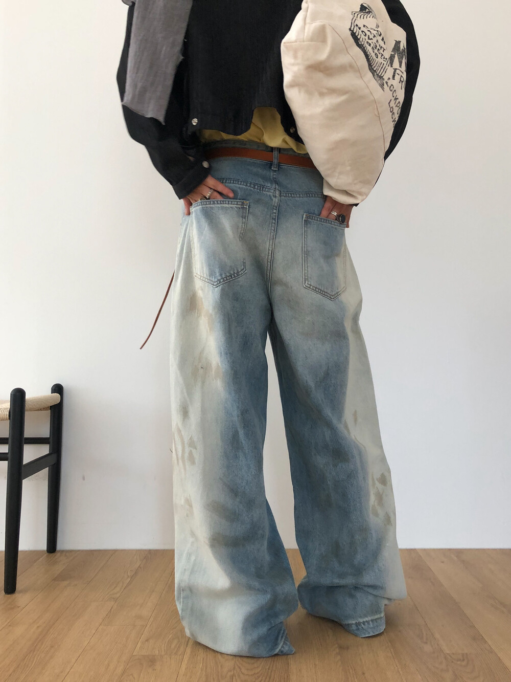 Faded half washed denim pants