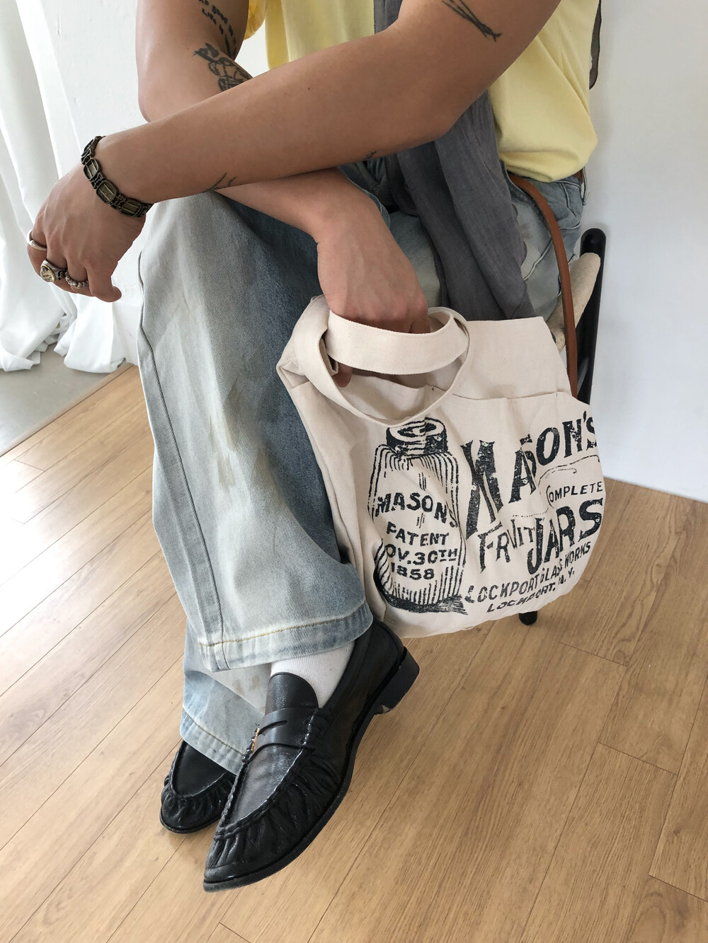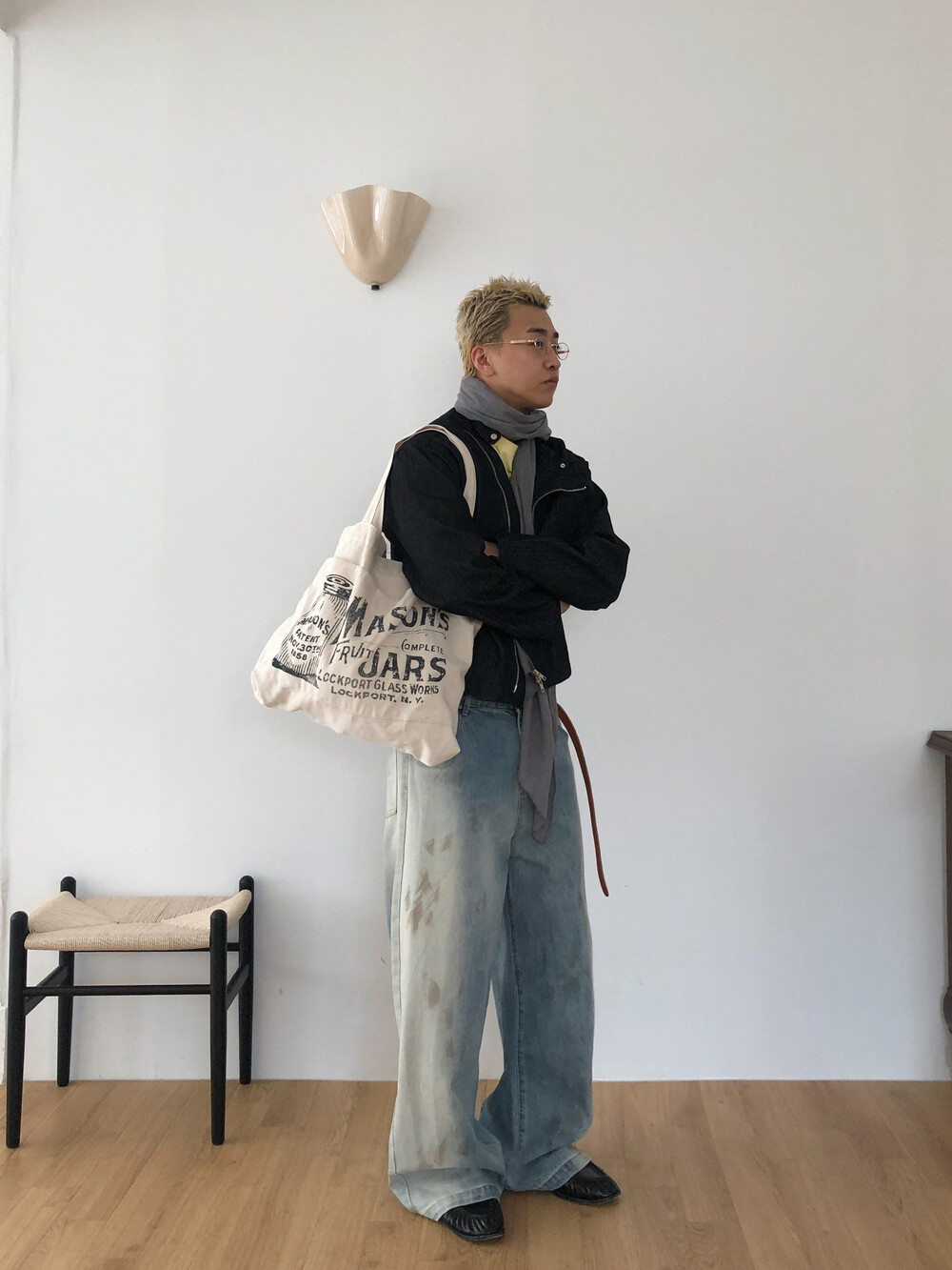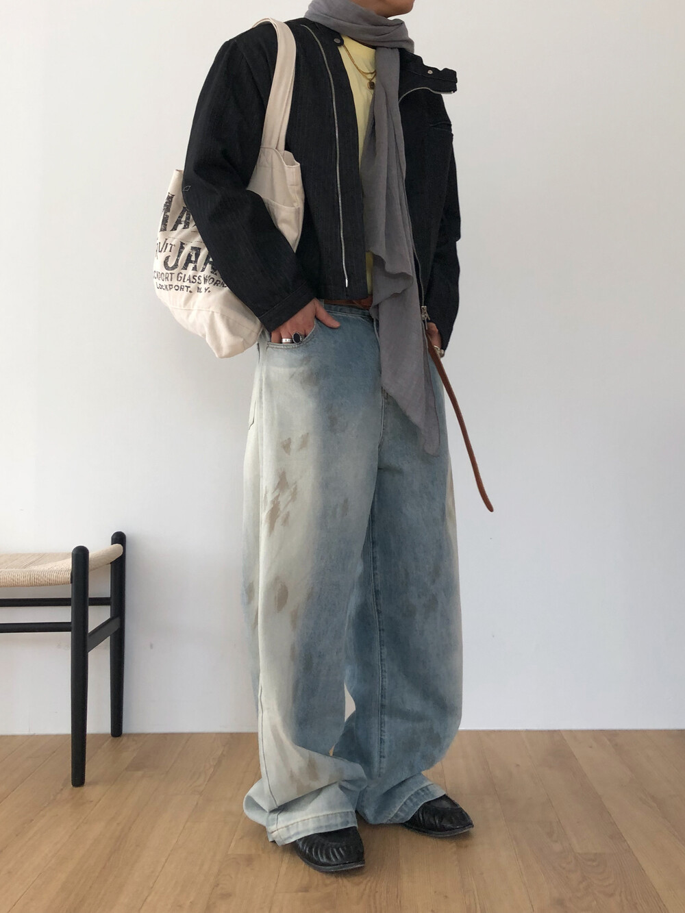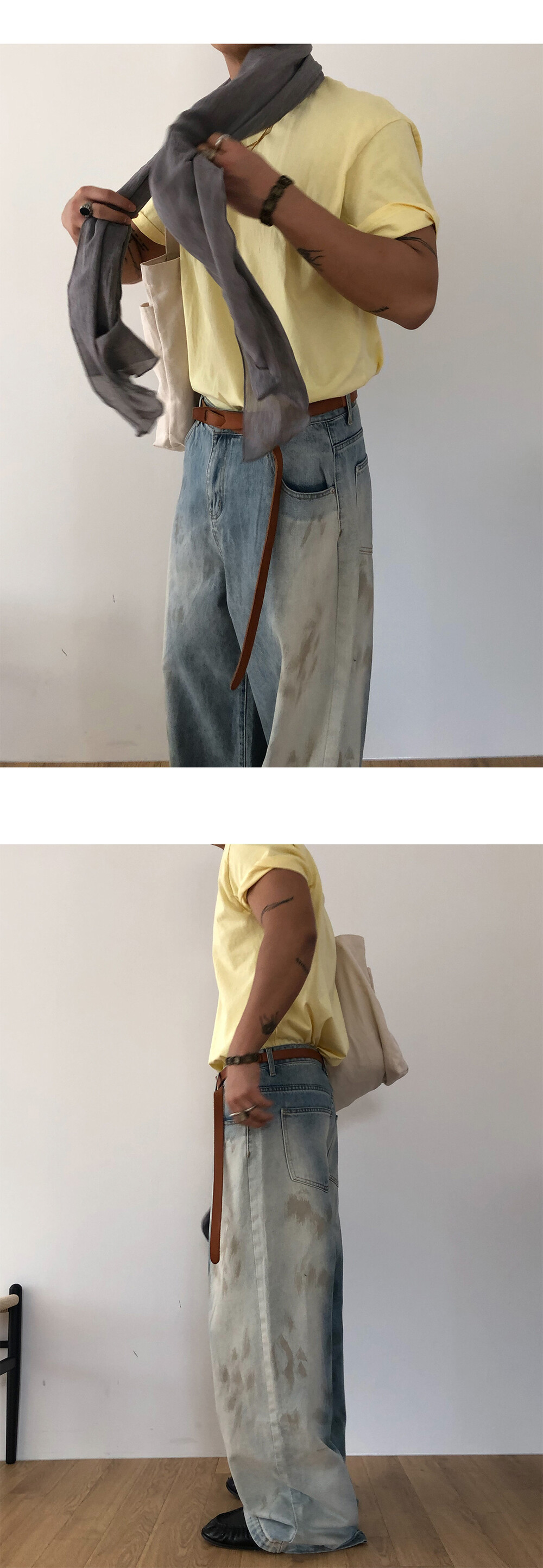 Faded half washed denim pants
