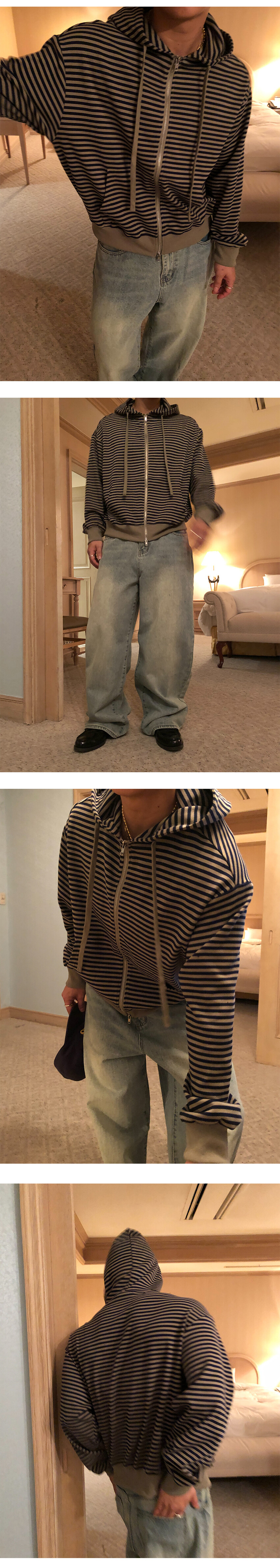 willy stripe crop hood zip up