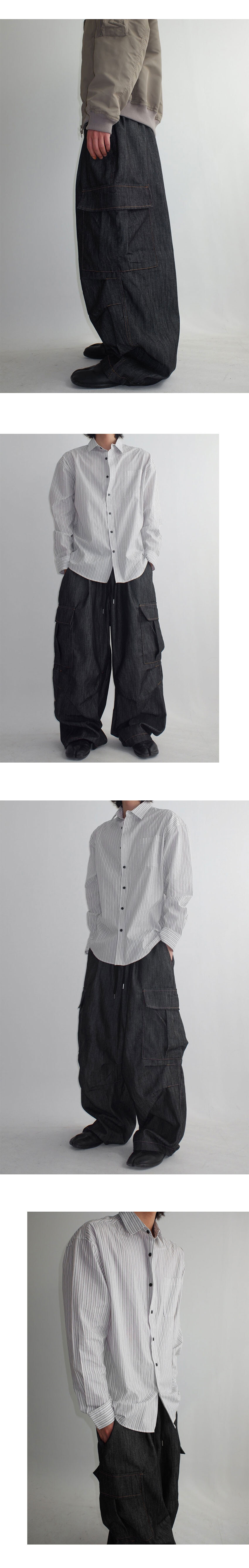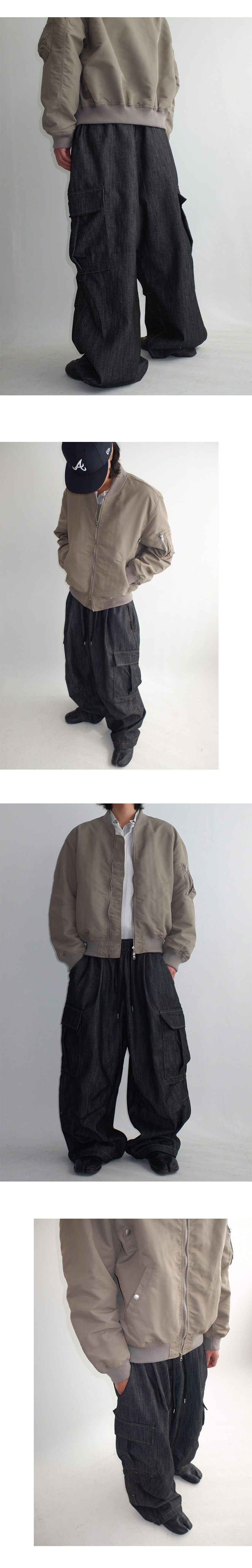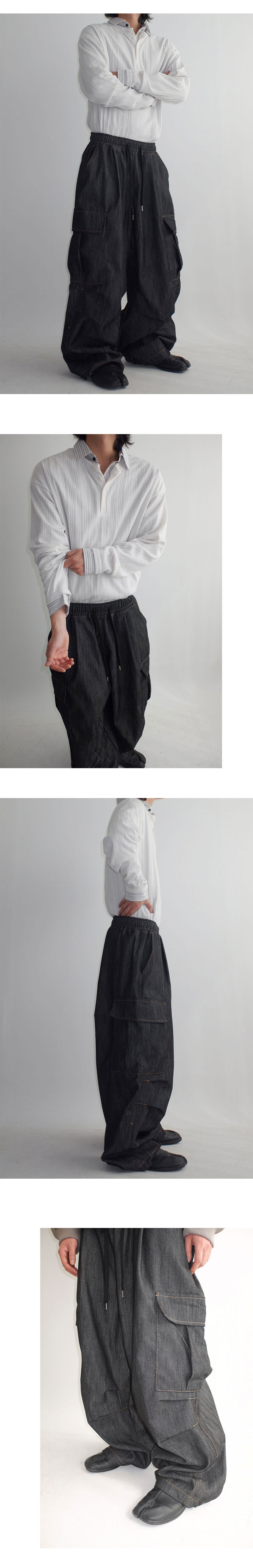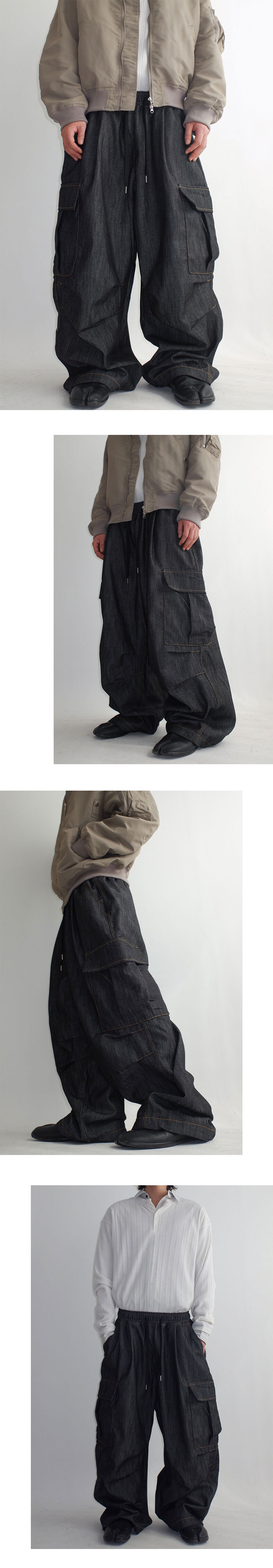 와이드한 실루엣의 카고 데님팬츠
