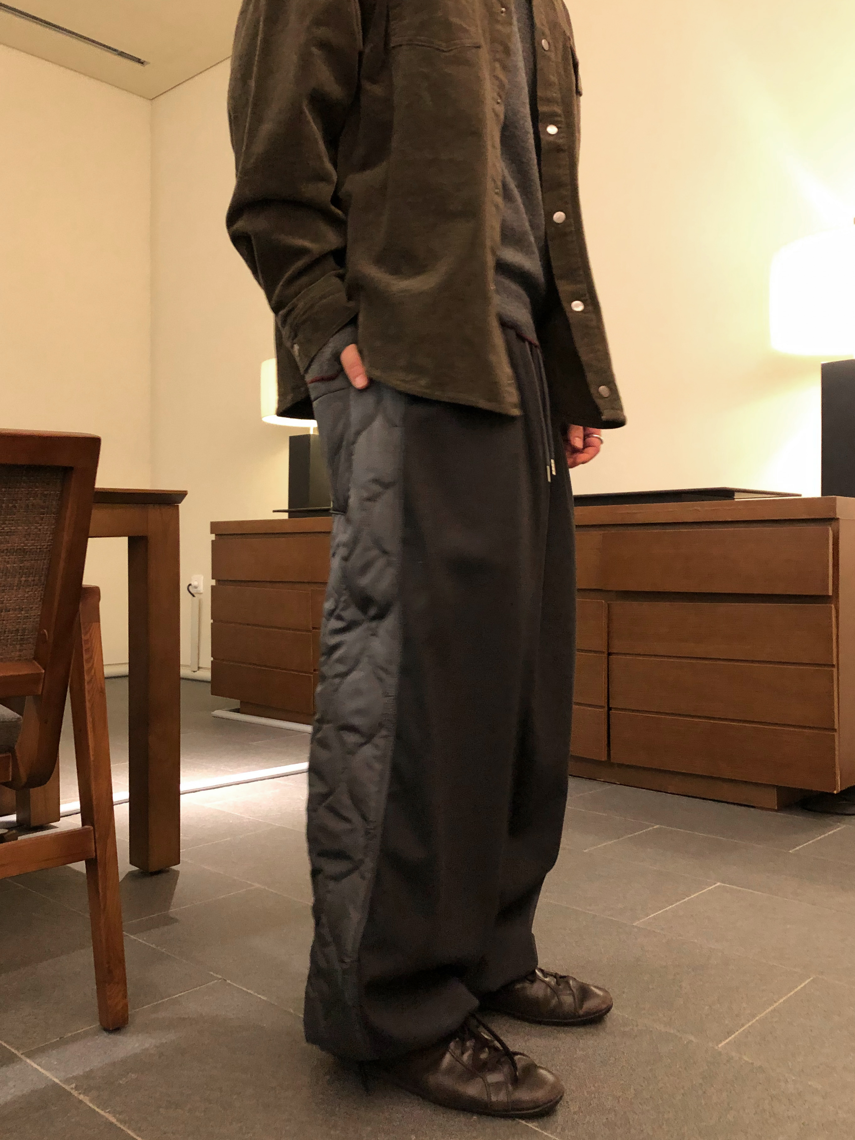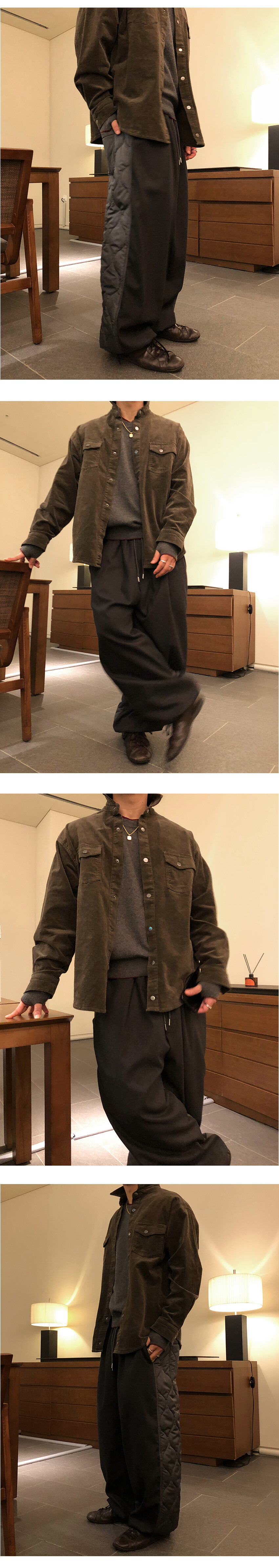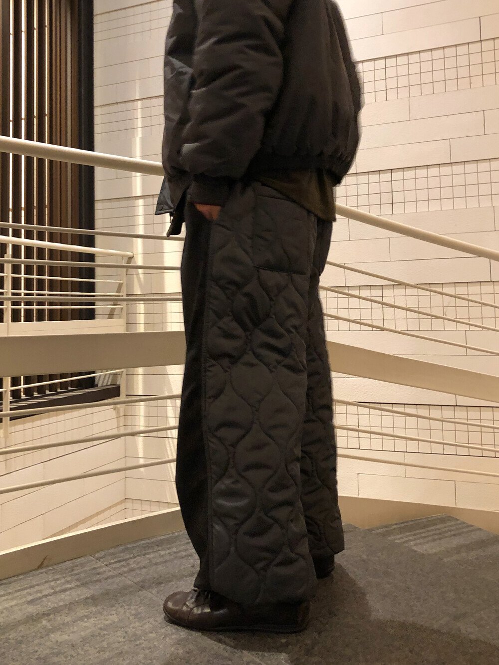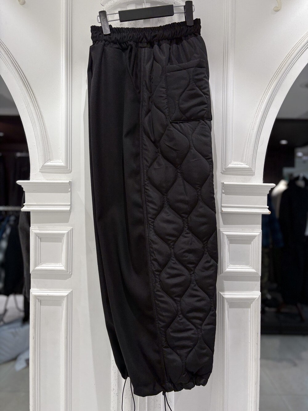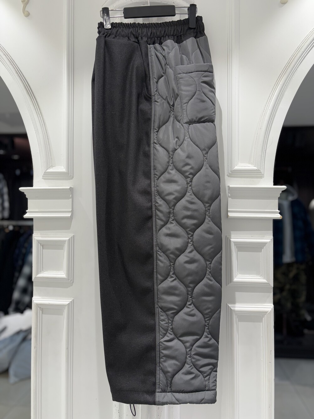 앞판에는 따뜻한 모직 원단을,뒷판에는 퀼팅 패딩을 적용한 와이드 팬츠입니다.