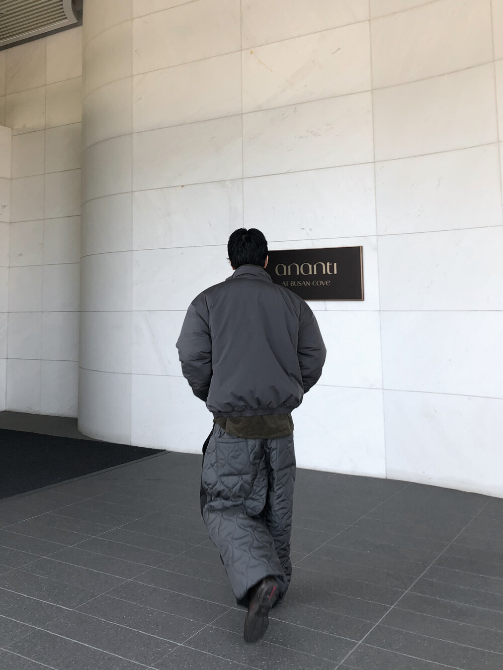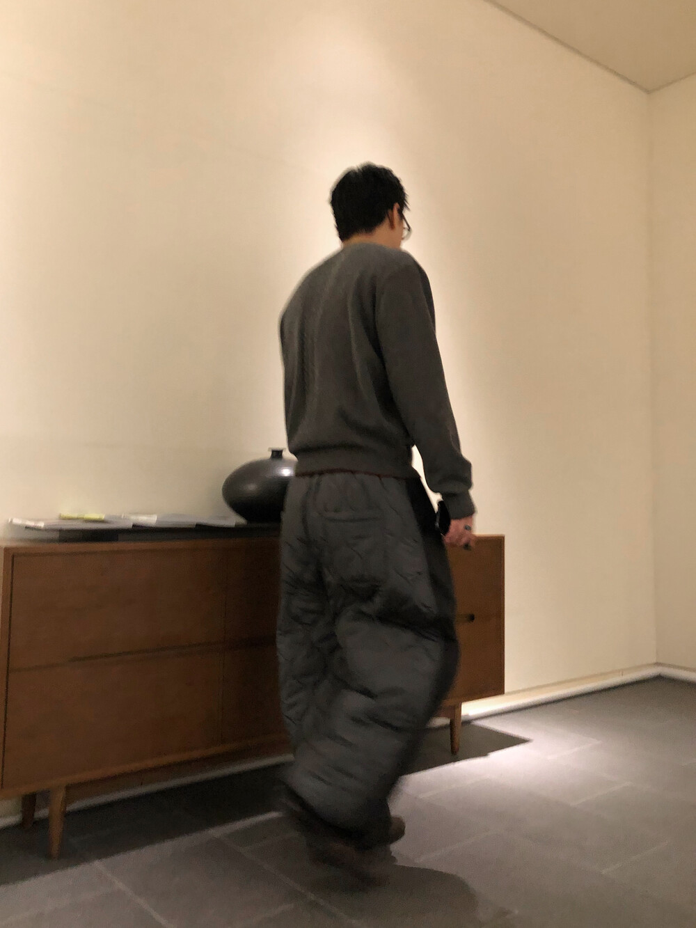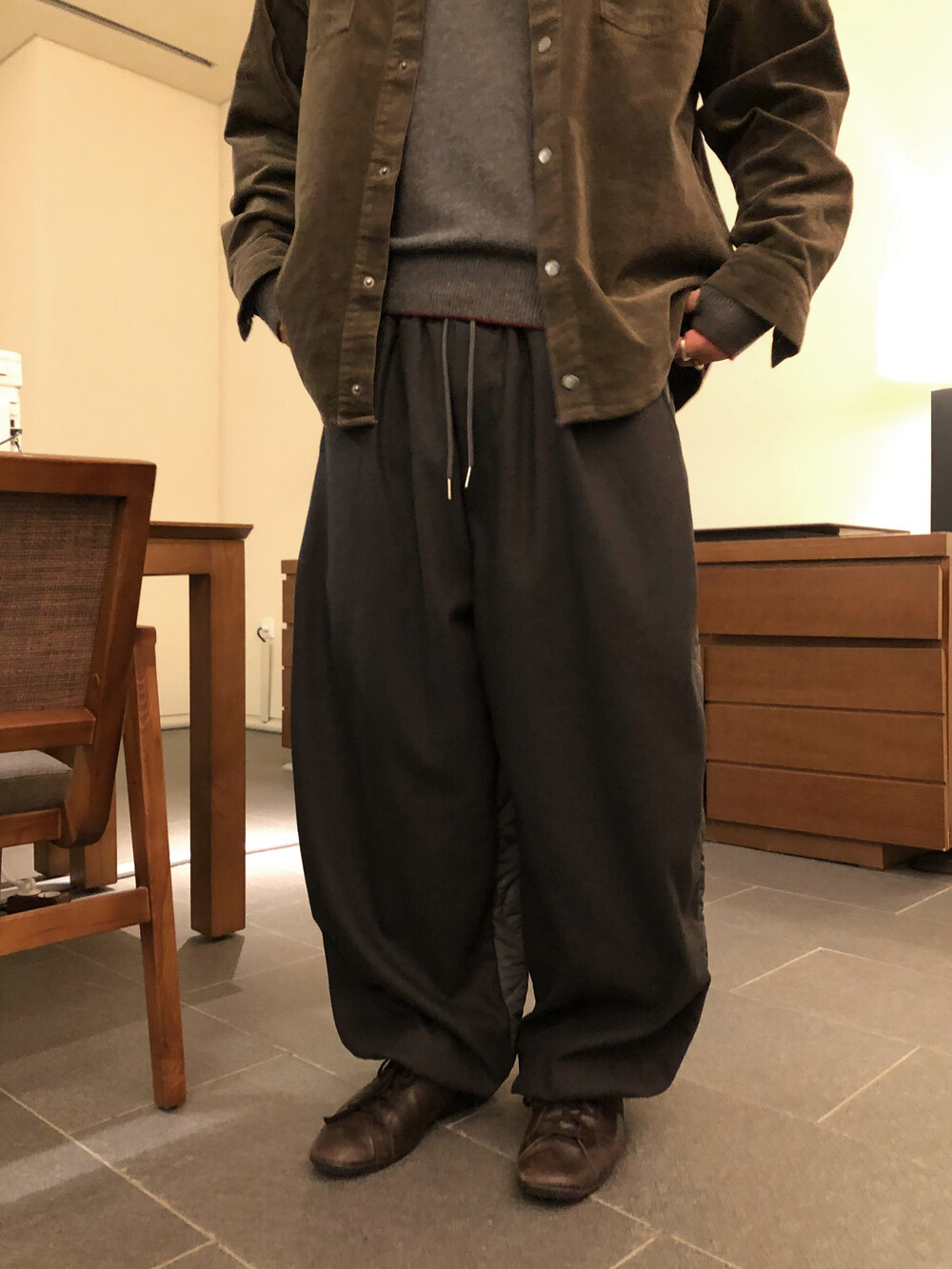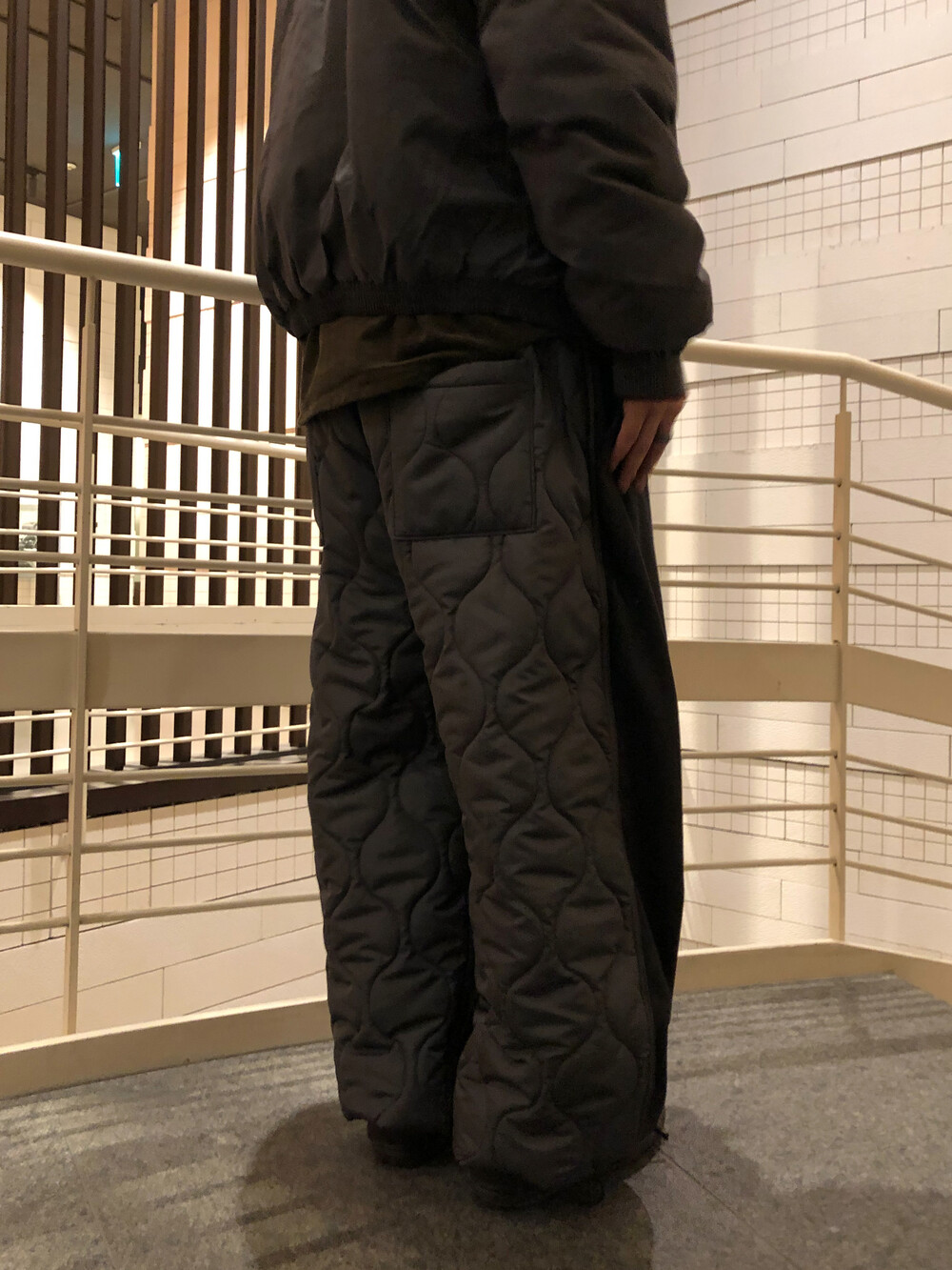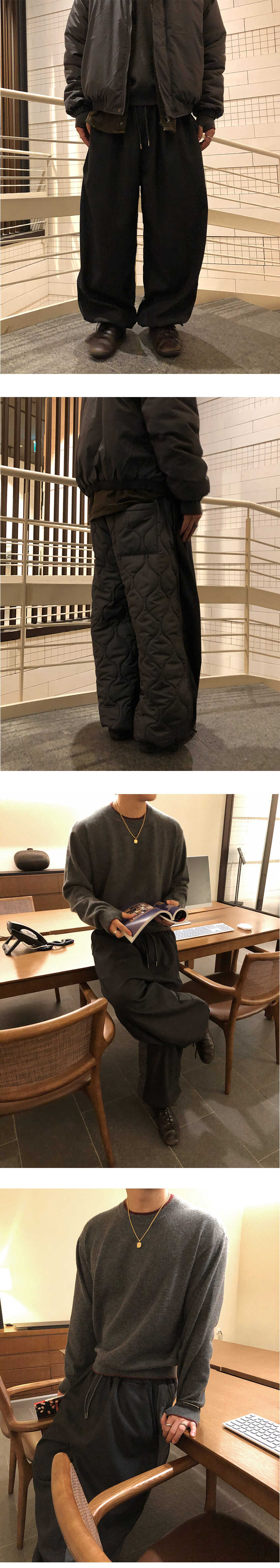 앞판에는 따뜻한 모직 원단을,뒷판에는 퀼팅 패딩을 적용한 와이드 팬츠입니다.