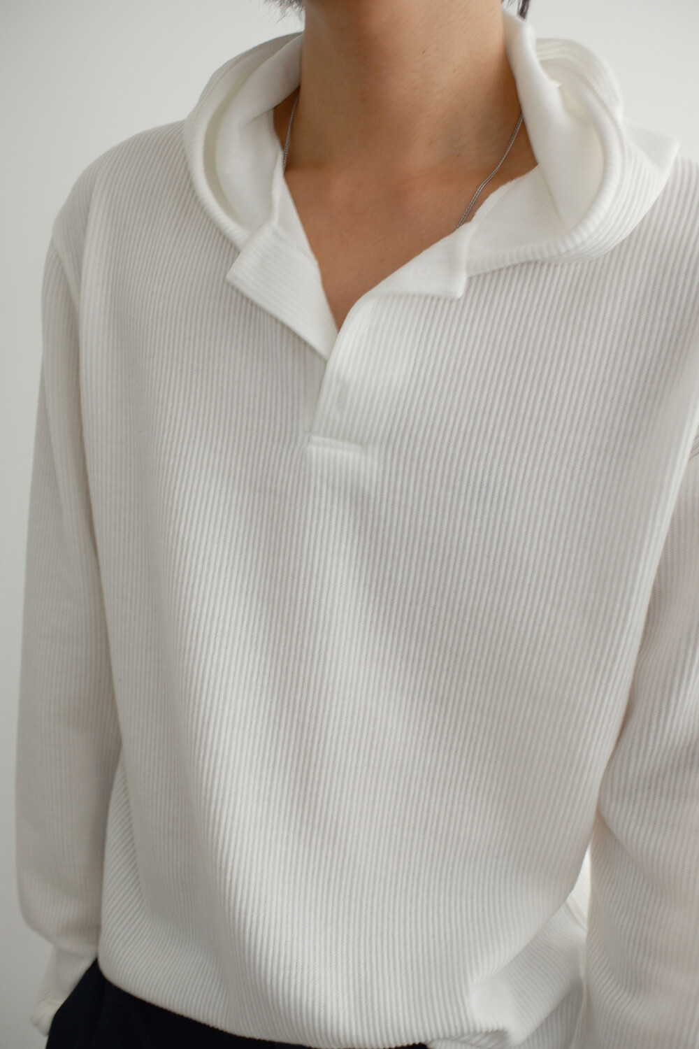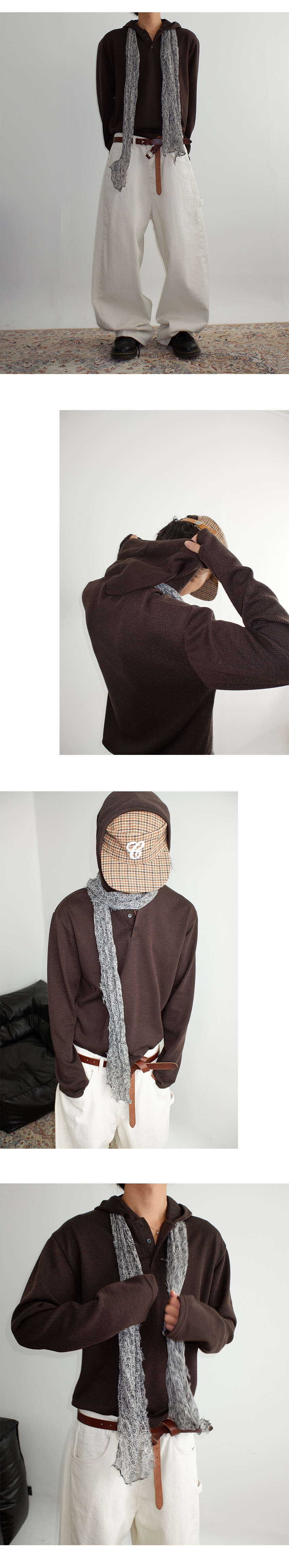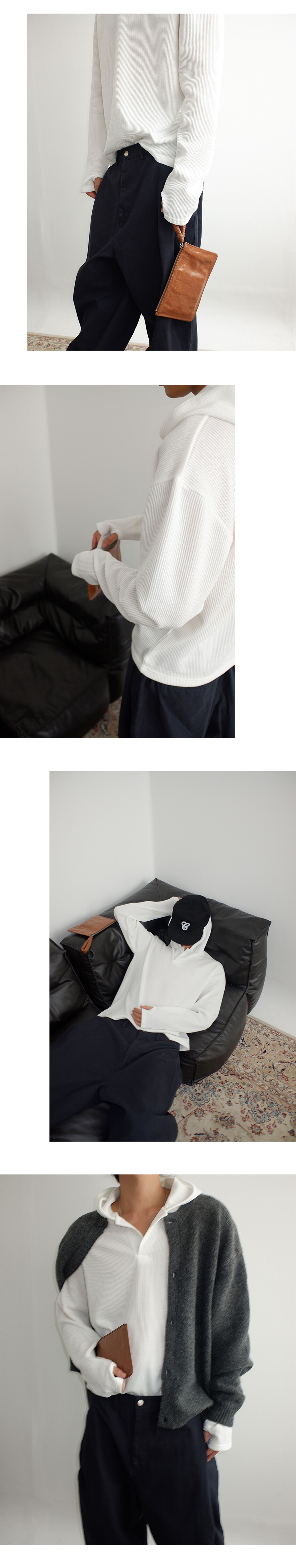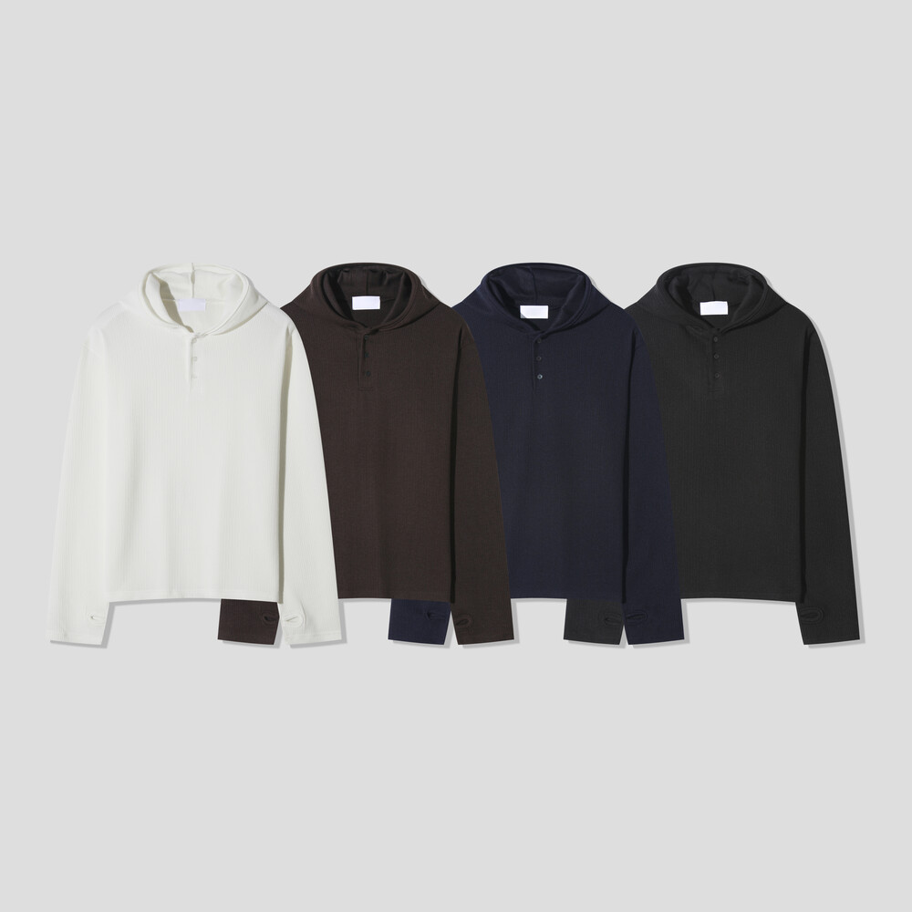 골지 원단으로 제작된 후드 헨리넥 디자인