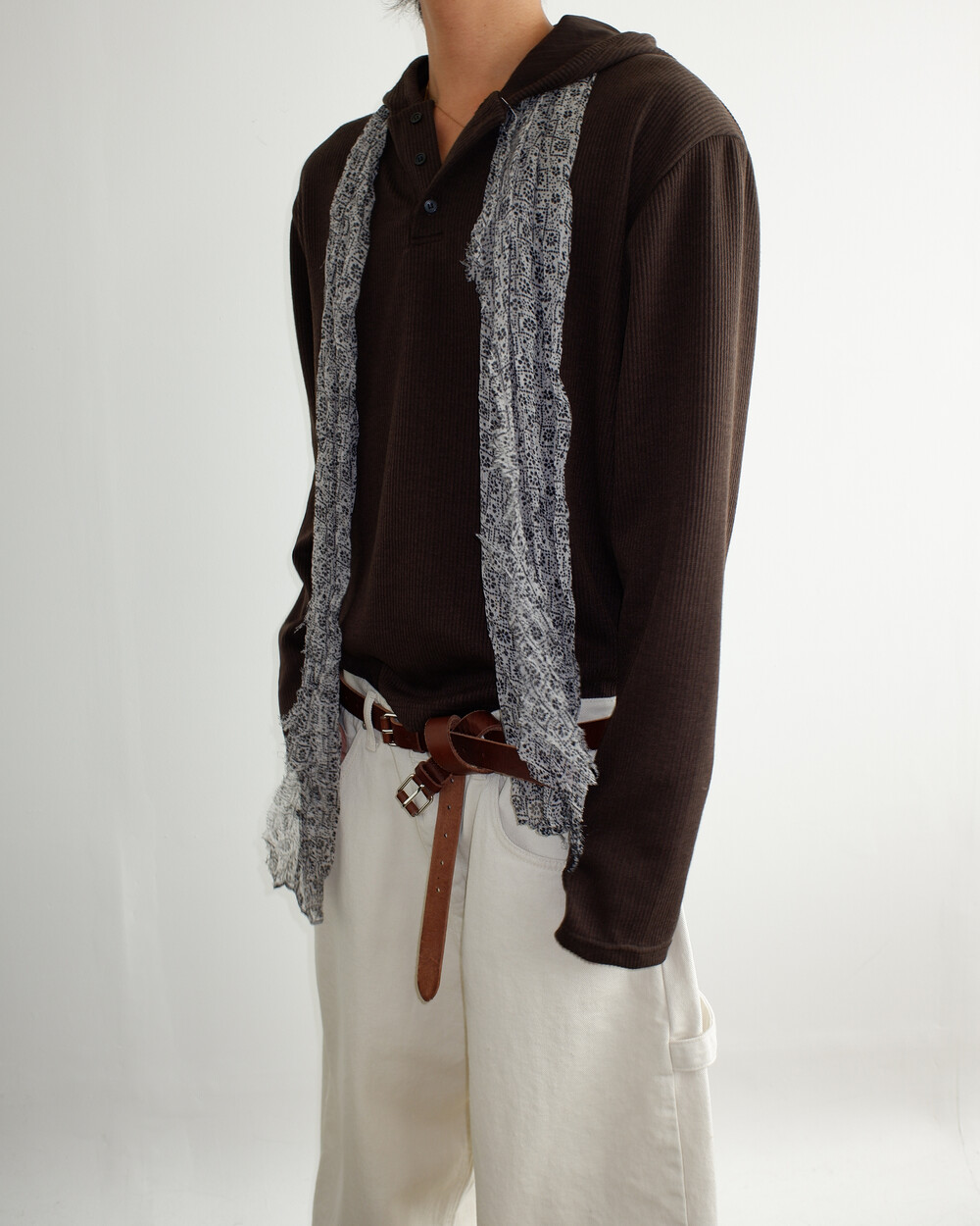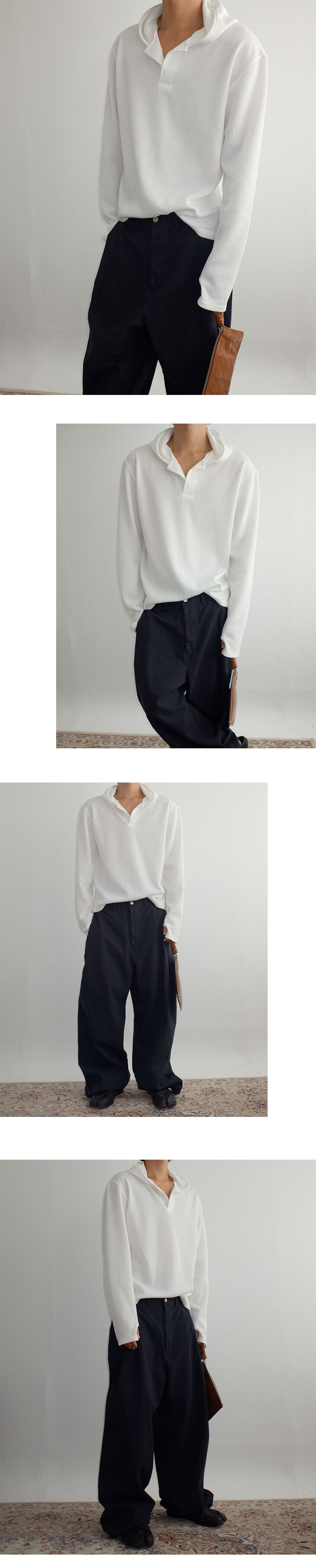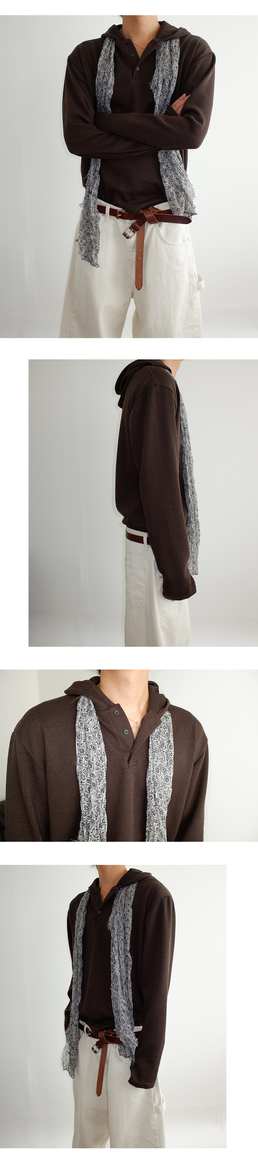 골지 원단으로 제작된 후드 헨리넥 디자인