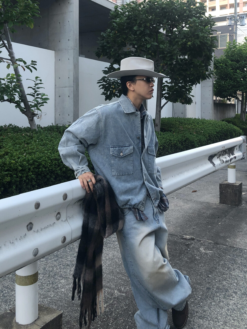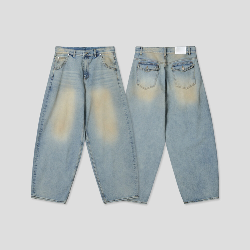 알료 틴다잉 워싱으로 자연스러운 빈티지 색감과 현대적인 곡선 실루엣이 조화를 이루는 데님 팬츠입니다.