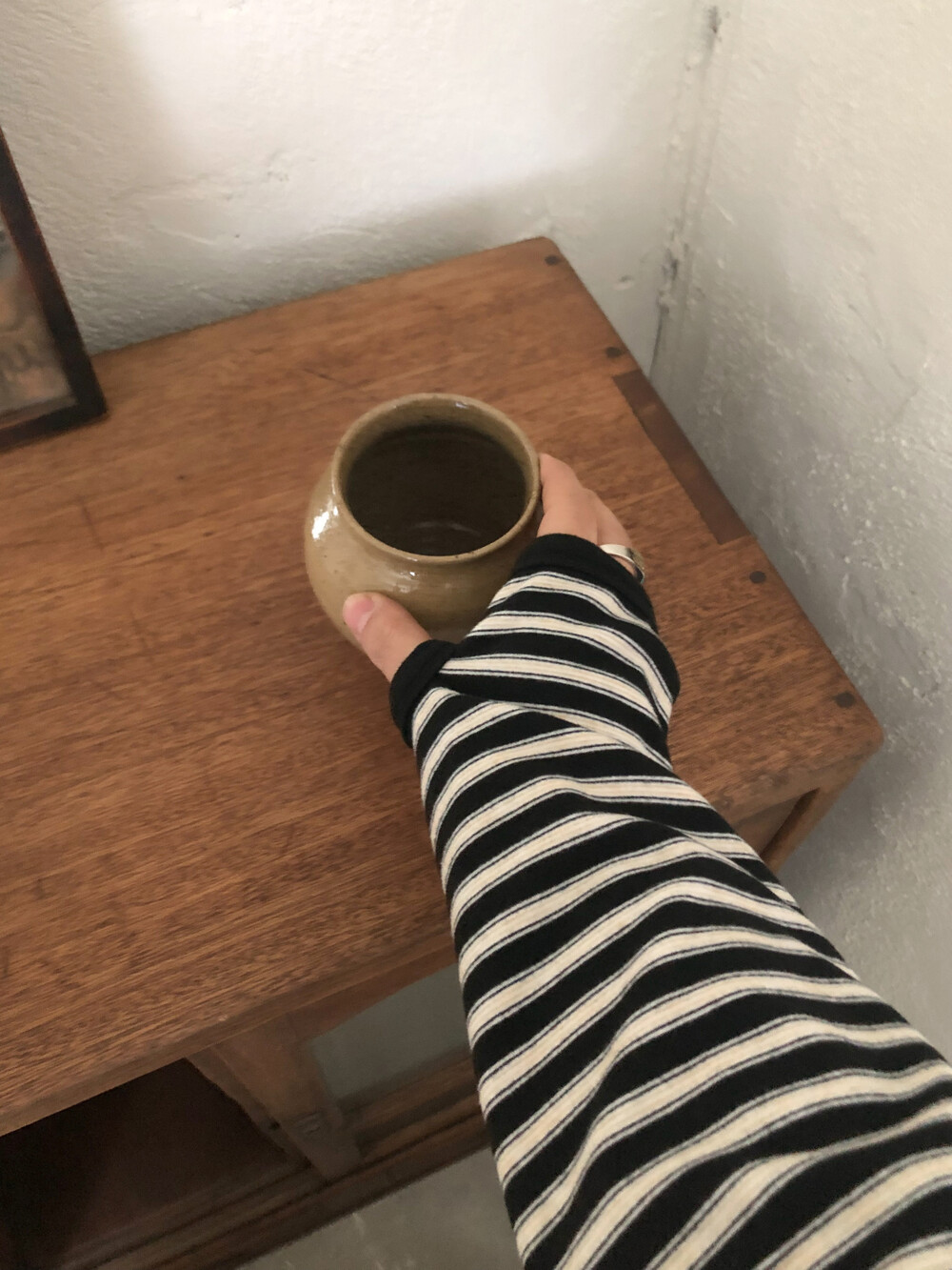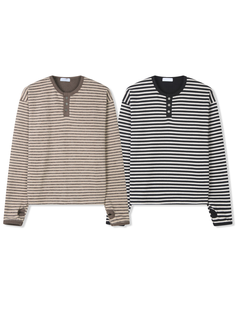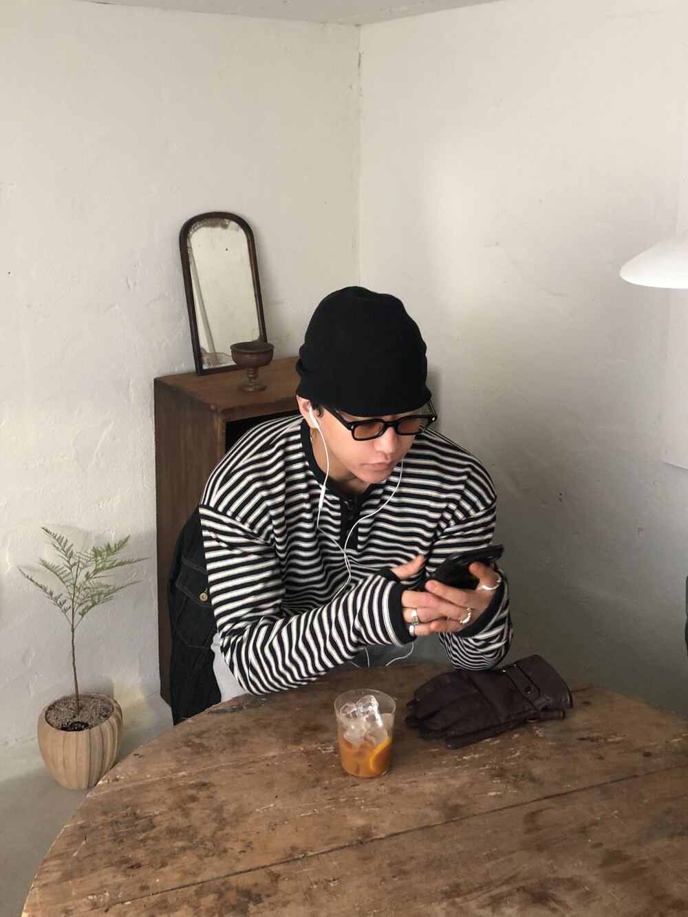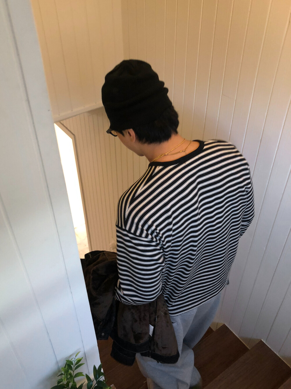 부드럽게 올라온 기모 텍스처와 스트라이프 짜임이 어우러져단독 착용만으로도 충분한 포인트가 되는 아이템입니다.