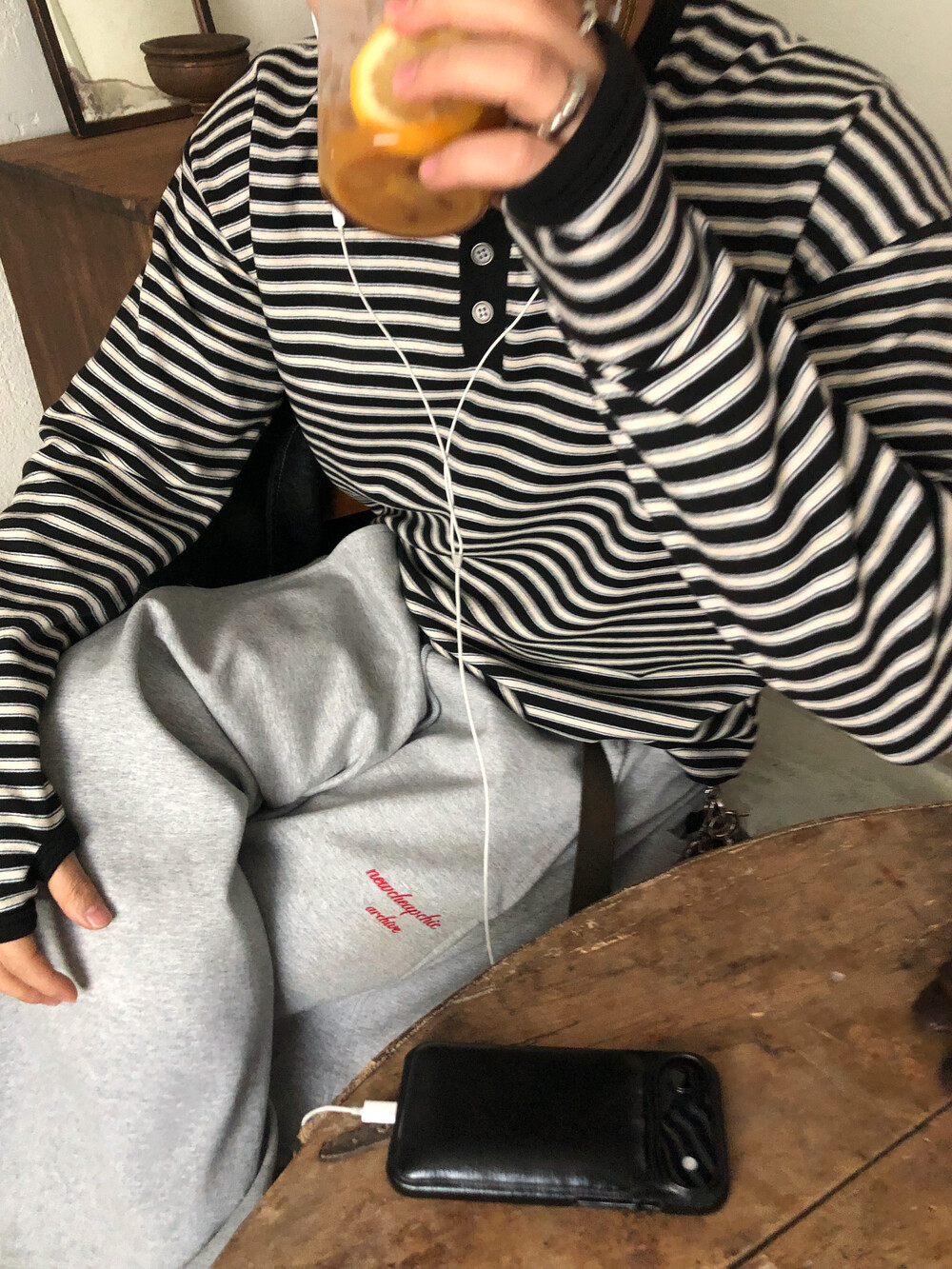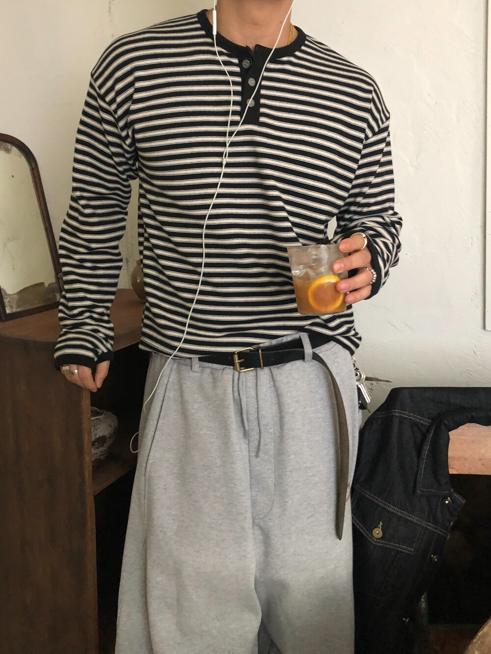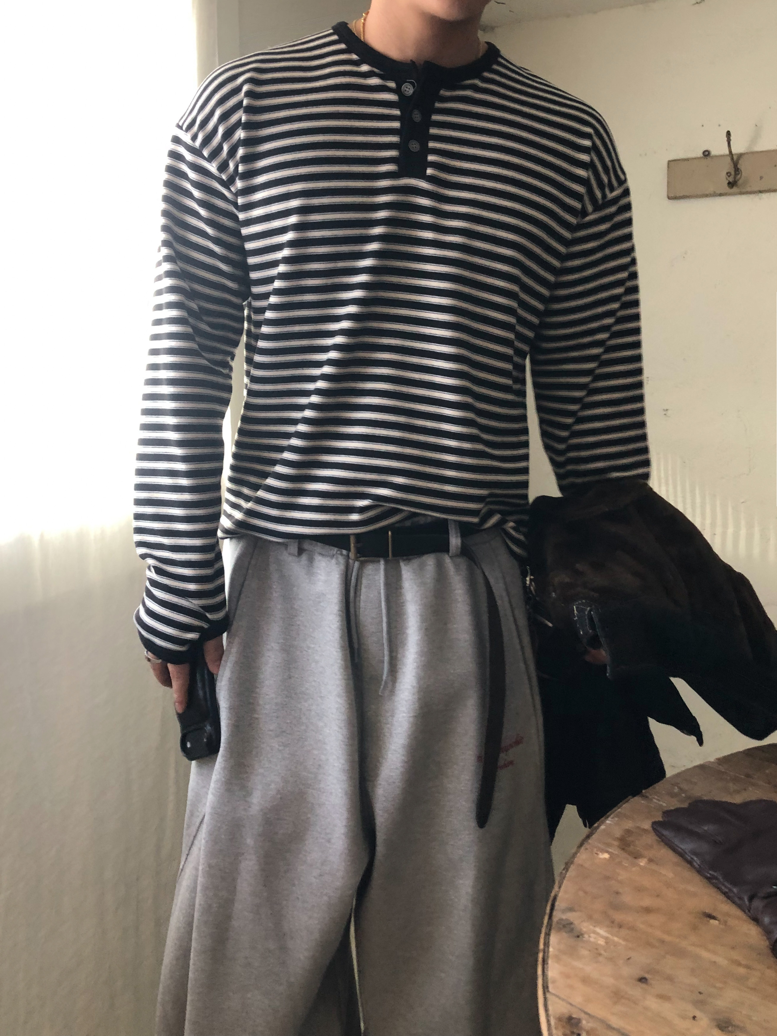크롭한 기장감과 균형 잡힌 핏으로아우터 이너는 물론 단품으로도 스타일링하기 좋은 헨리넥 탑입니다.