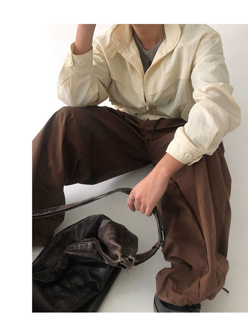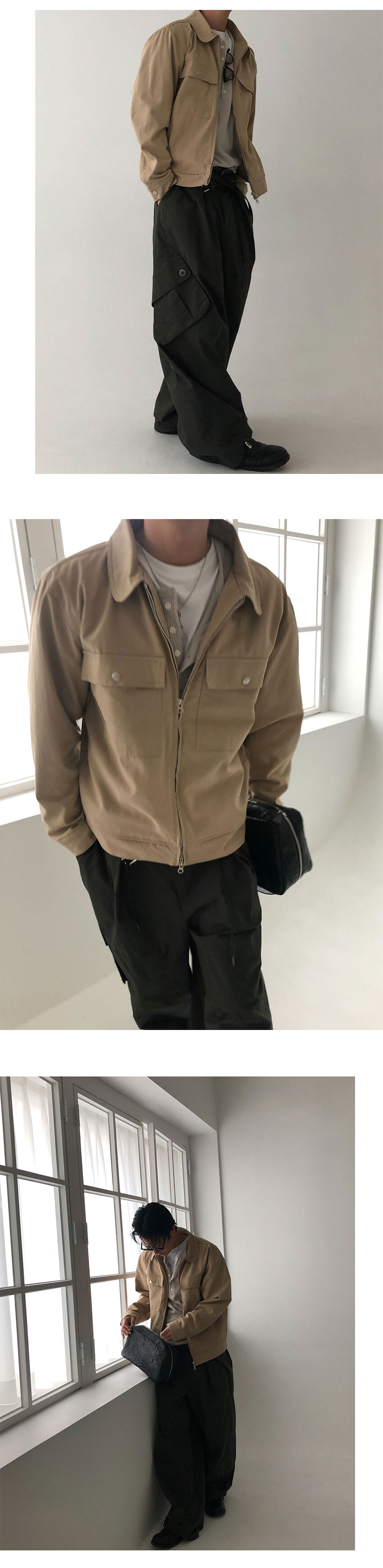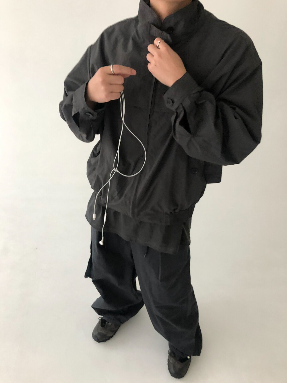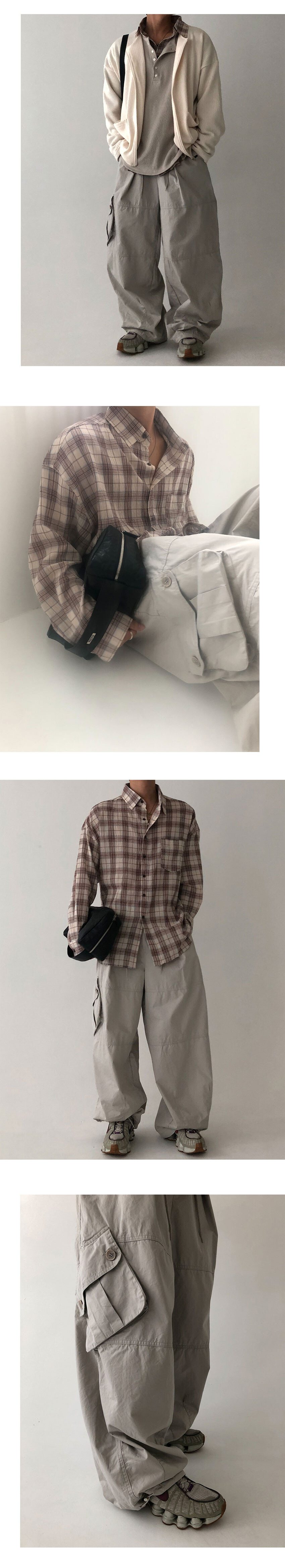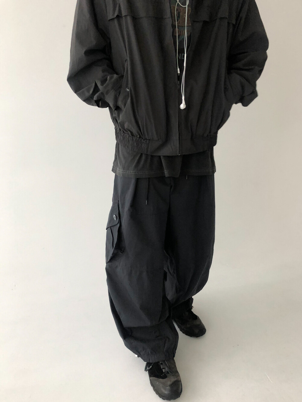 비대칭 카고 포켓, 전면 원턱, 절개라인, 밑단 스트링