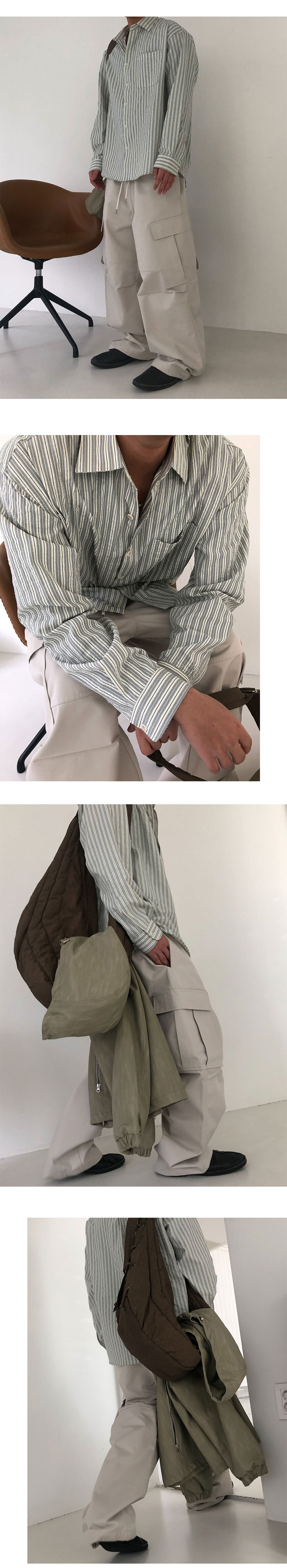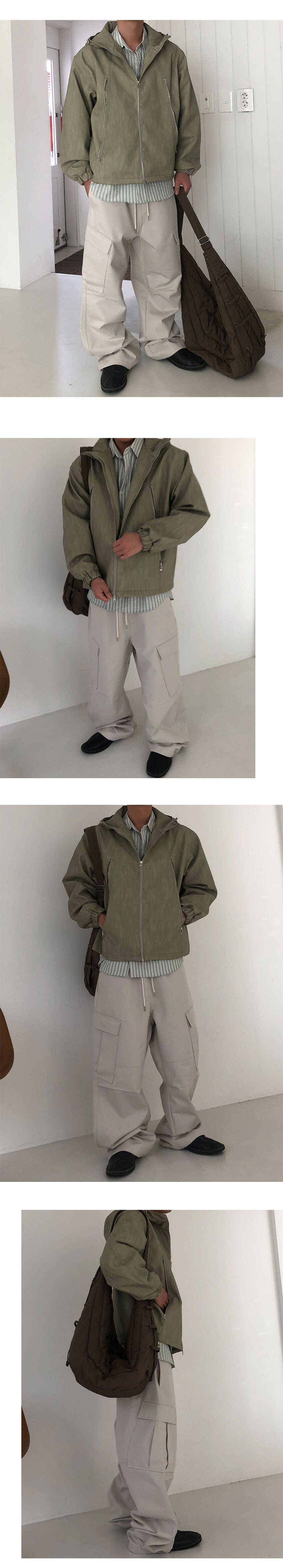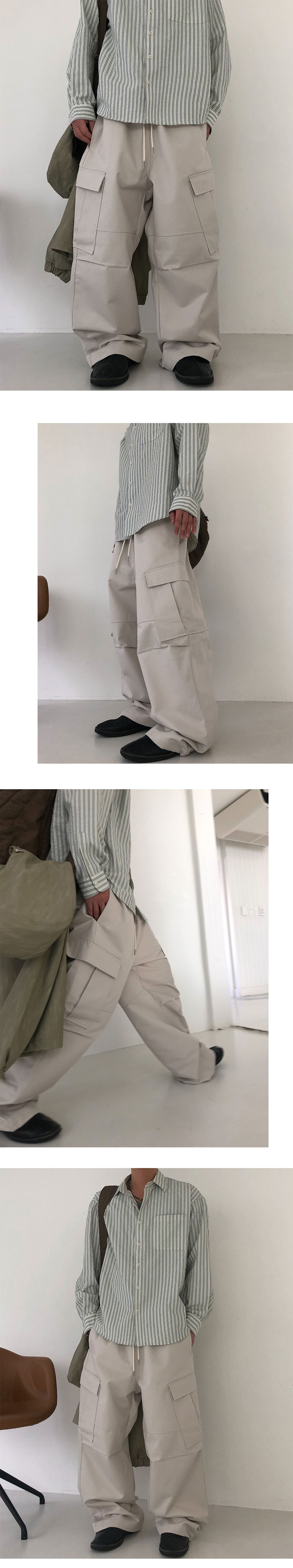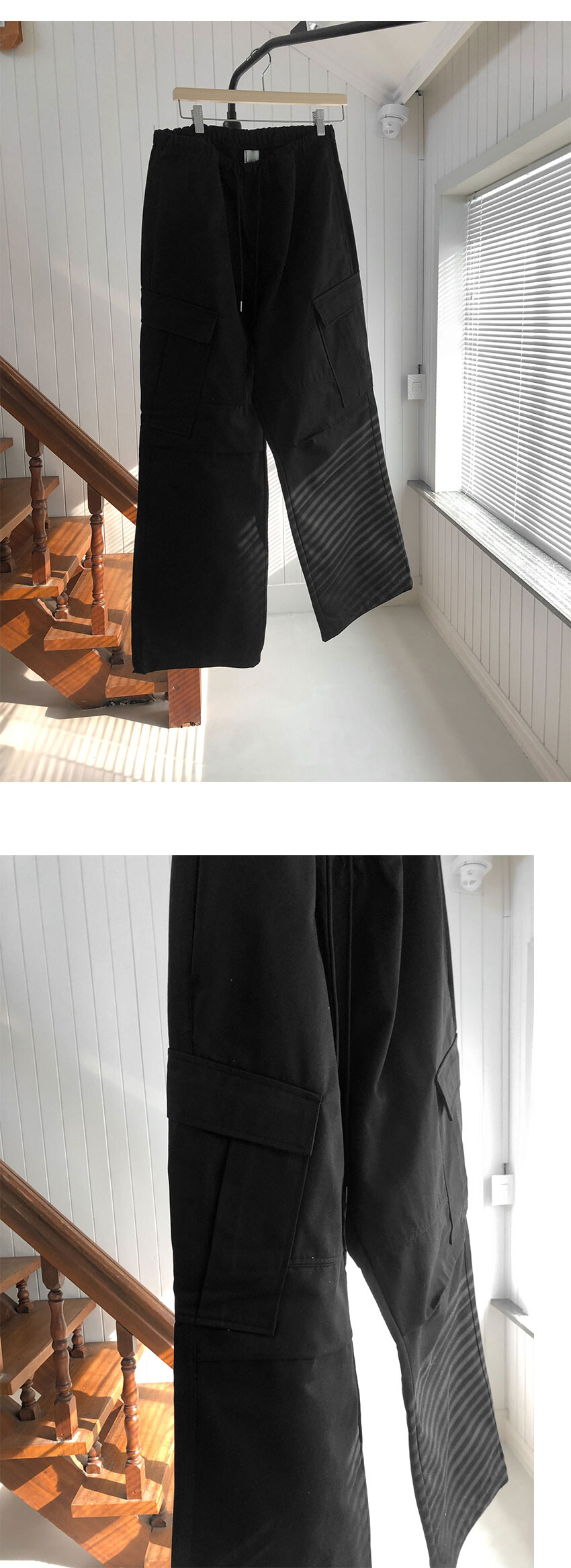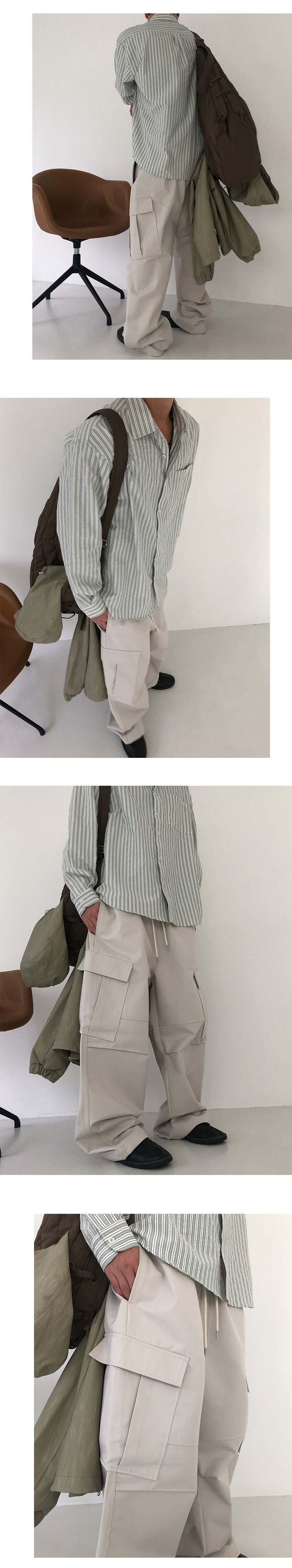 사선 카고 포켓 , 앞판 절개라인, 무릎 턱
