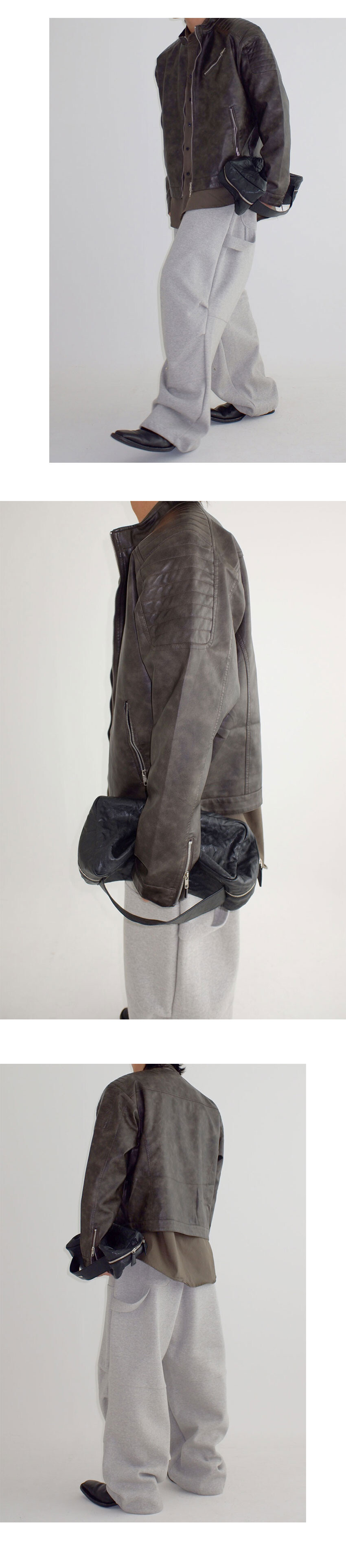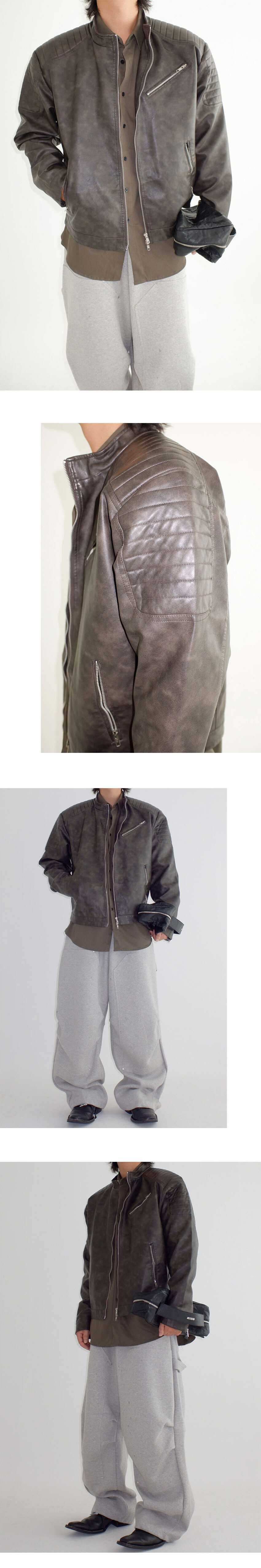 패드 디테일의 레더 자켓
