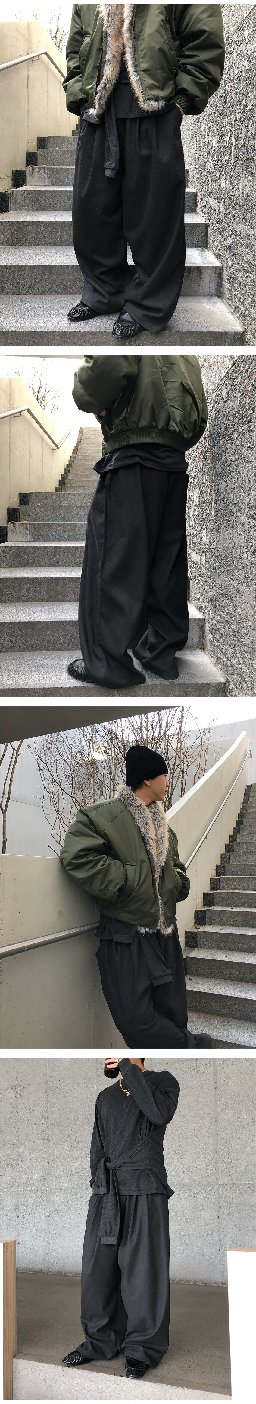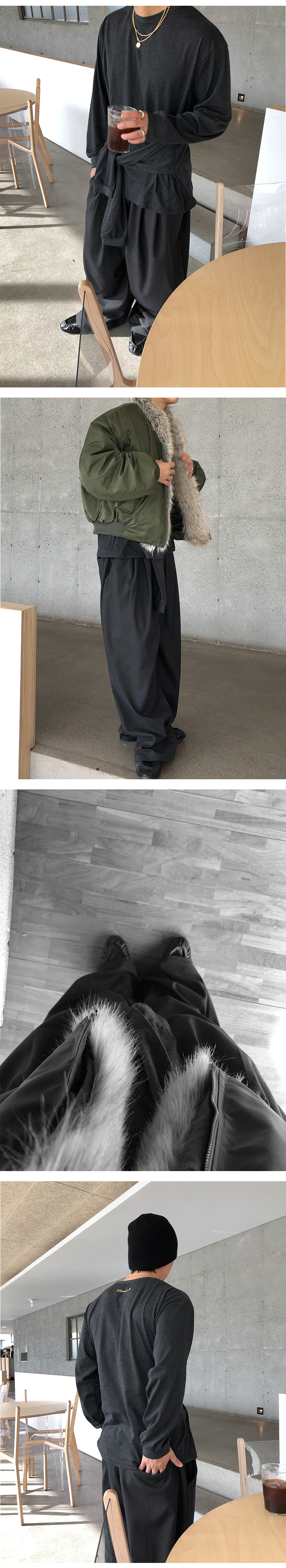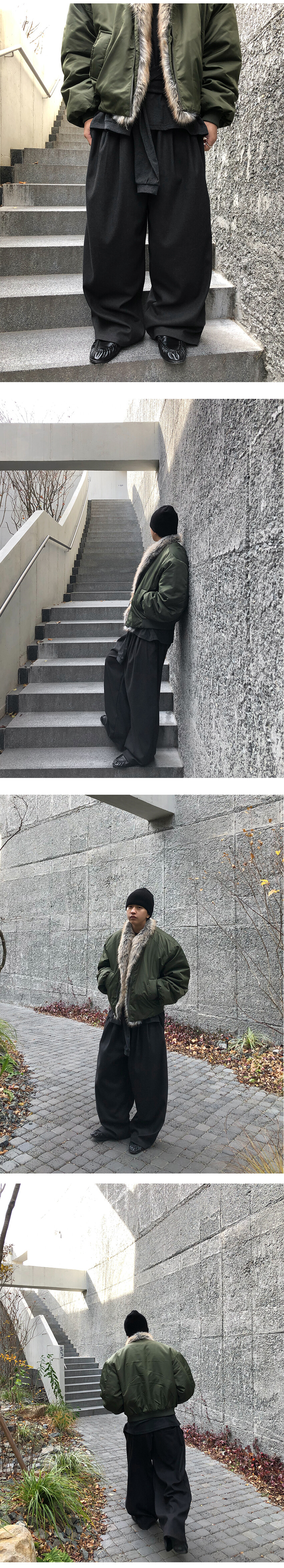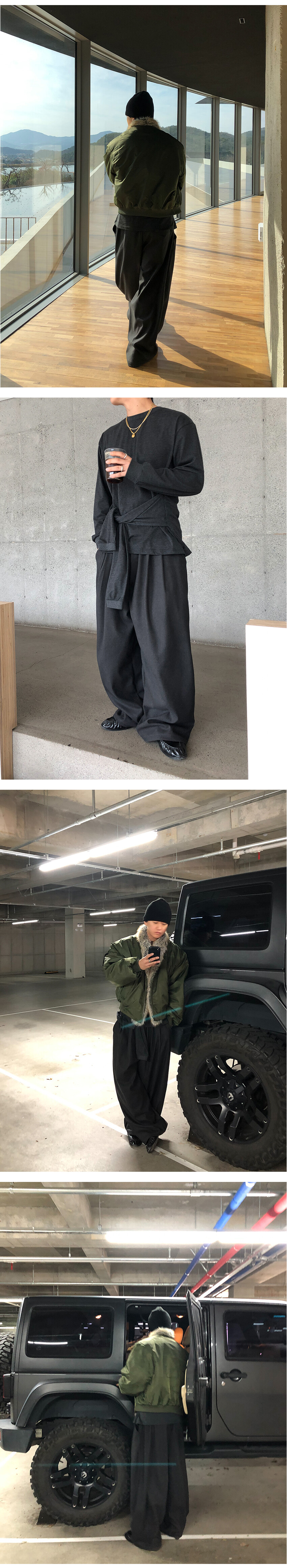 전면 투턱 디테일로 자연스러운 볼륨감과 여유로운 실루엣을 연출해주는 기모 밴딩 와이드 슬랙스입니다.